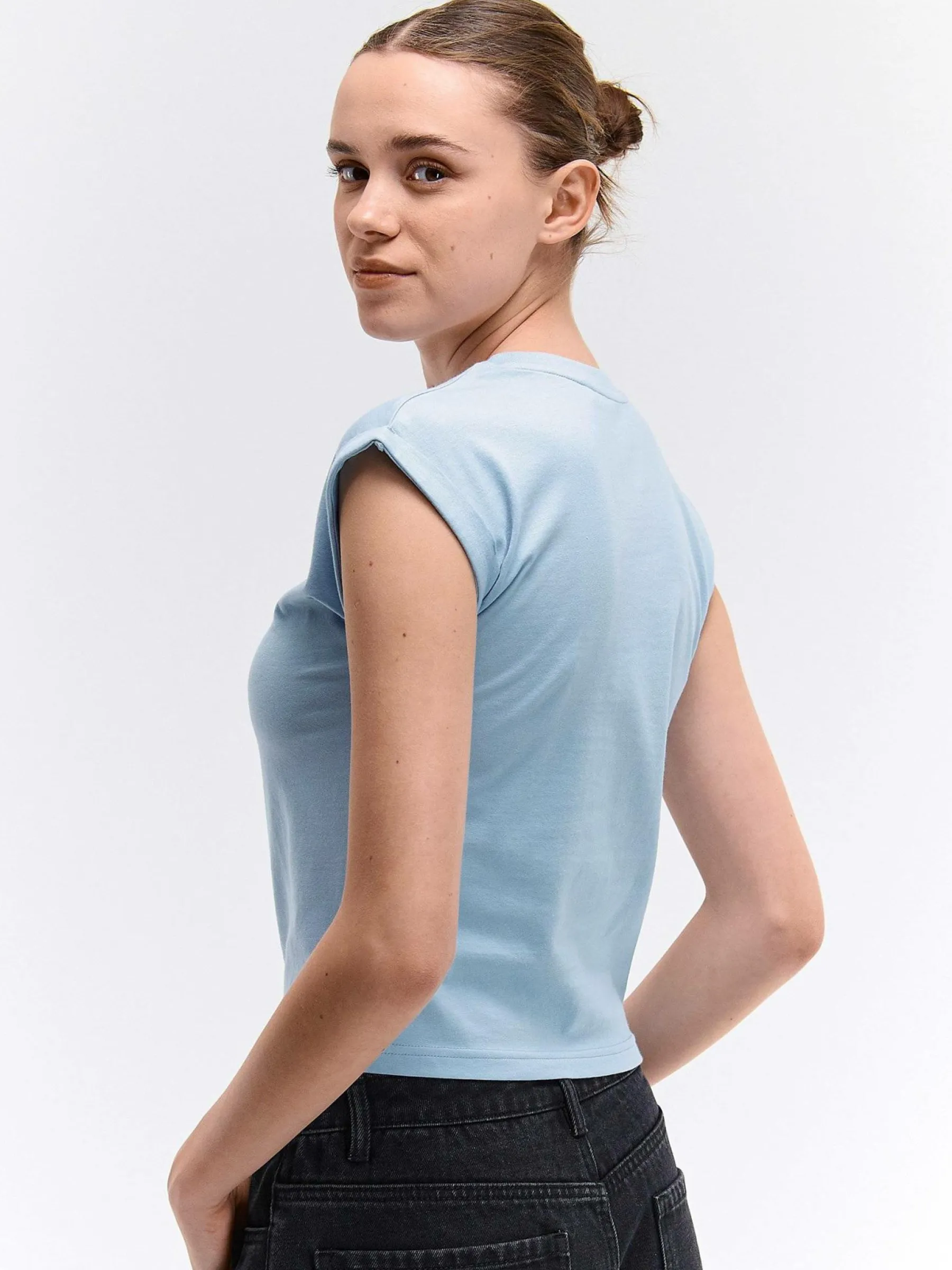 Kolor: niebieskiKrój: regularTyp: koszulkaRekaw: krótki rękawDługość: krótkiPattern style: pojedynczy kolorDetal:…