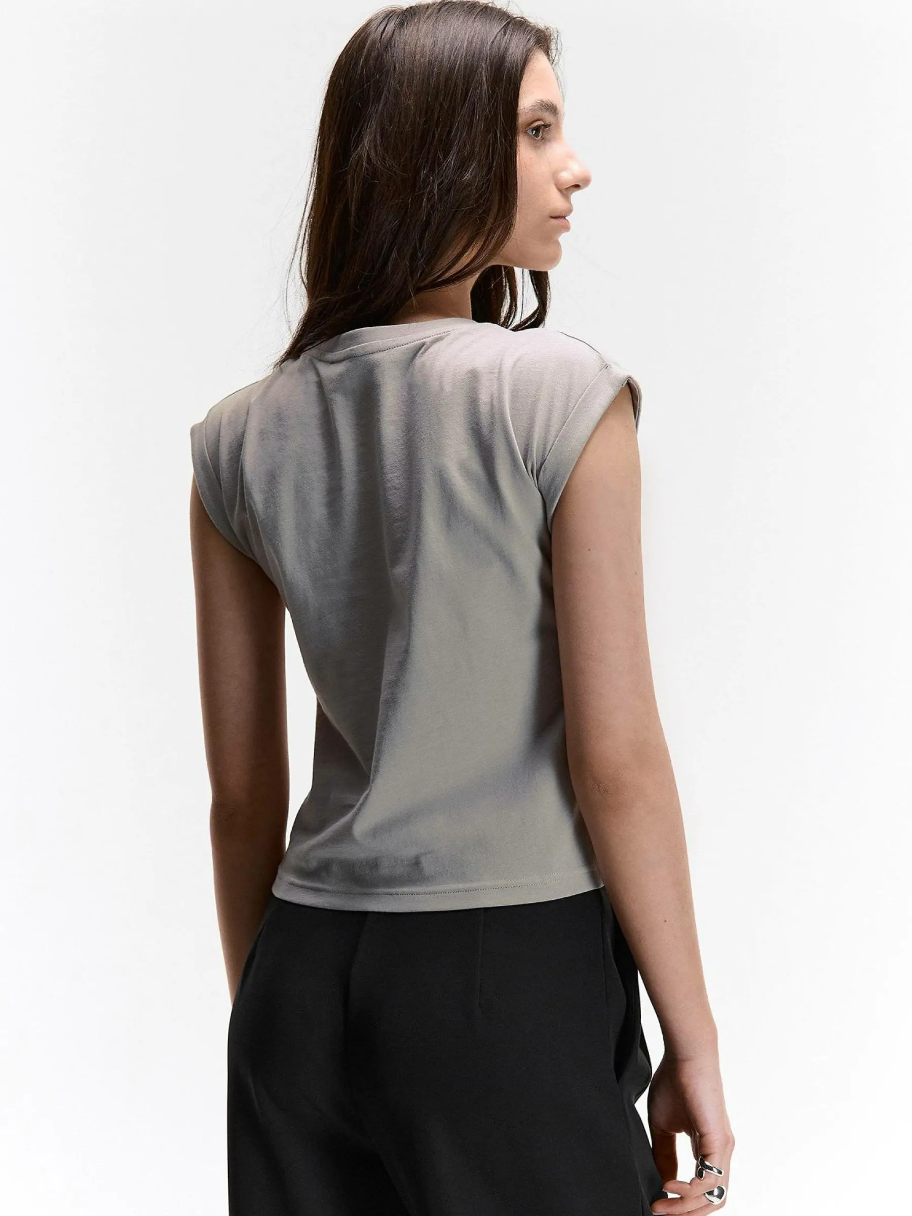 Kolor: szaryKrój: regularTyp: koszulkaRekaw: krótki rękawDługość: krótkiPattern style: pojedynczy kolorDetal: nad…