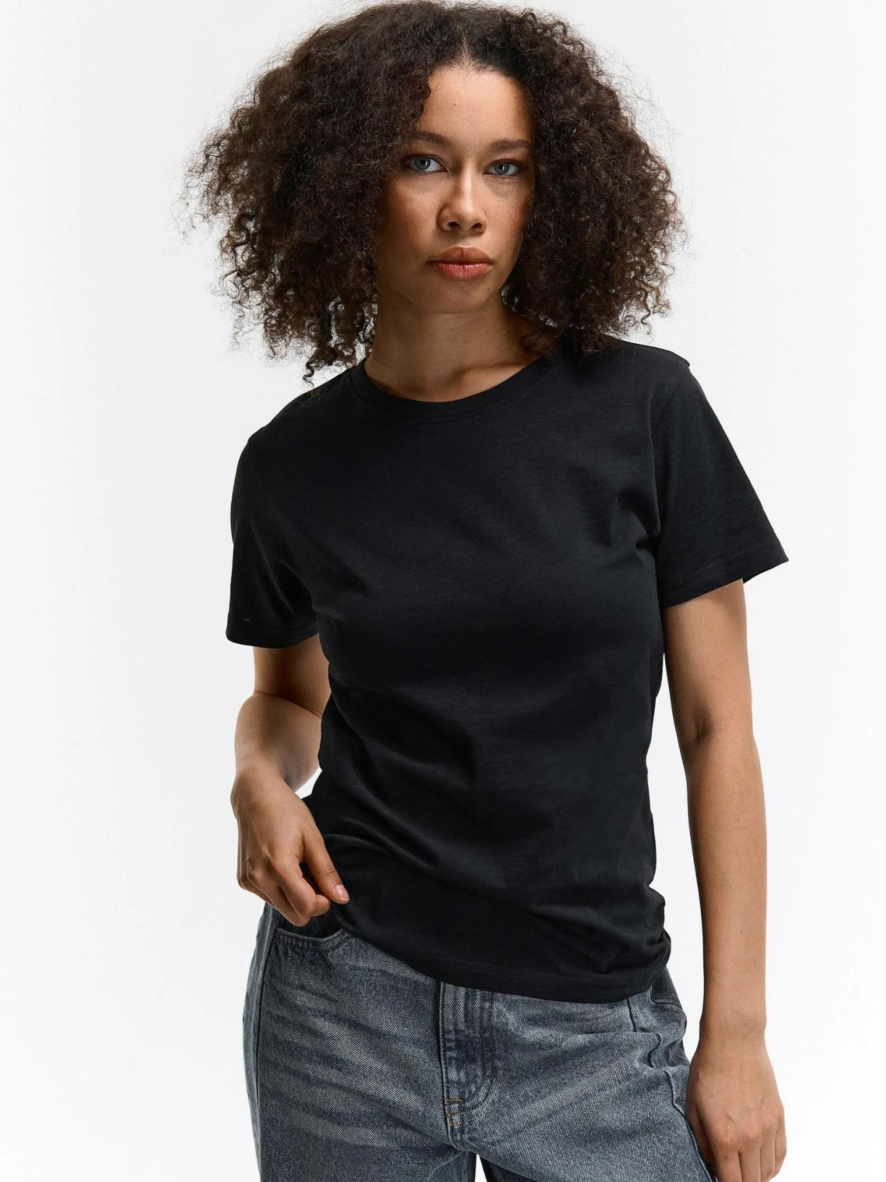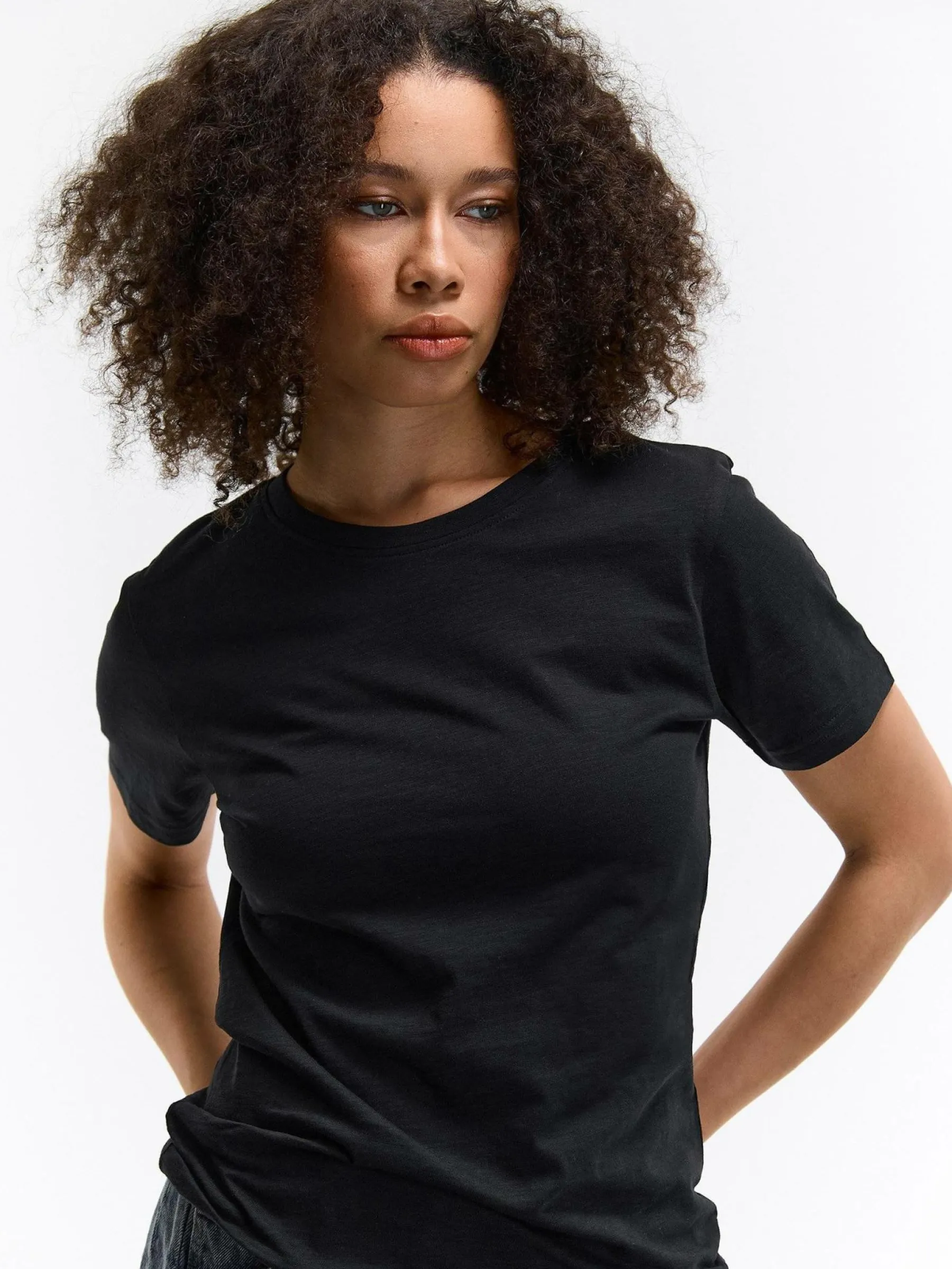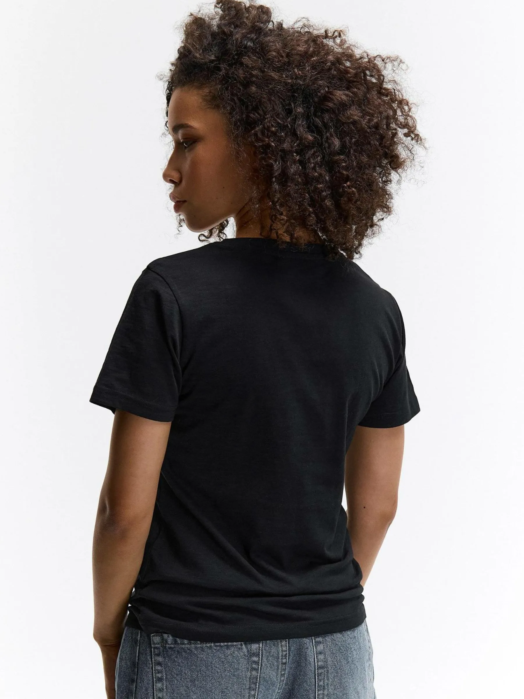 Kolor: czarnyKrój: regularTyp: koszulkaRekaw: krótki rękawDługość: krótkiPattern style: pojedynczy kolorDetal: na…