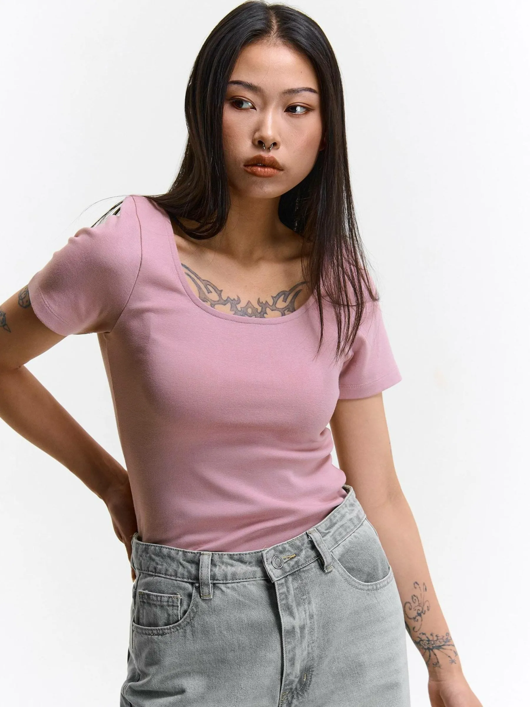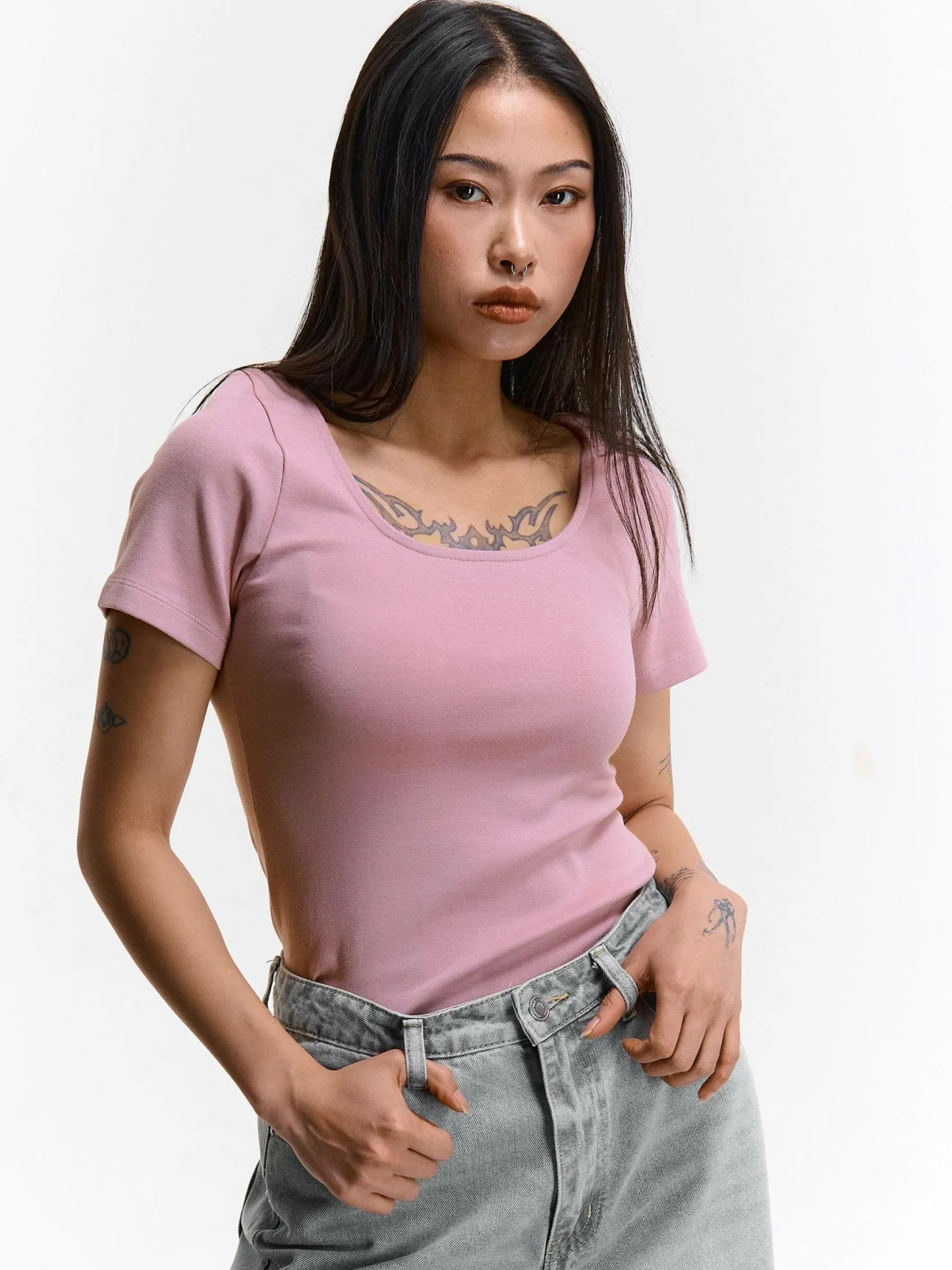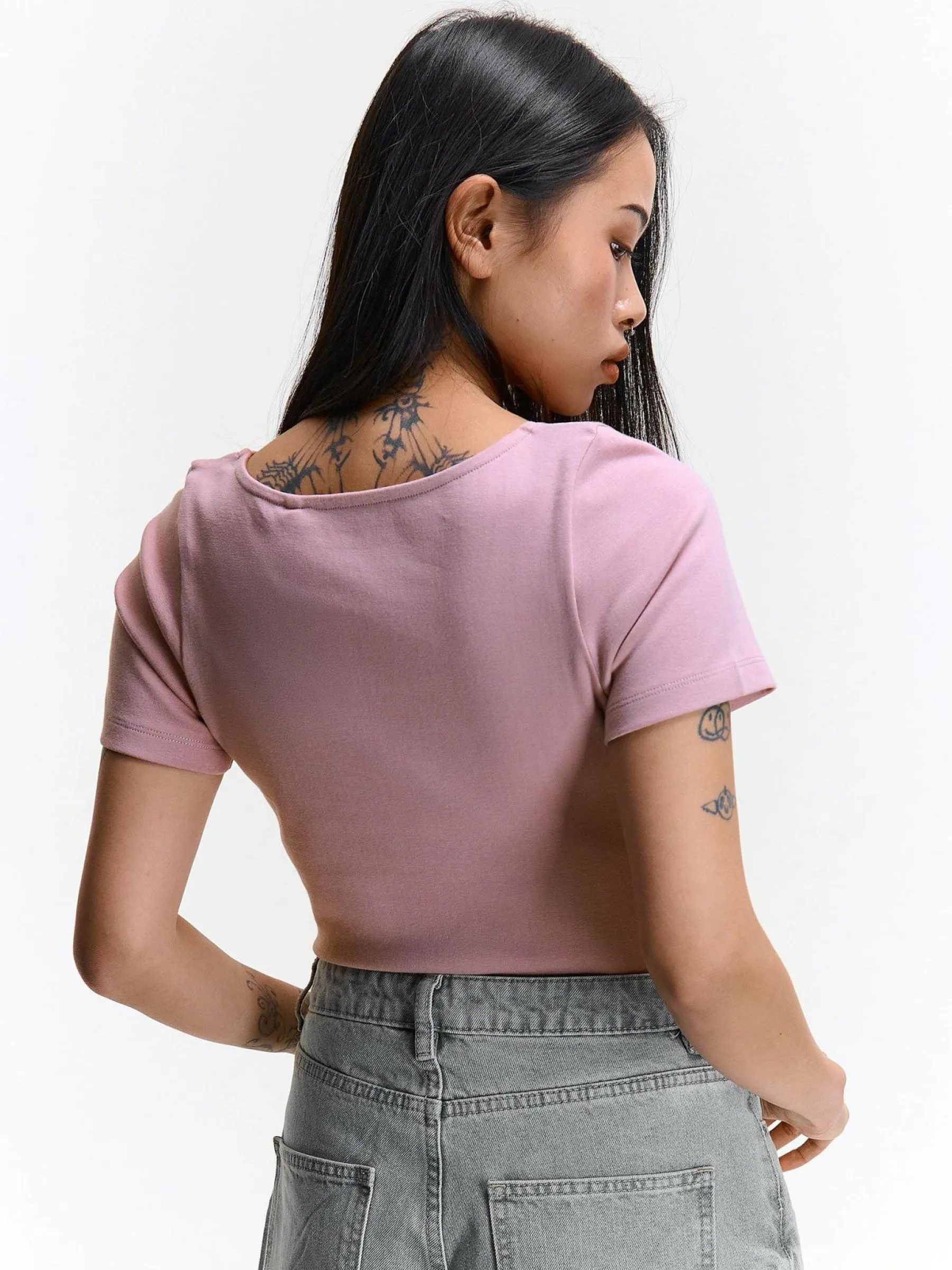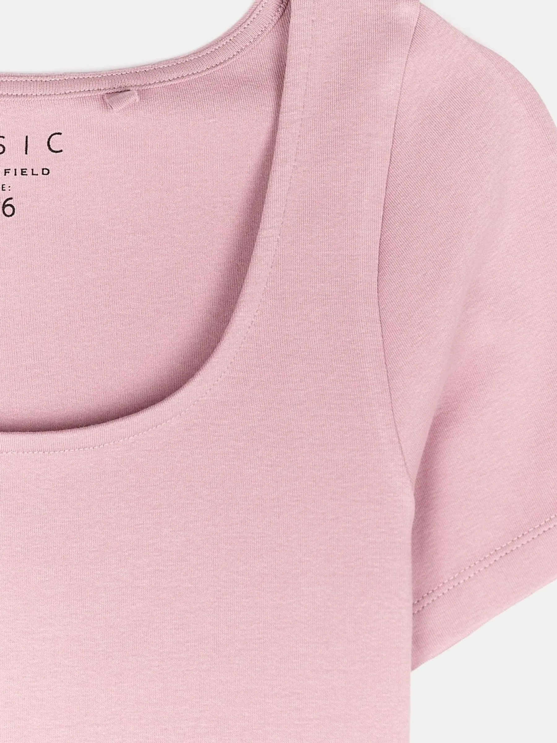 Kolor: różowyKrój: regularTyp: koszulkaRekaw: krótki rękawDługość: krótkiPattern style: pojedynczy kolorDetal: …
