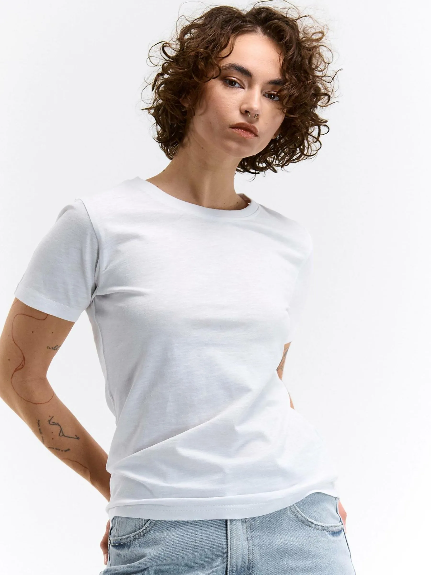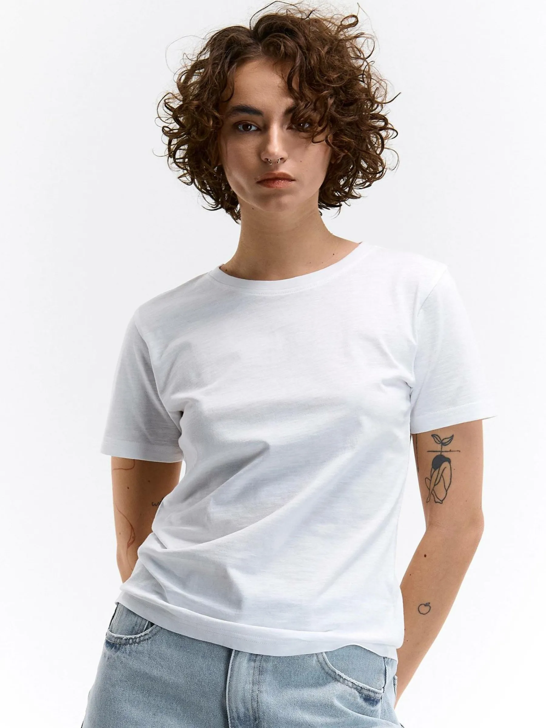 Kolor: białyKrój: regularTyp: koszulkaRekaw: krótki rękawDługość: krótkiPattern style: pojedynczy kolorDetal: na…
