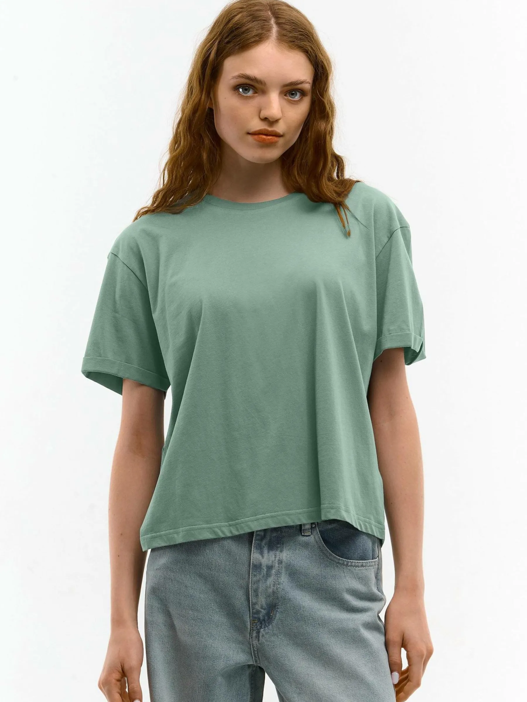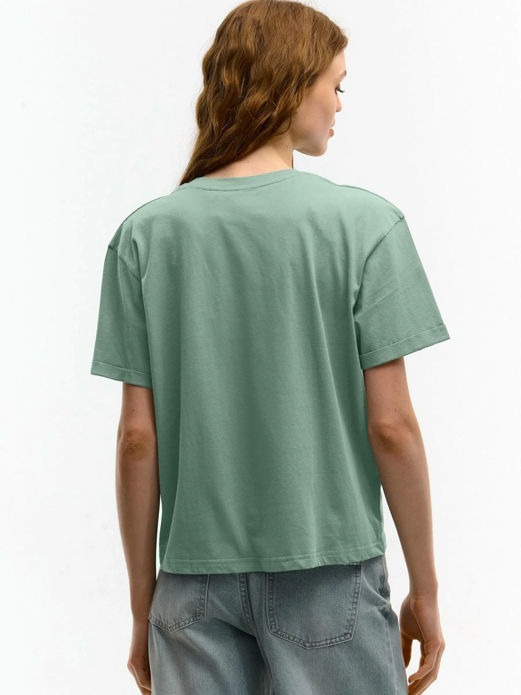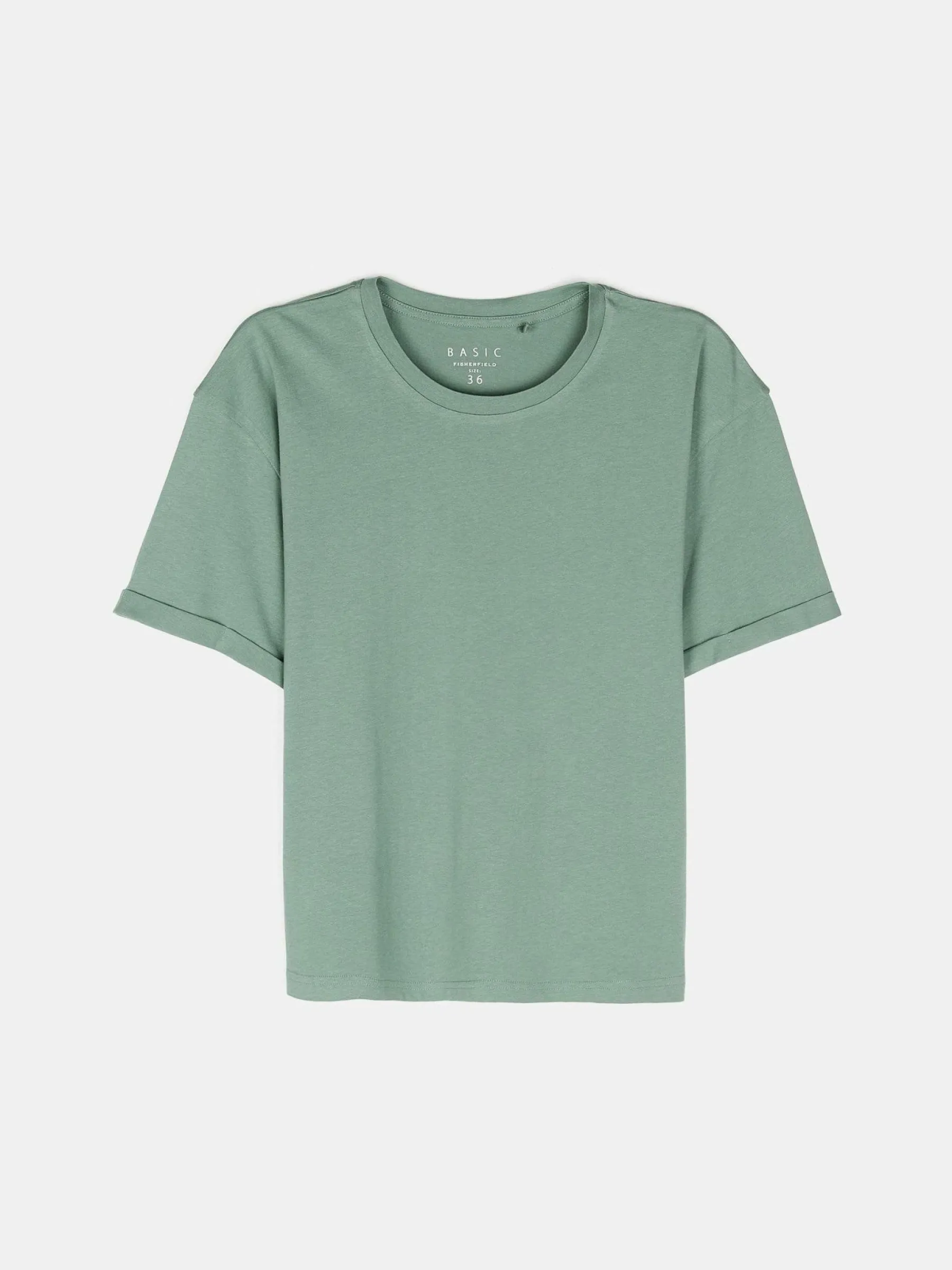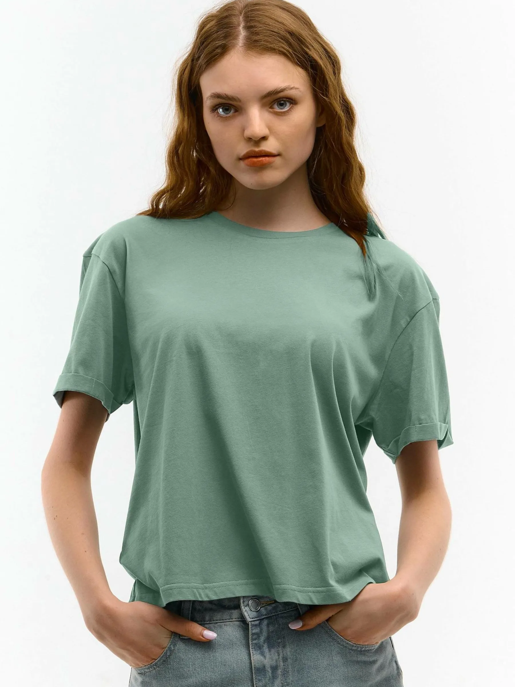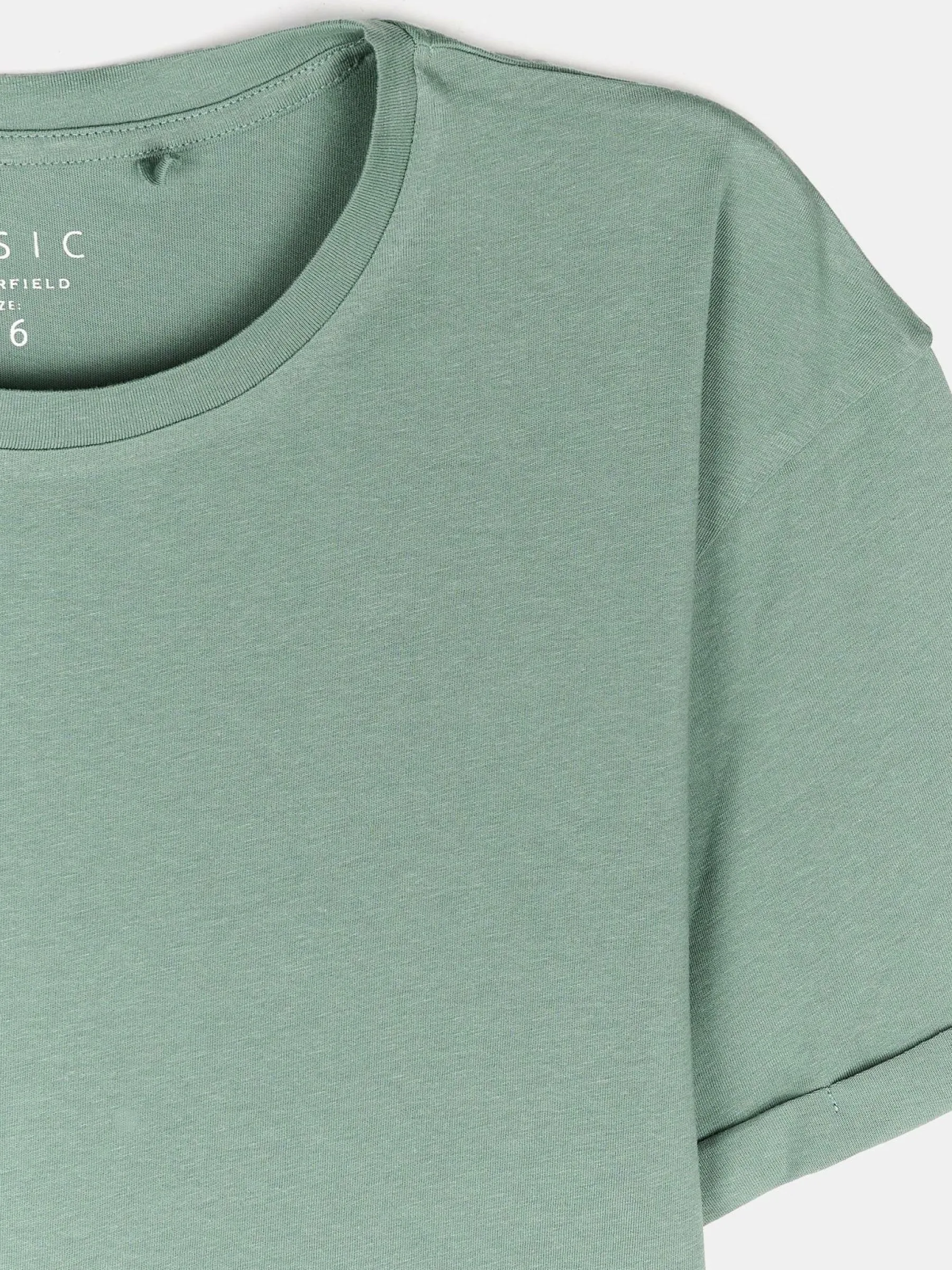 Kolor: zielonyKrój: podstawowyTyp: koszulkaRekaw: krótki rękawDługość: krótkiPattern style: pojedynczy kolorDetal…
