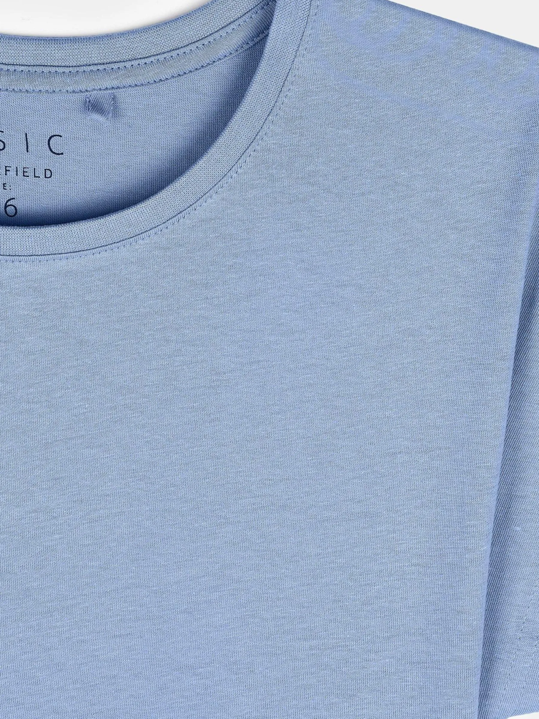 Kolor: niebieskiKrój: regularTyp: koszulkaRekaw: krótki rękawDługość: krótkiPattern style: pojedynczy kolorDetal:…