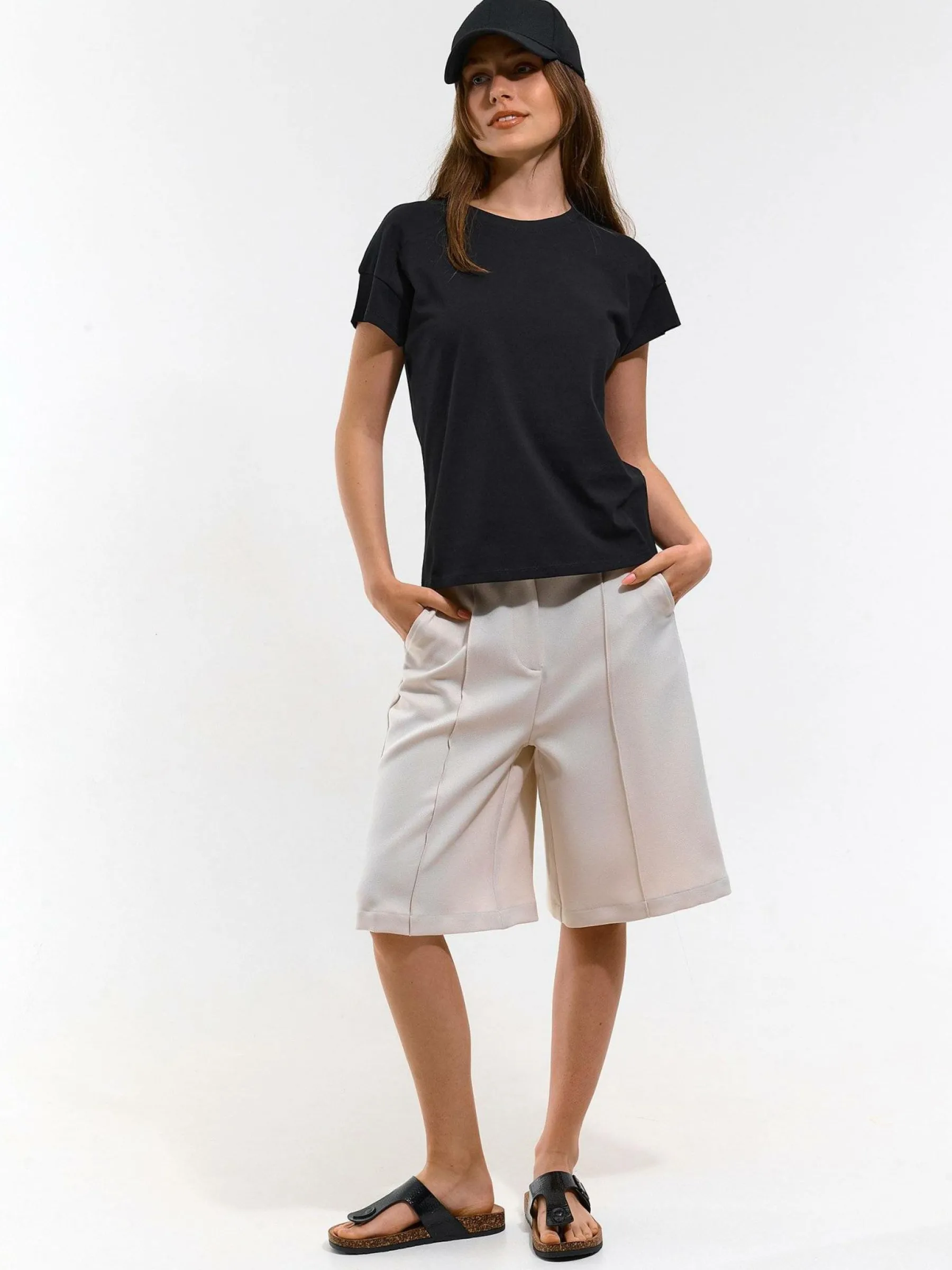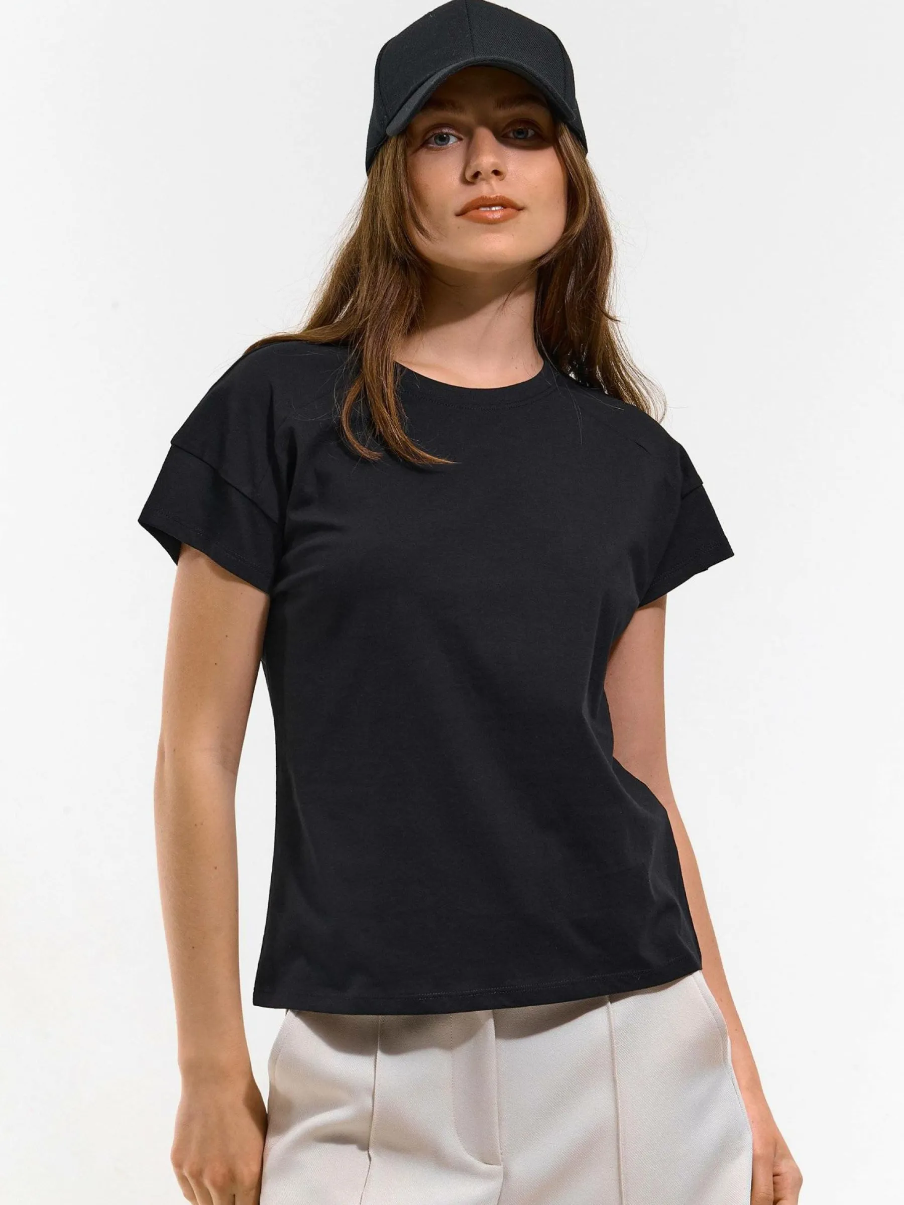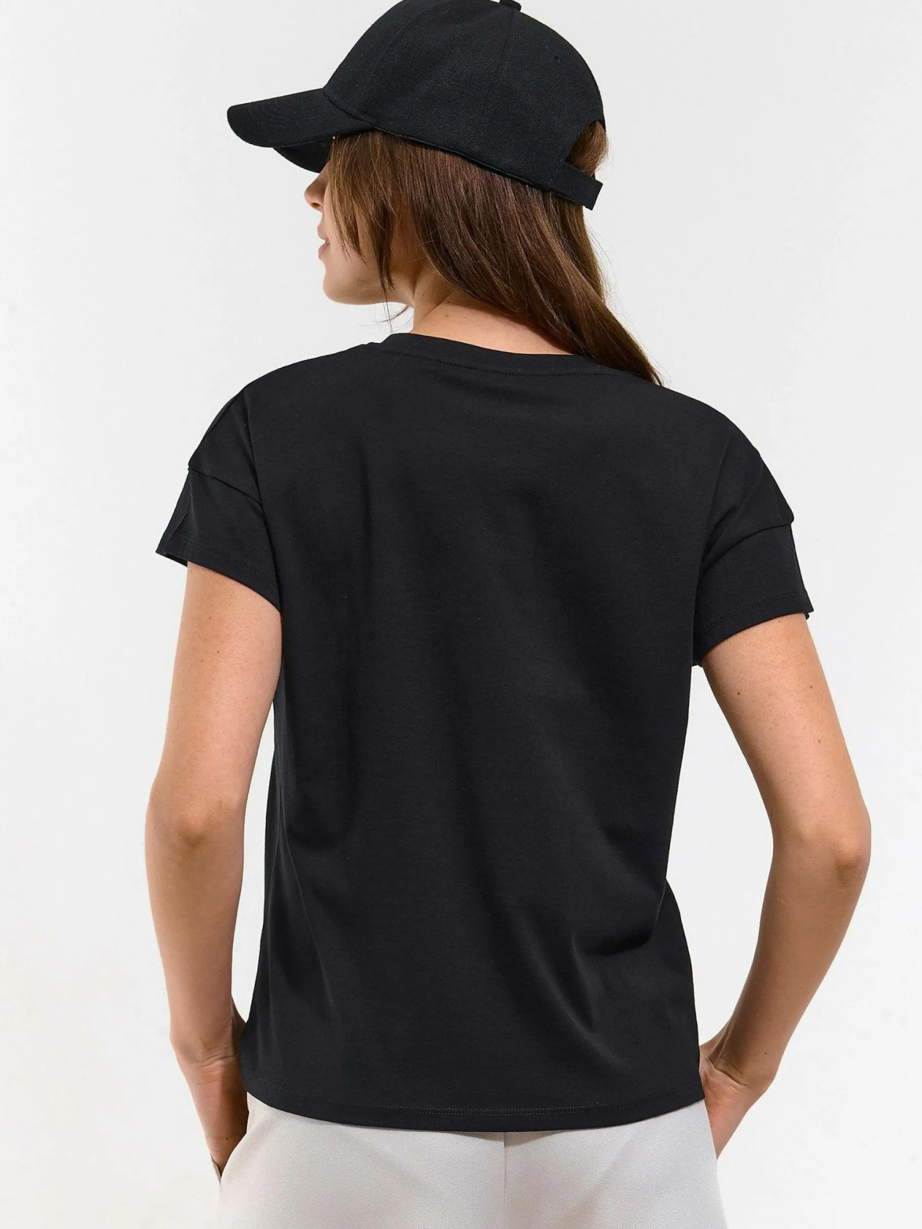 Kolor: czarnyKrój: regularTyp: koszulkaRekaw: krótki rękawDługość: krótkiPattern style: pojedynczy kolorDetal: na…