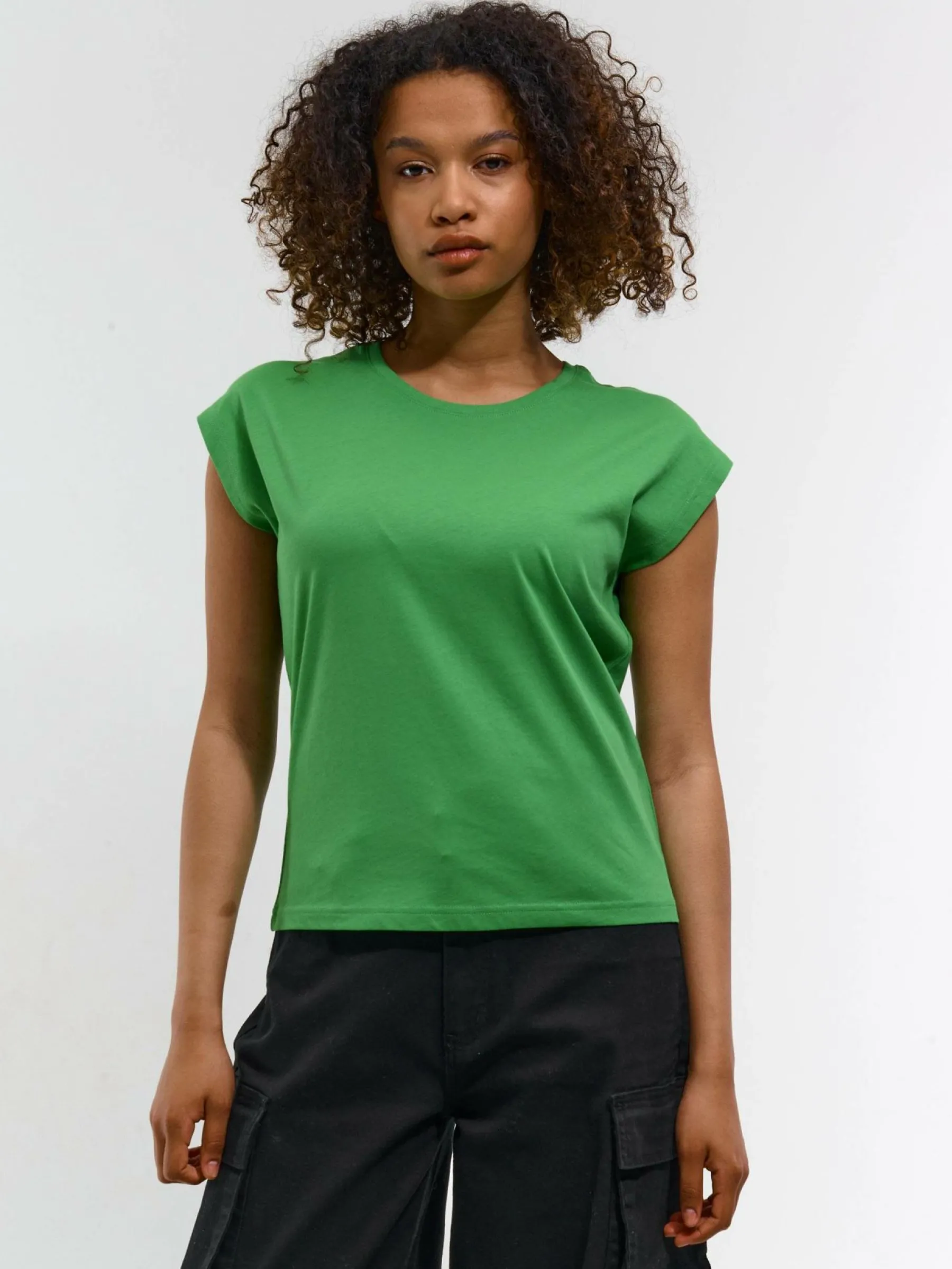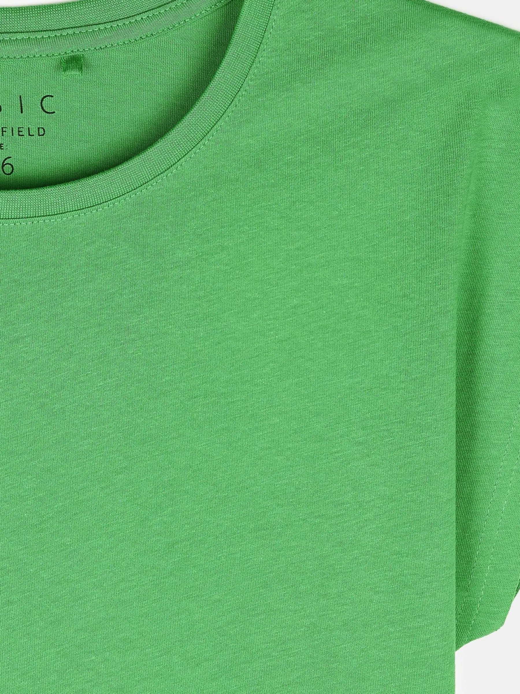 Kolor: zielonyKrój: regularTyp: koszulkaRekaw: krótki rękawDługość: krótkiPattern style: pojedynczy kolorDetal: n…