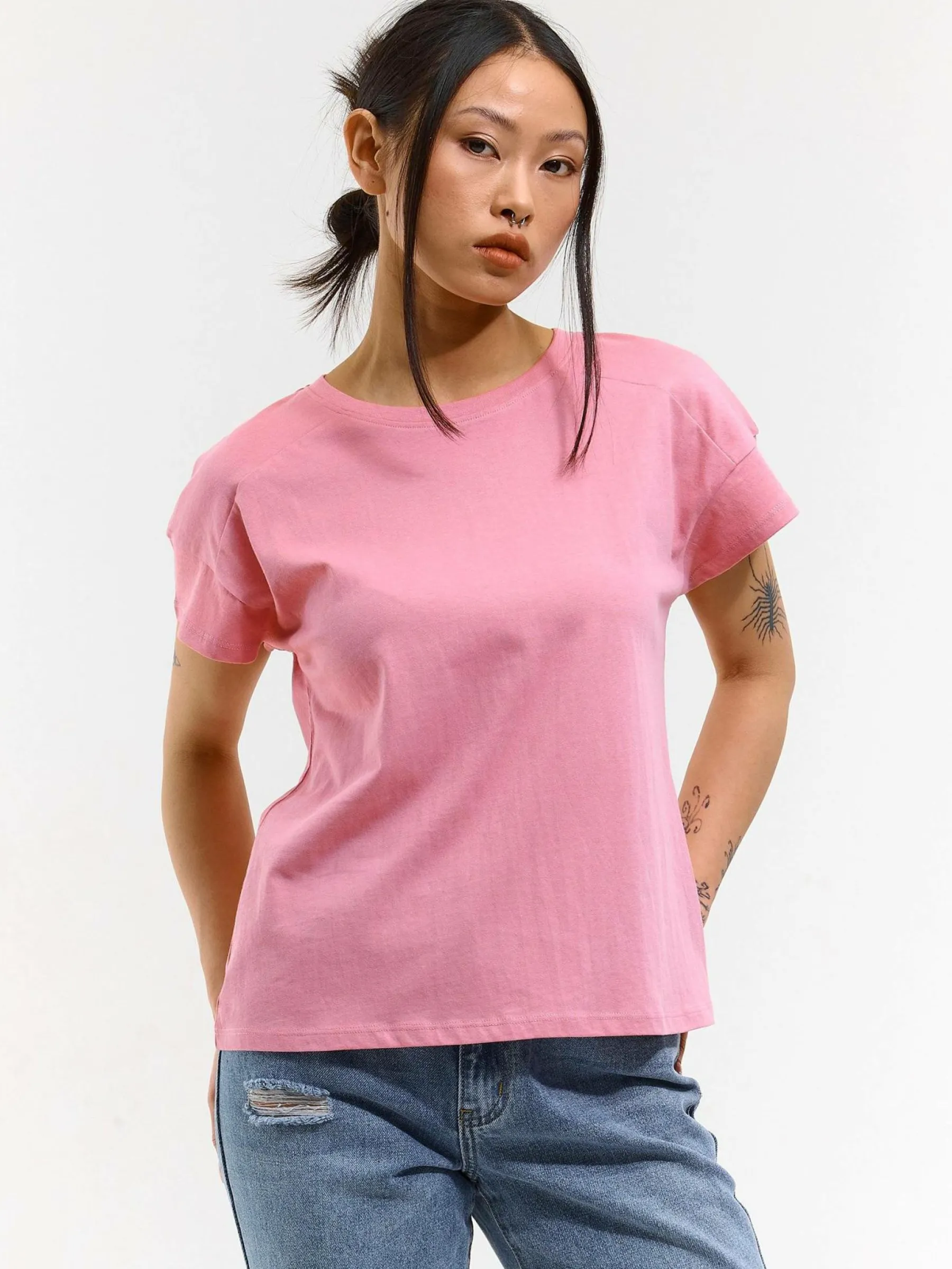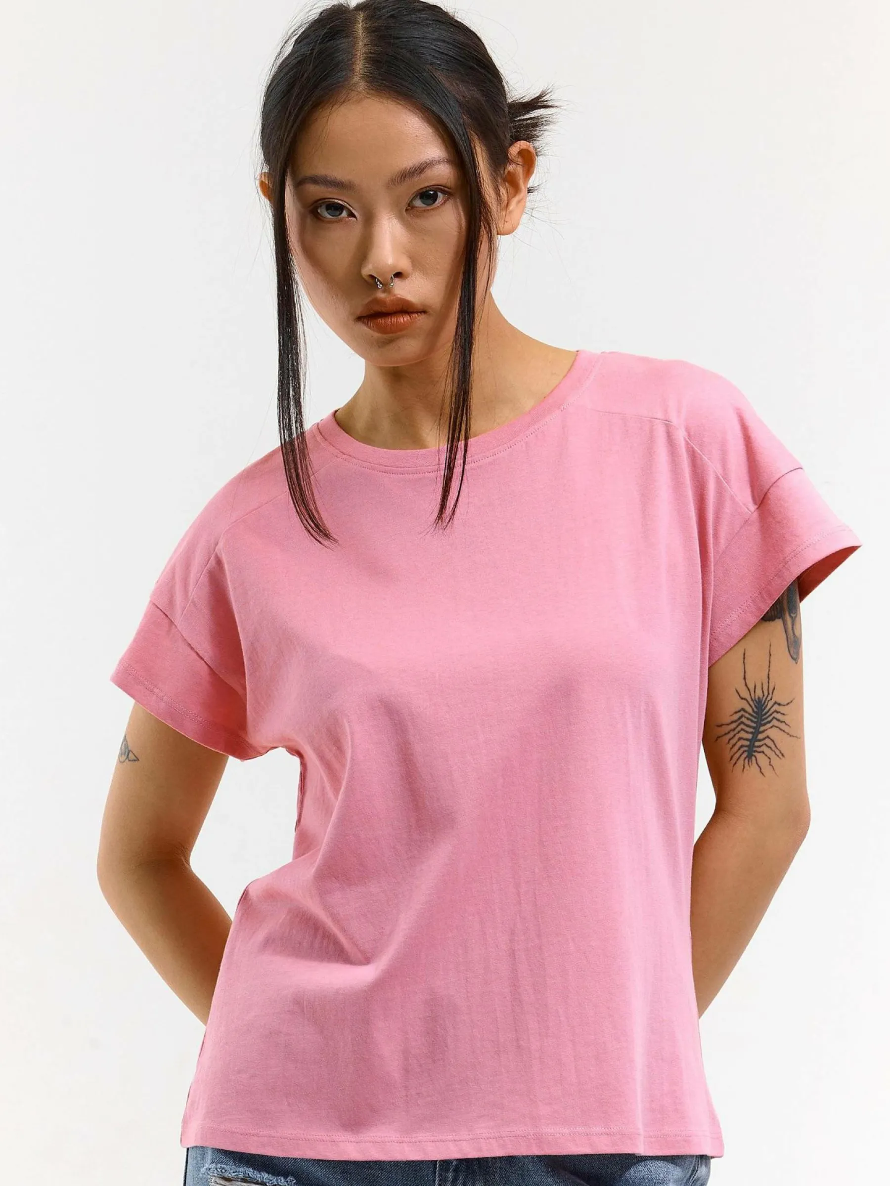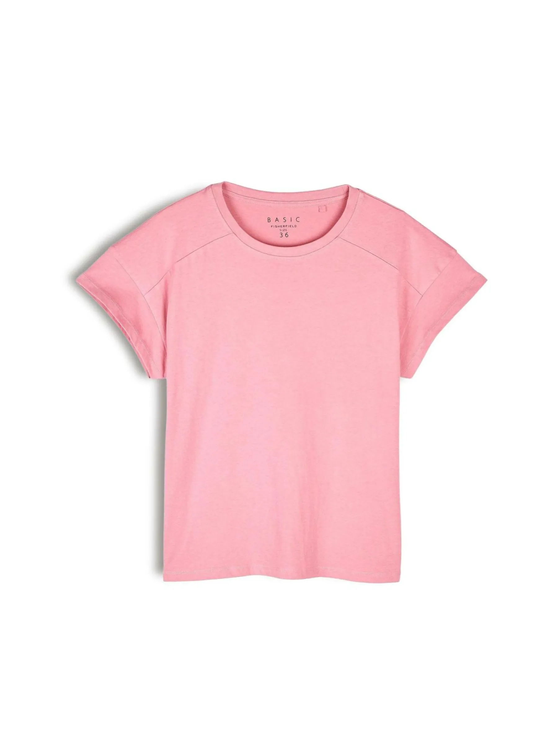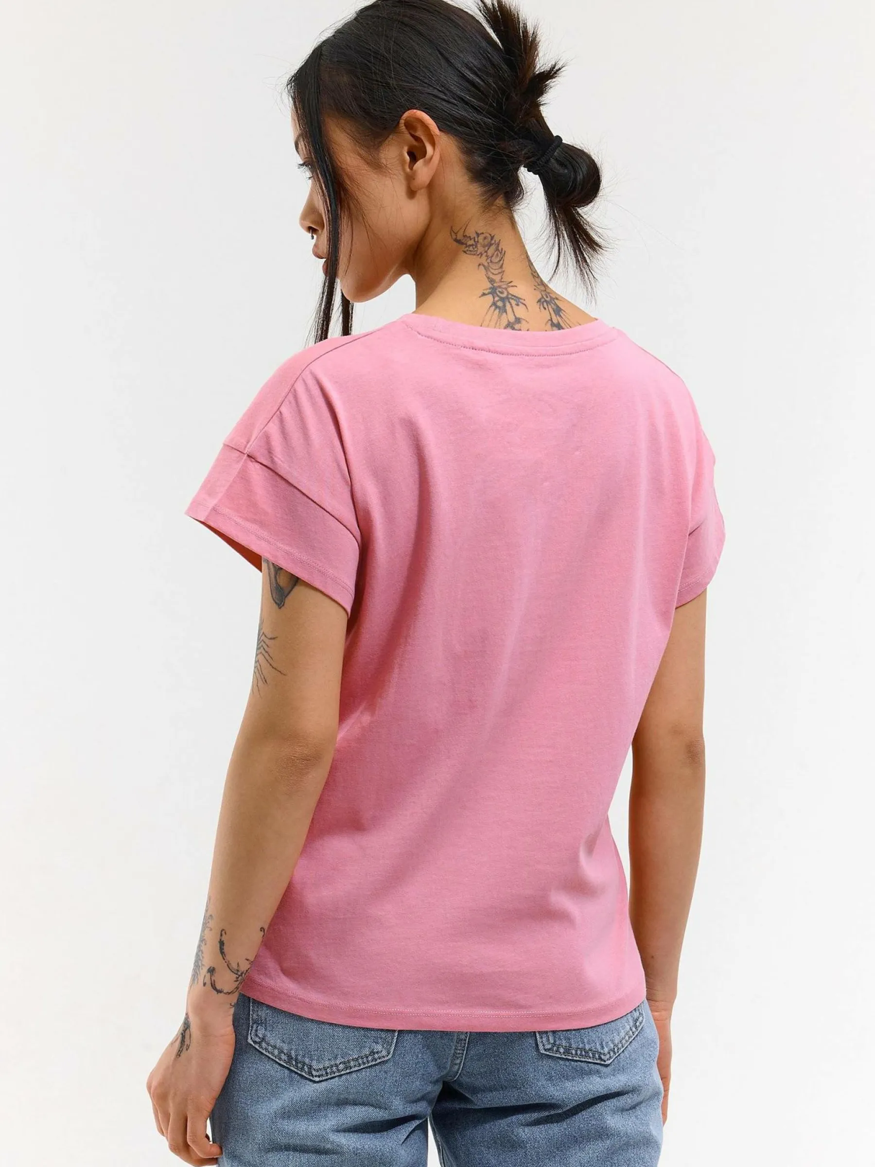 Kolor: różowyKrój: regularTyp: koszulkaRekaw: krótki rękawDługość: krótkiPattern style: pojedynczy kolorDetal: …