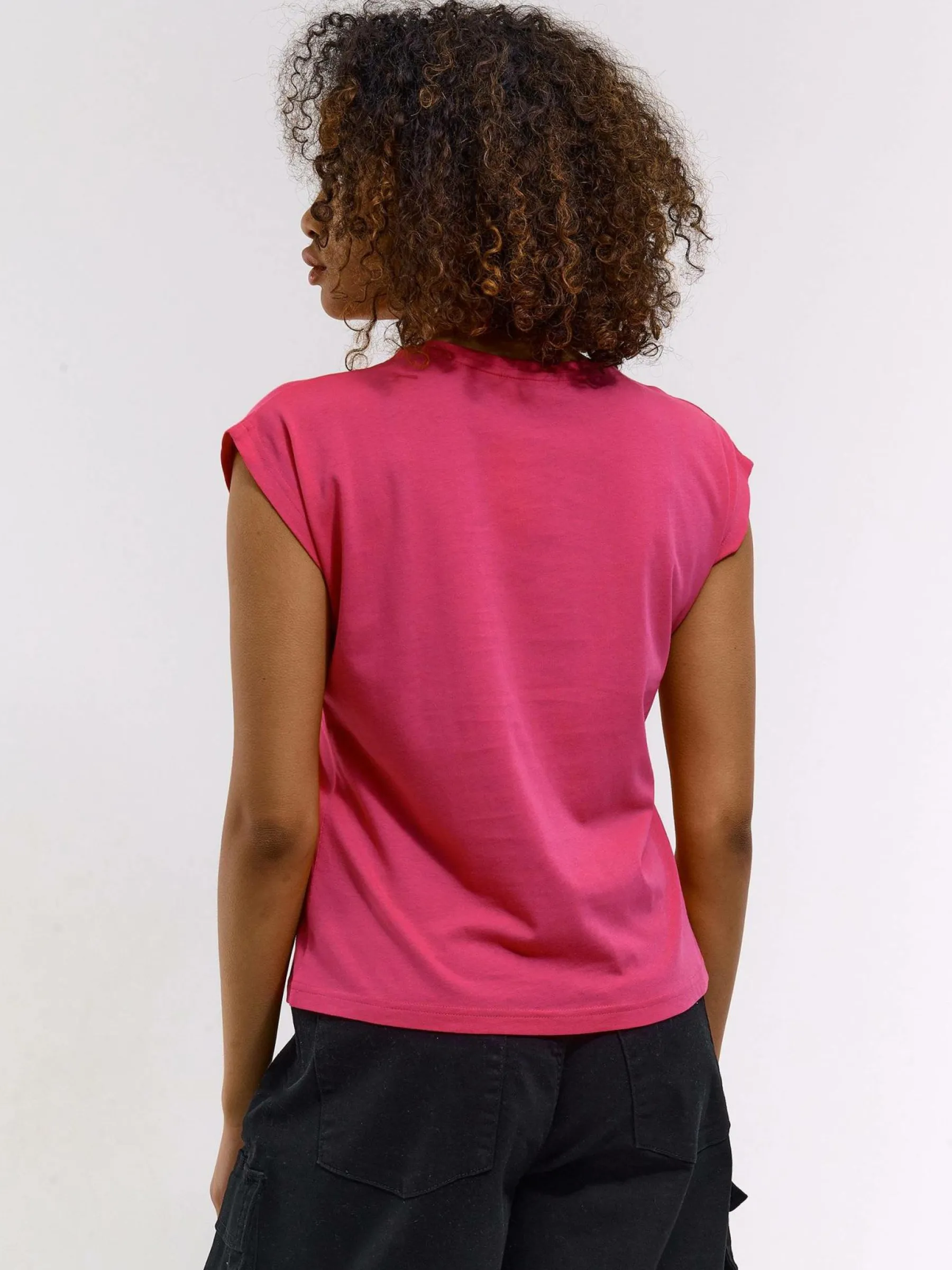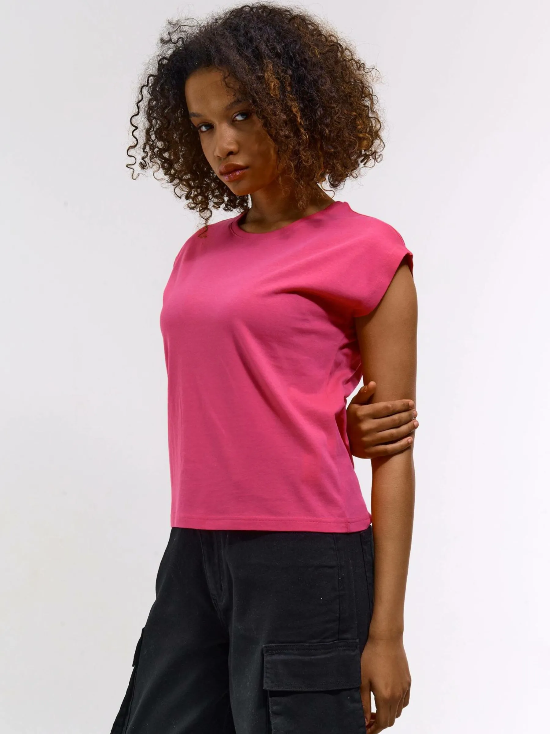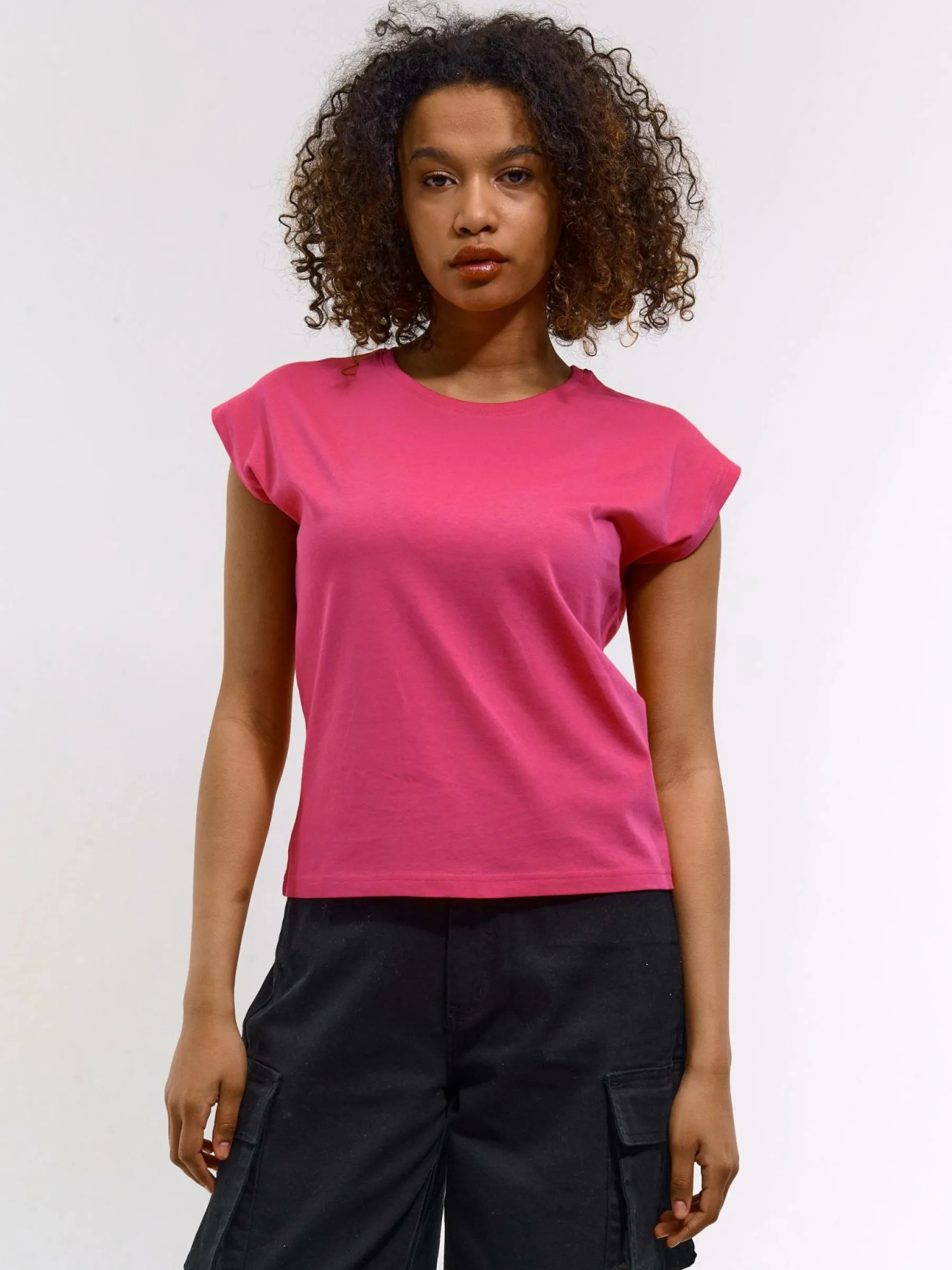 Zdjęcia z modelką mogą nie odpowiadać rzeczywistemu kolorowi produktu.Kolor: różowyKrój: podstawowyTyp: koszulkaR…