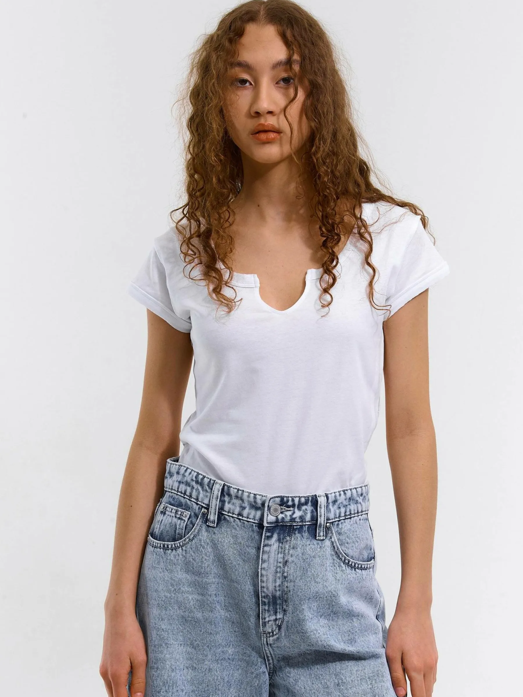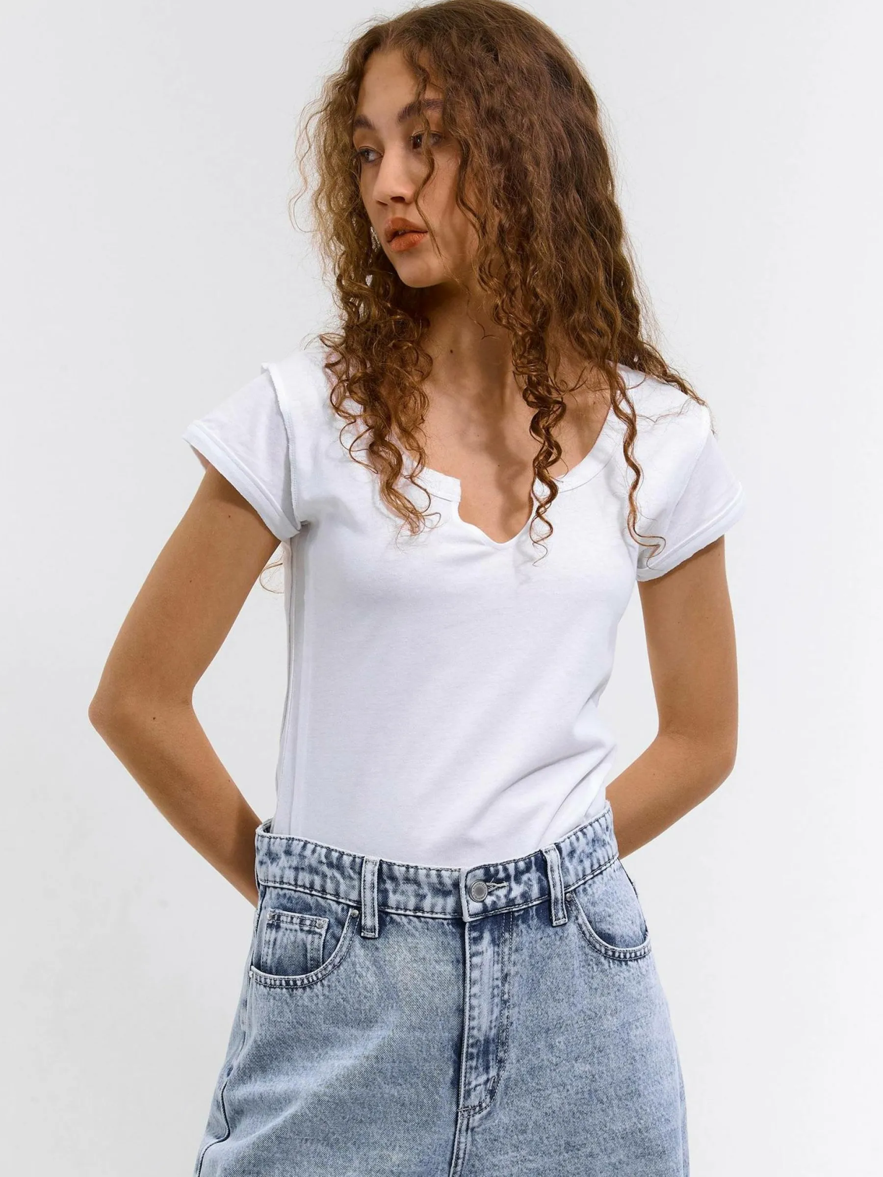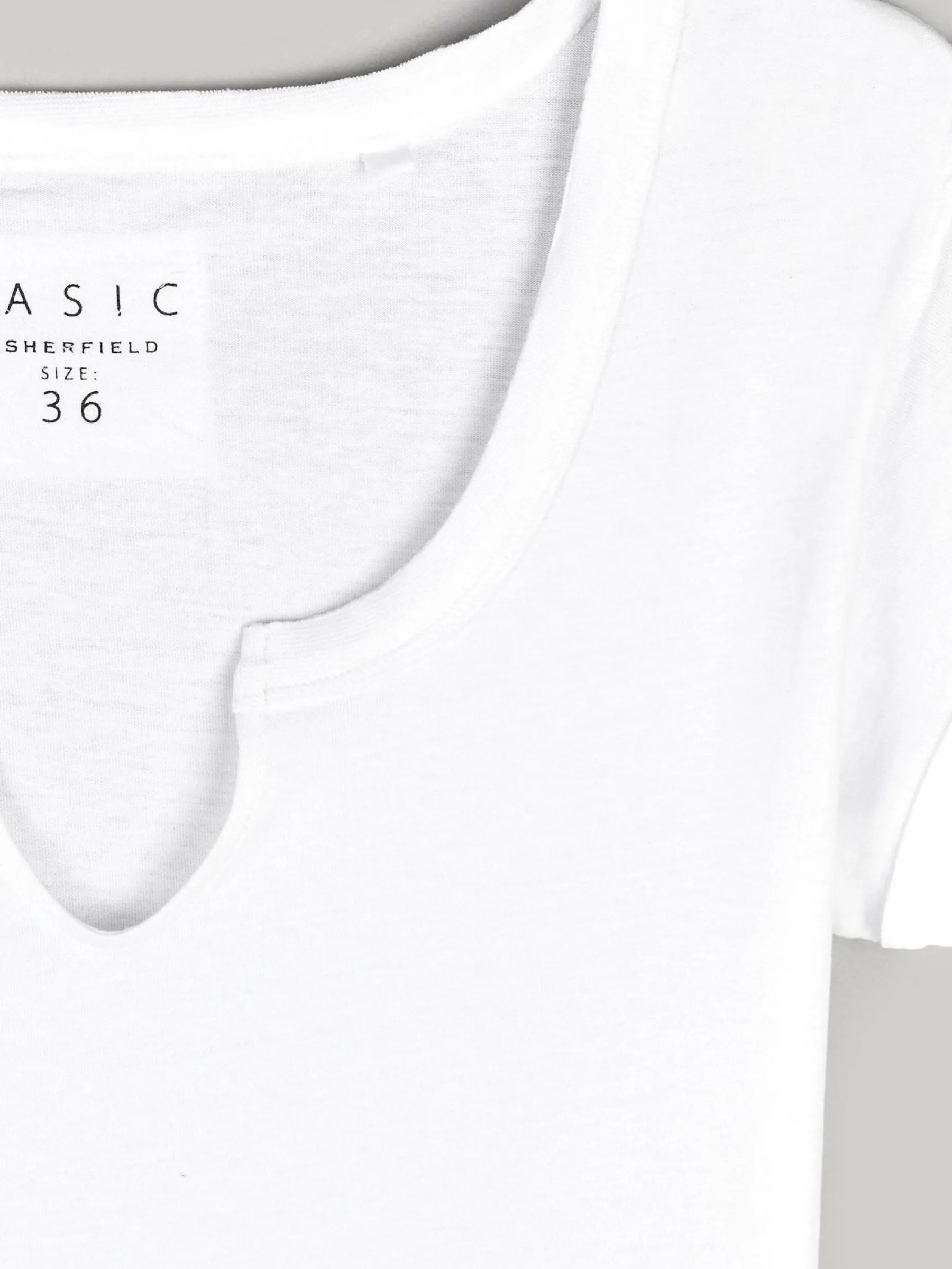 Kolor: białyKrój: regularTyp: koszulkaRekaw: krótki rękawDługość: krótkiPattern style: pojedynczy kolorDetal: na…