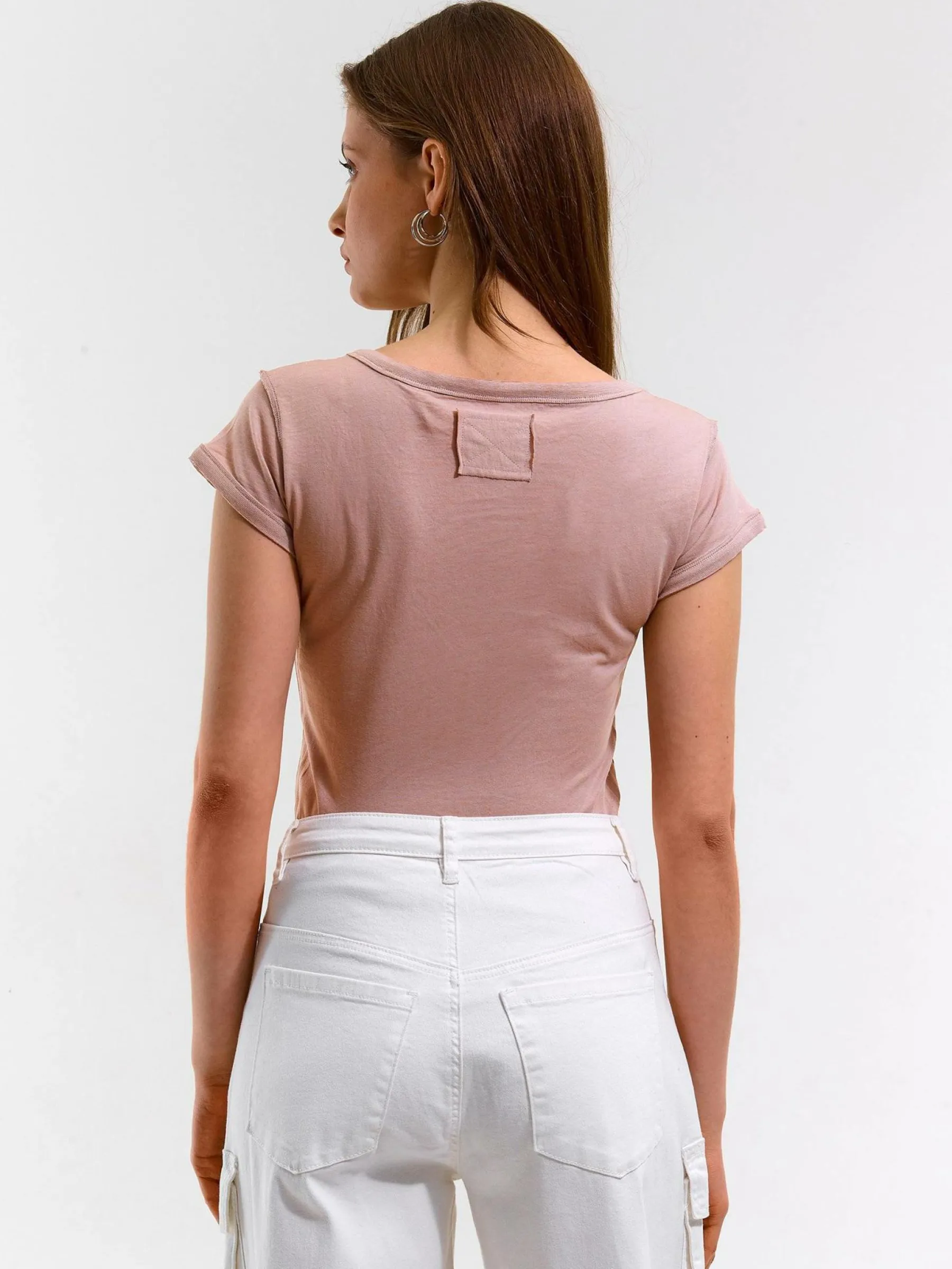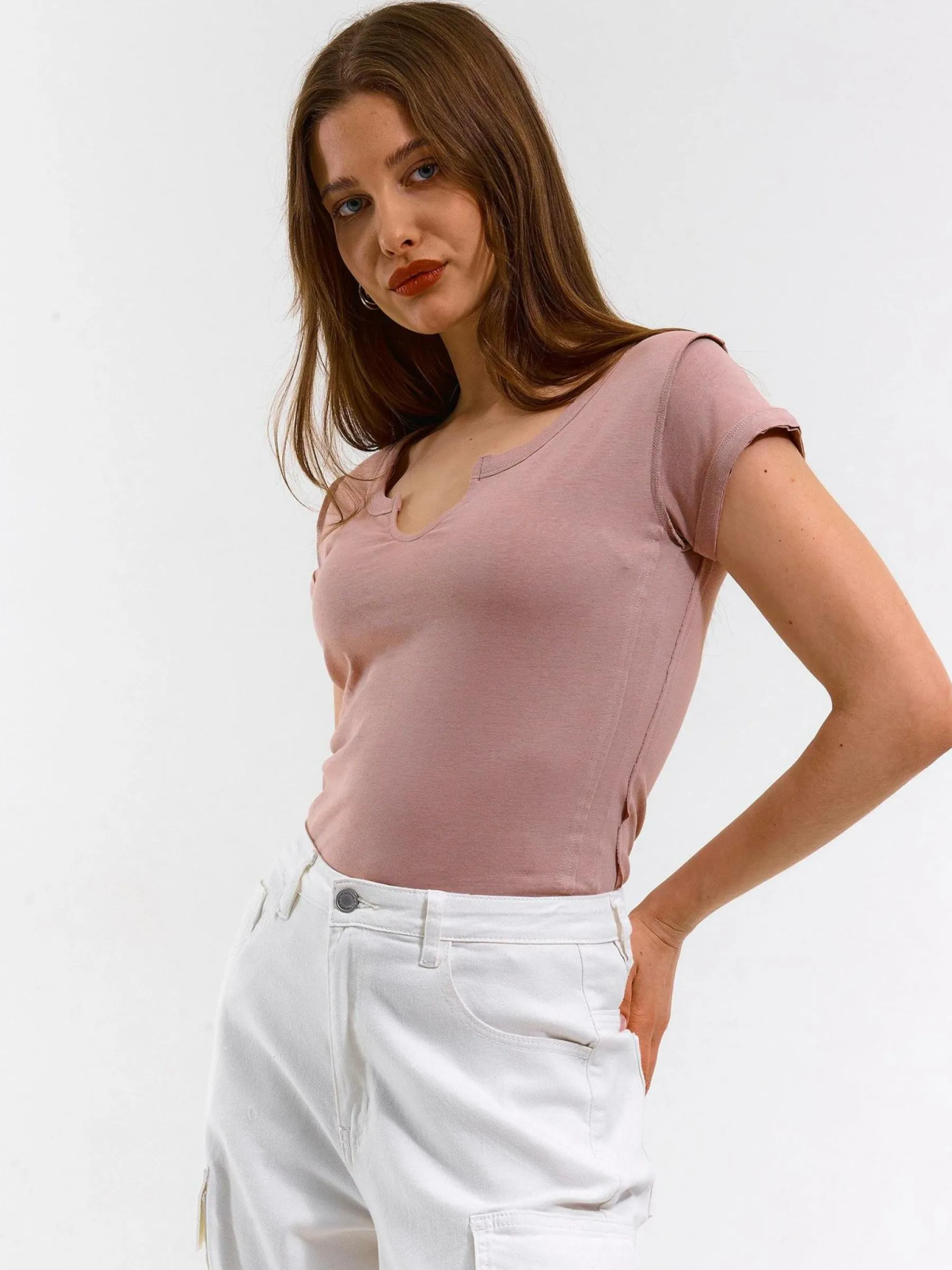 Kolor: różowyKrój: regularTyp: koszulkaRekaw: krótki rękawDługość: krótkiPattern style: pojedynczy kolorDetal: …