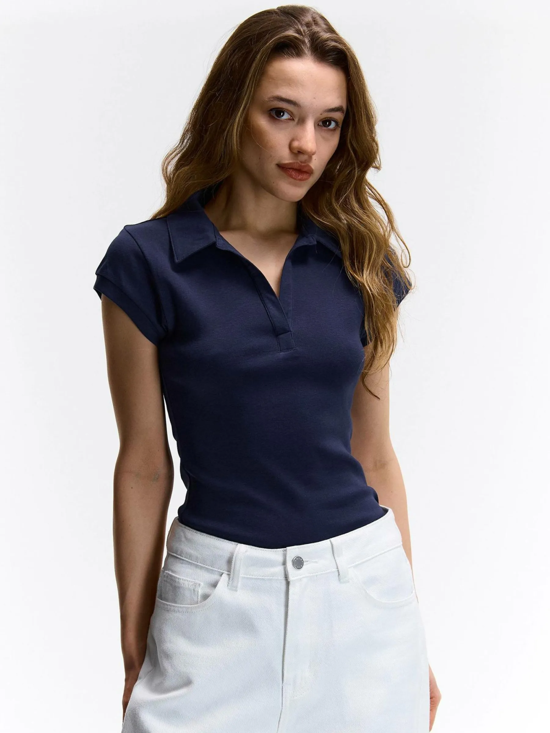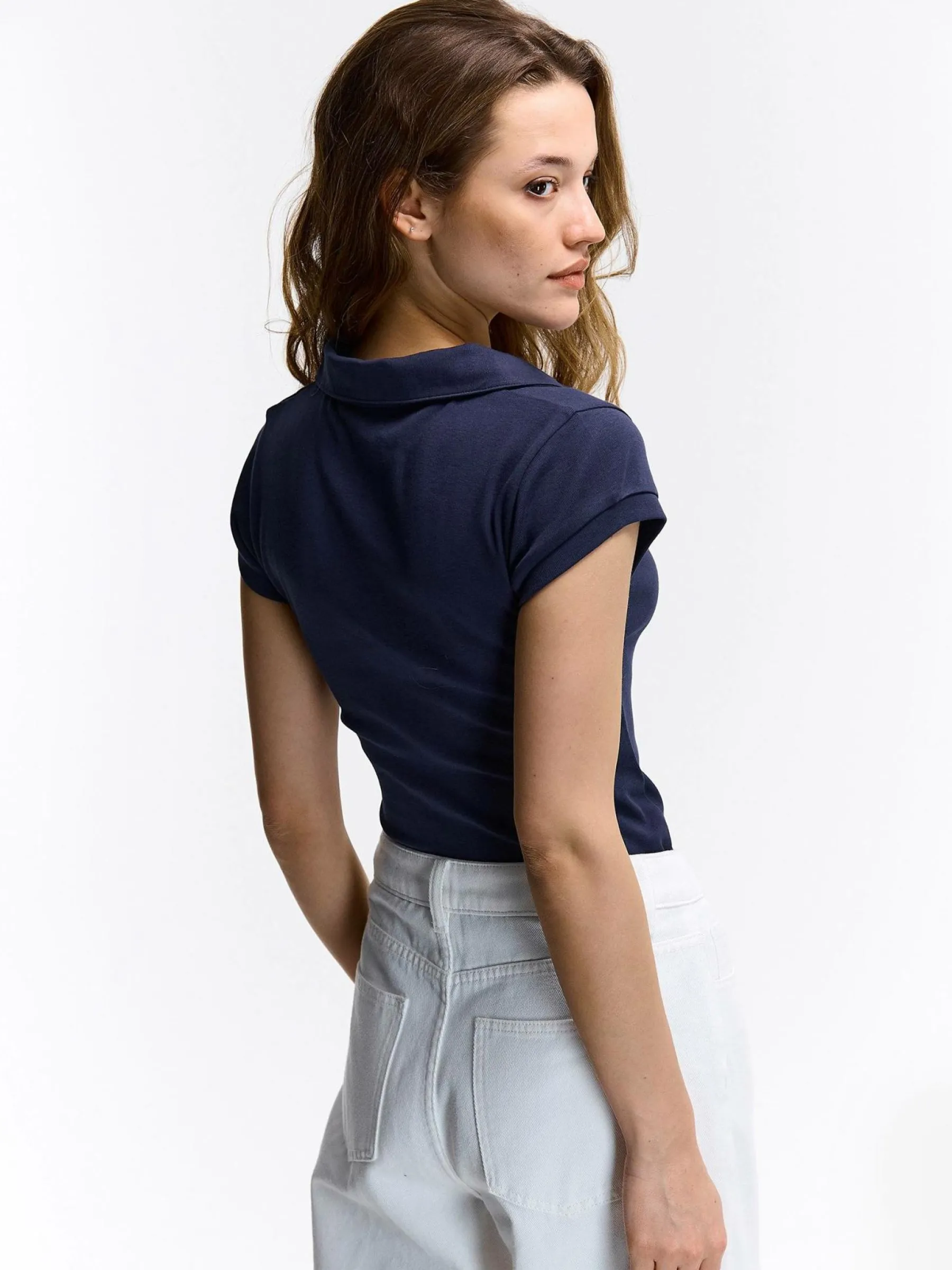 Kolor: granatowyKrój: poloTyp: koszulkaRekaw: krótki rękawDługość: krótkiPattern style: pojedynczy kolorDetal: na…