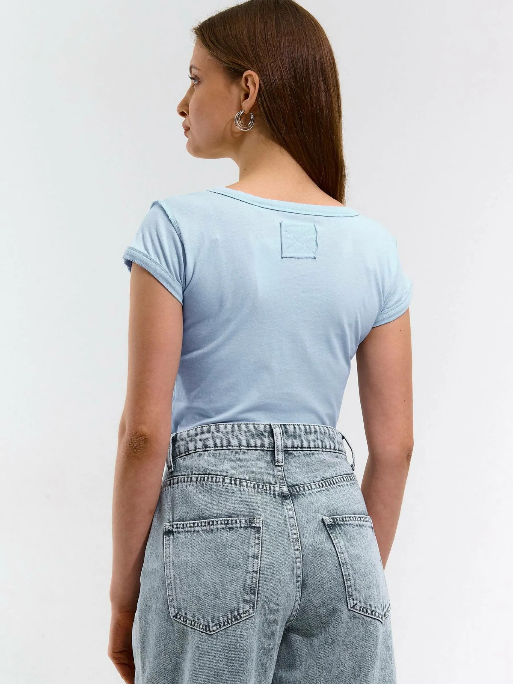 Zdjęcia z modelką mogą nie odpowiadać rzeczywistemu kolorowi produktu.Kolor: niebieskiKrój: podstawowyTyp: koszulka…