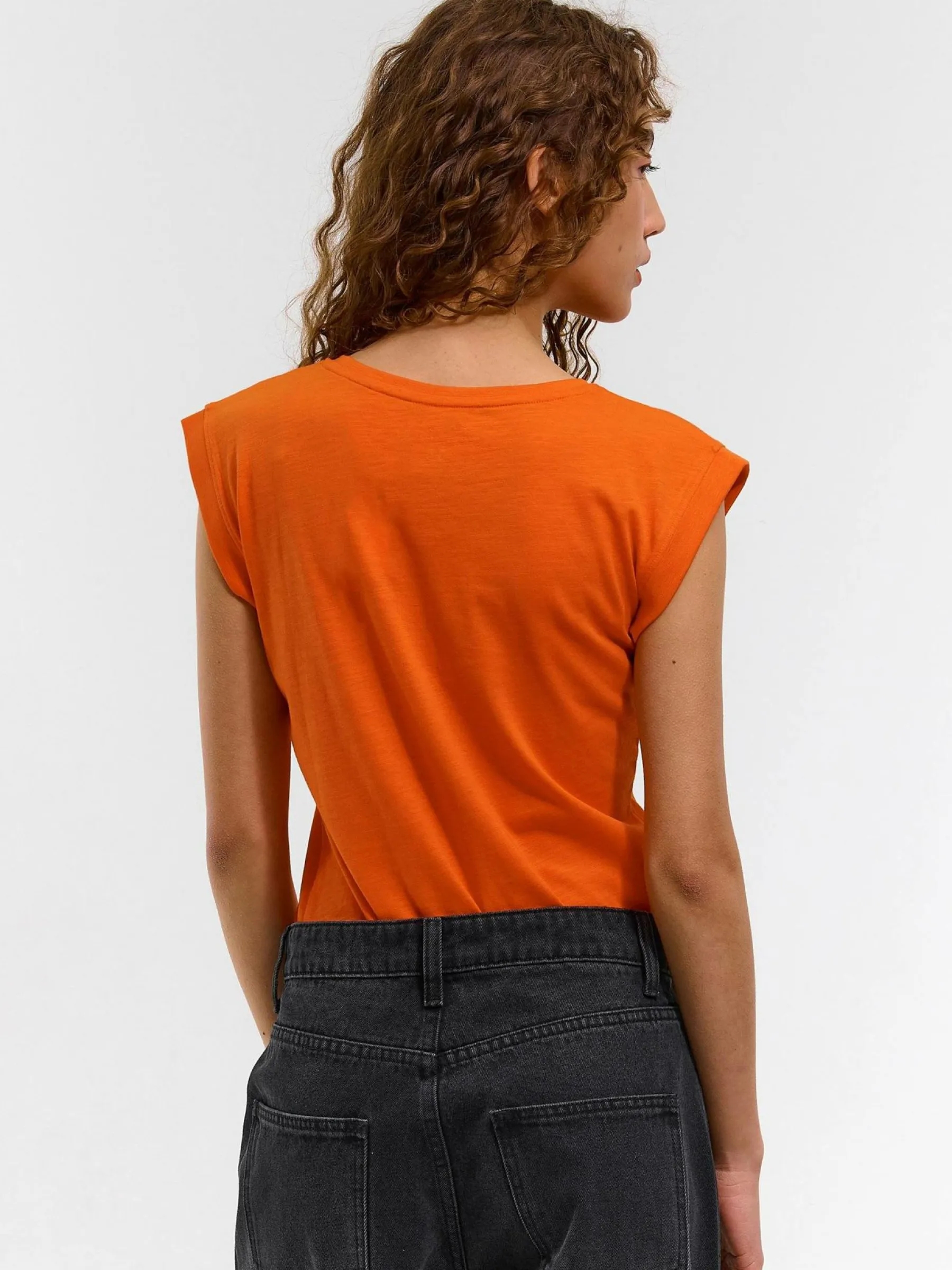 Kolor: pomarańczowyKrój: podstawowyTyp: koszulkaRekaw: krótki rękawDługość: krótkiPattern style: pojedynczy kolo…
