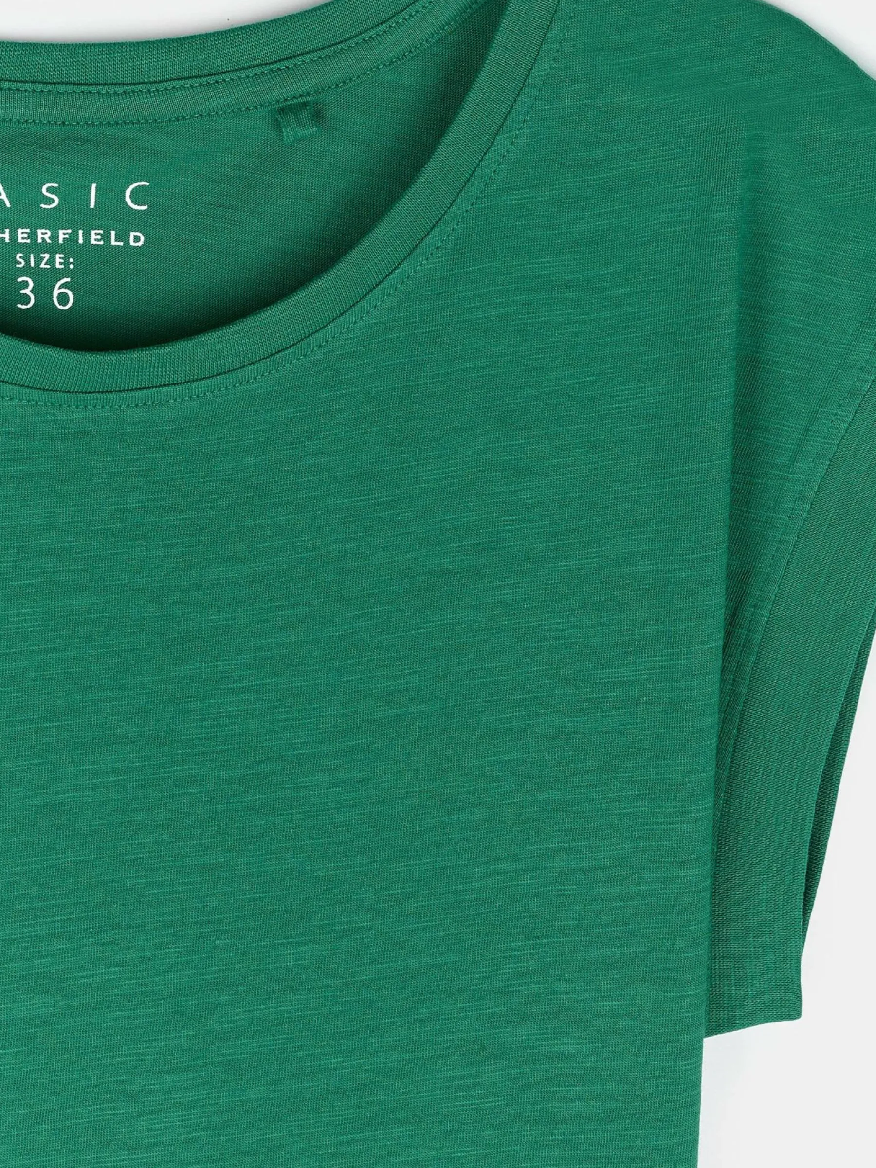 Kolor: zielonyKrój: regularTyp: koszulkaRekaw: krótki rękawDługość: krótkiPattern style: pojedynczy kolorDetal: n…