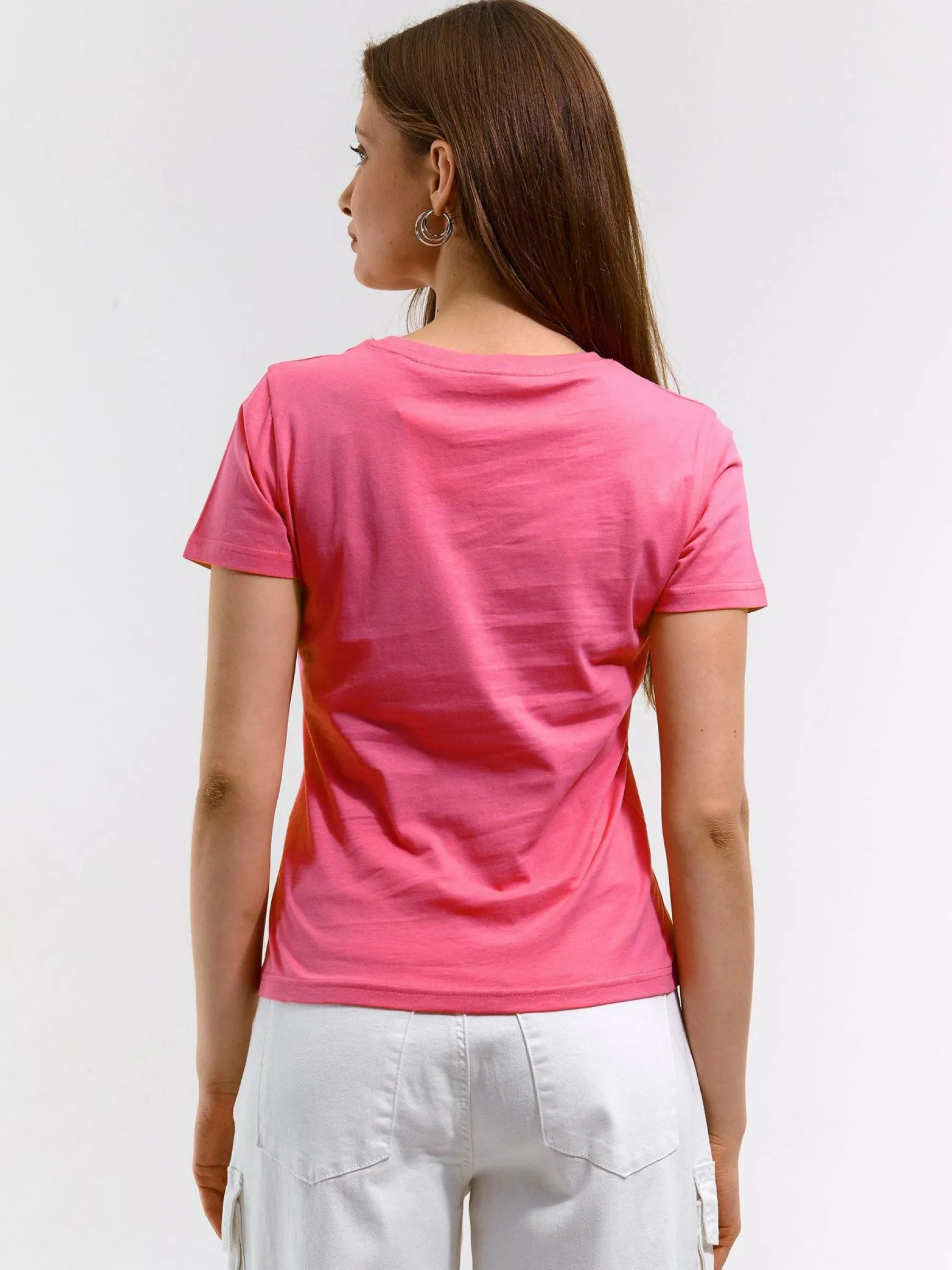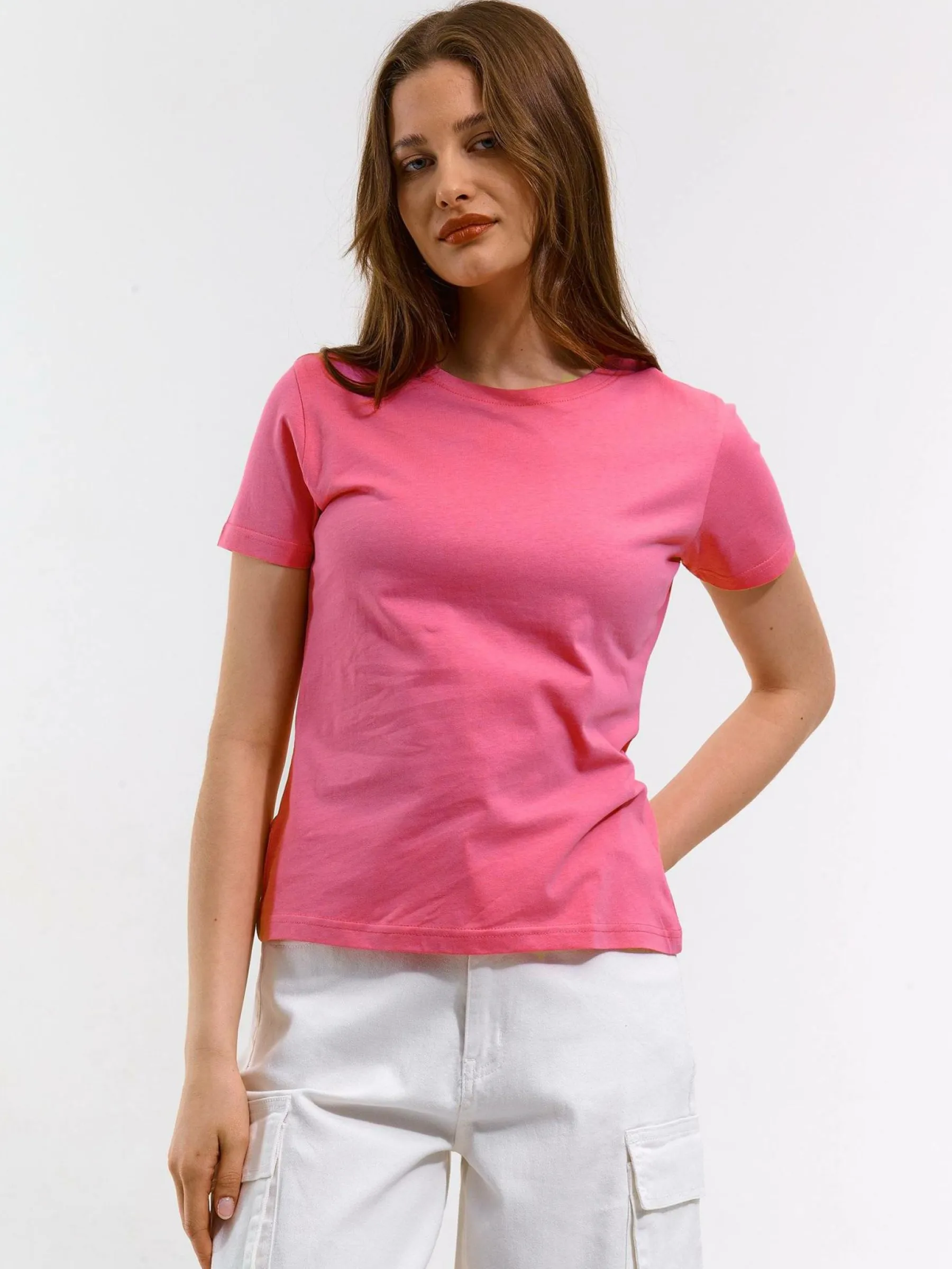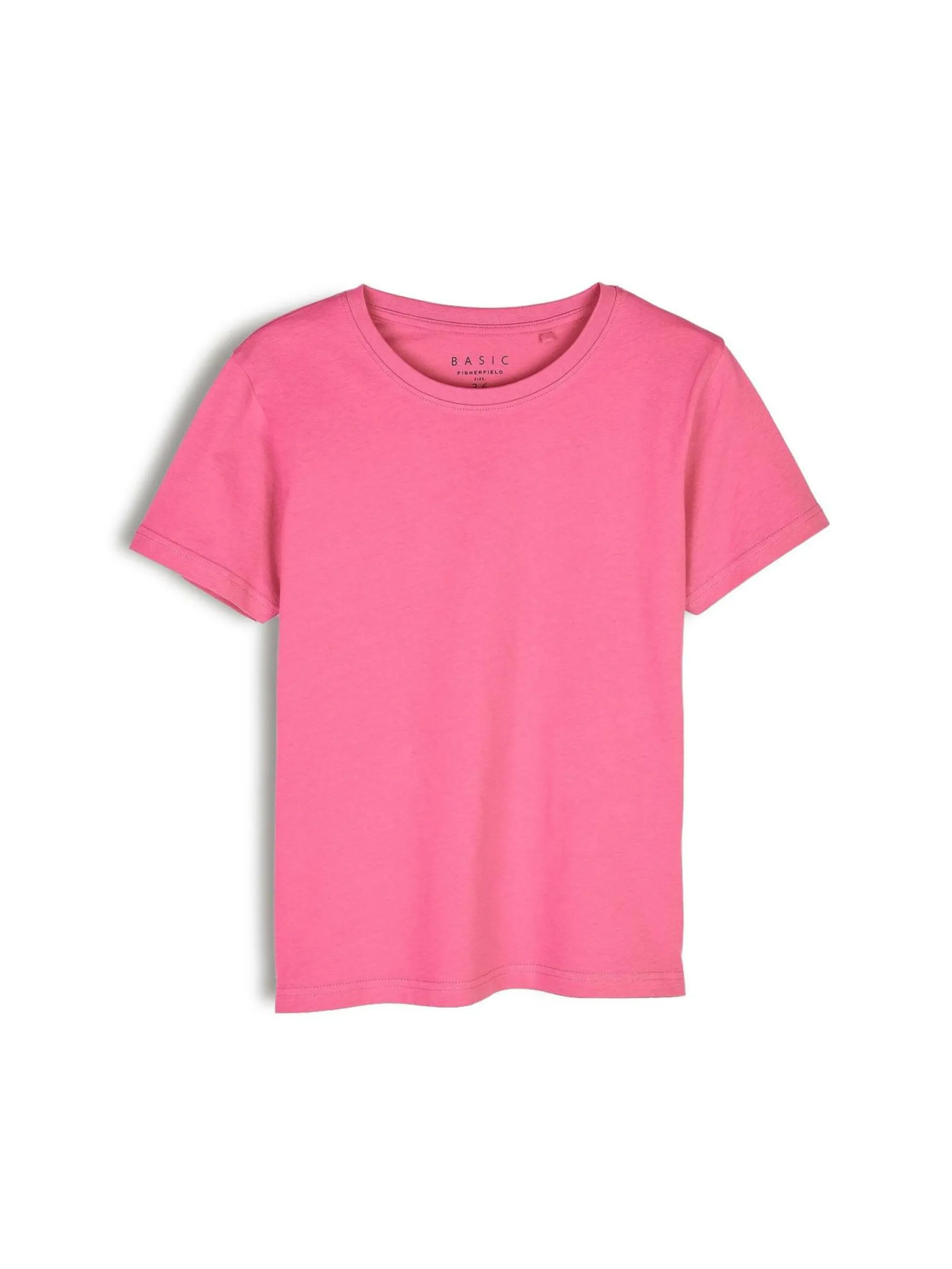 Kolor: różowyKrój: regularTyp: koszulkaRekaw: krótki rękawDługość: krótkiPattern style: pojedynczy kolorDetal: …
