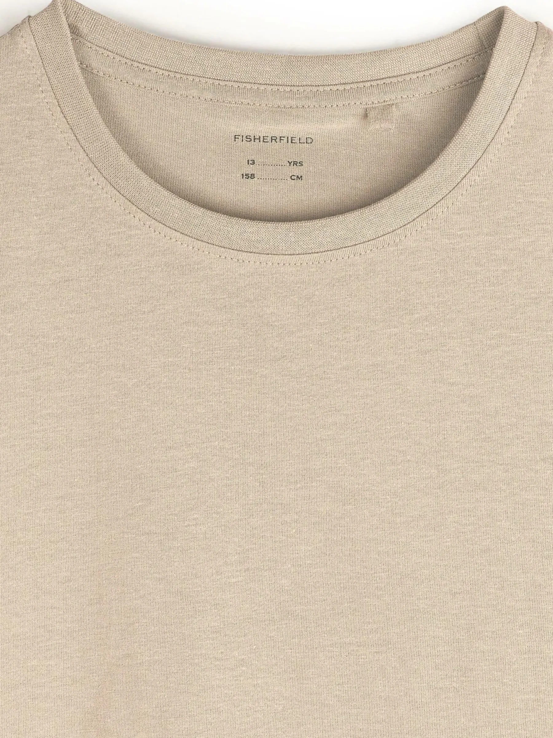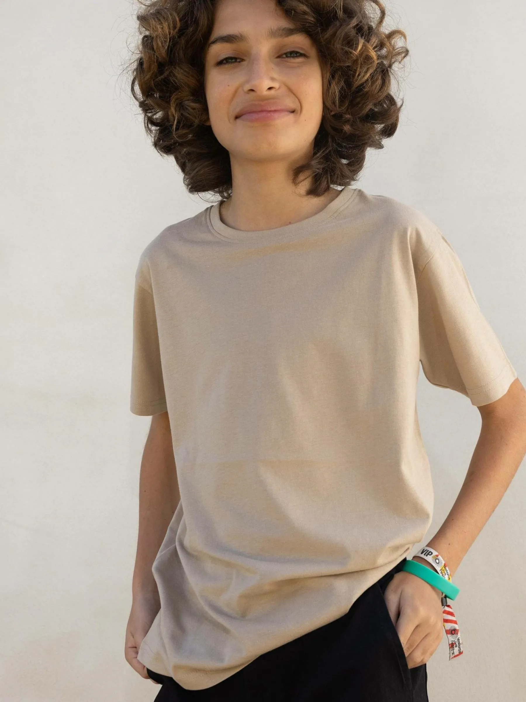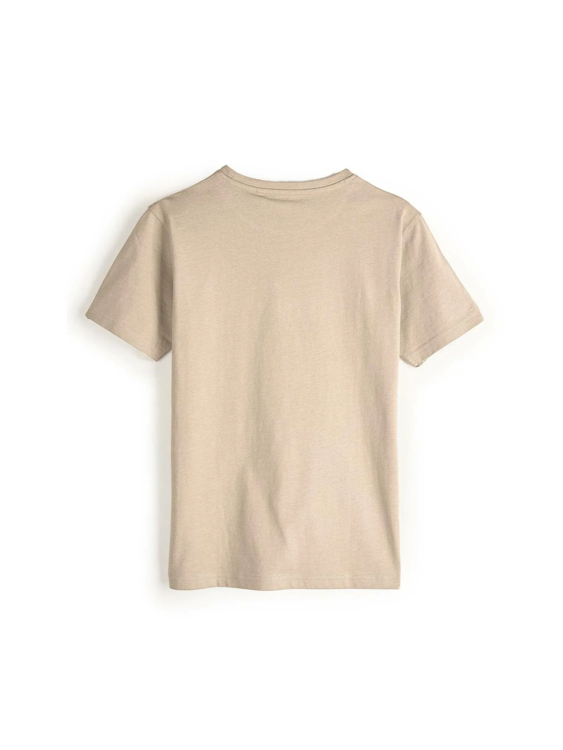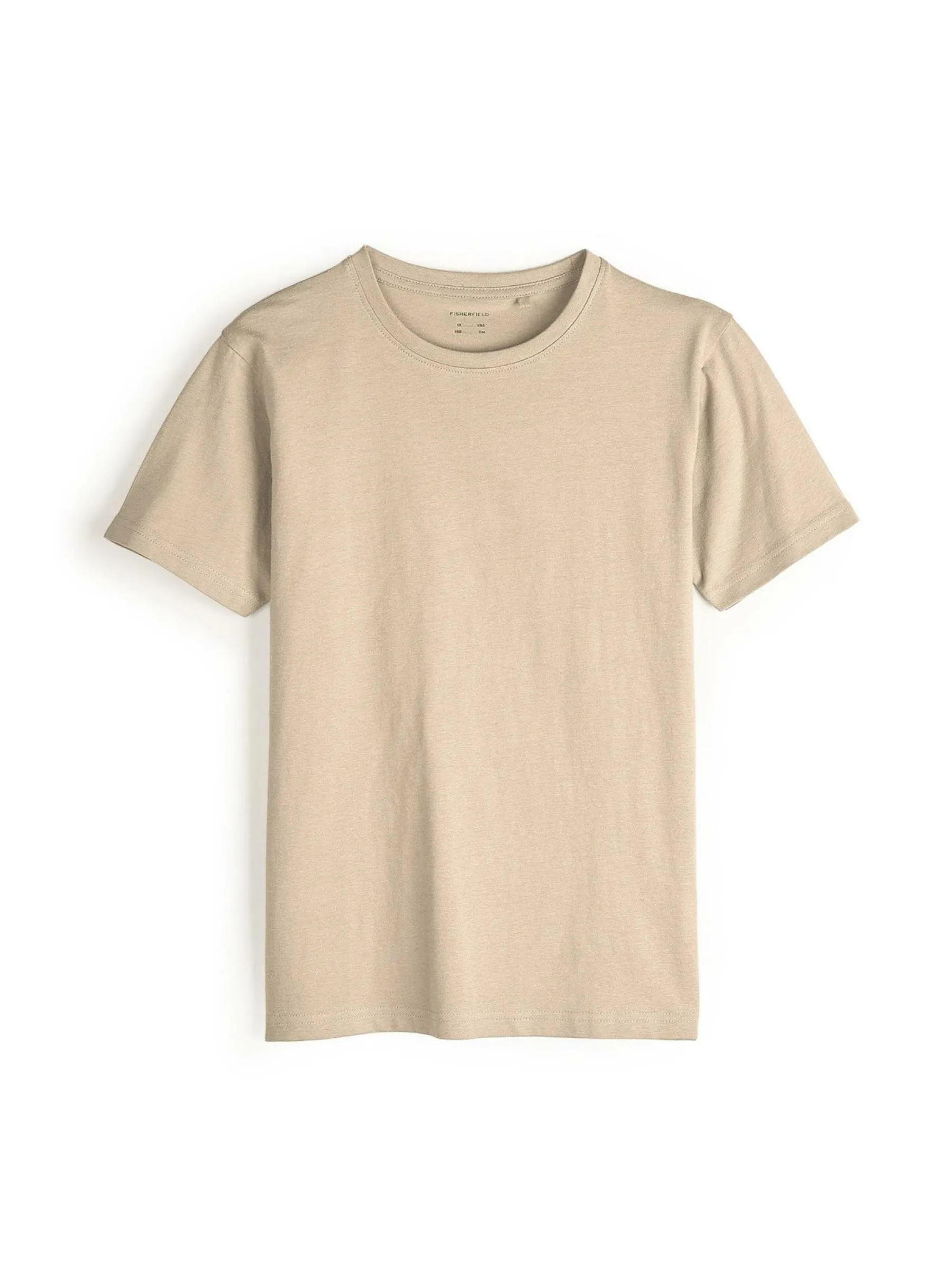 Kolor: beżowyKrój: regularTyp: koszulkaRekaw: krótki rękawDługość: krótkiPattern style: pojedynczy kolorDetal: n…