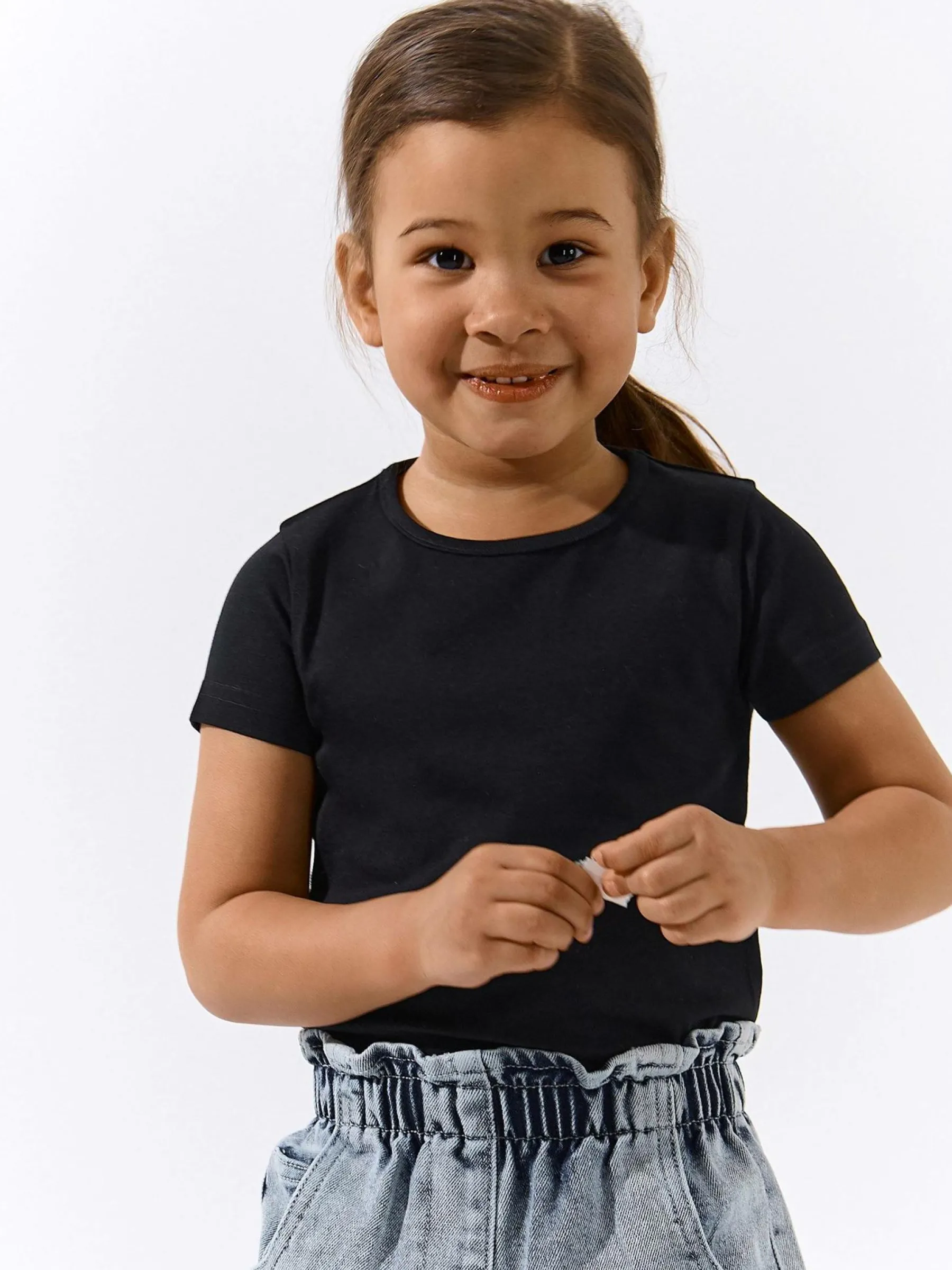 Kolor: czarnyKrój: podstawowyTyp: koszulkaRekaw: krótki rękawDługość: krótkiPattern style: pojedynczy kolorDetal:…