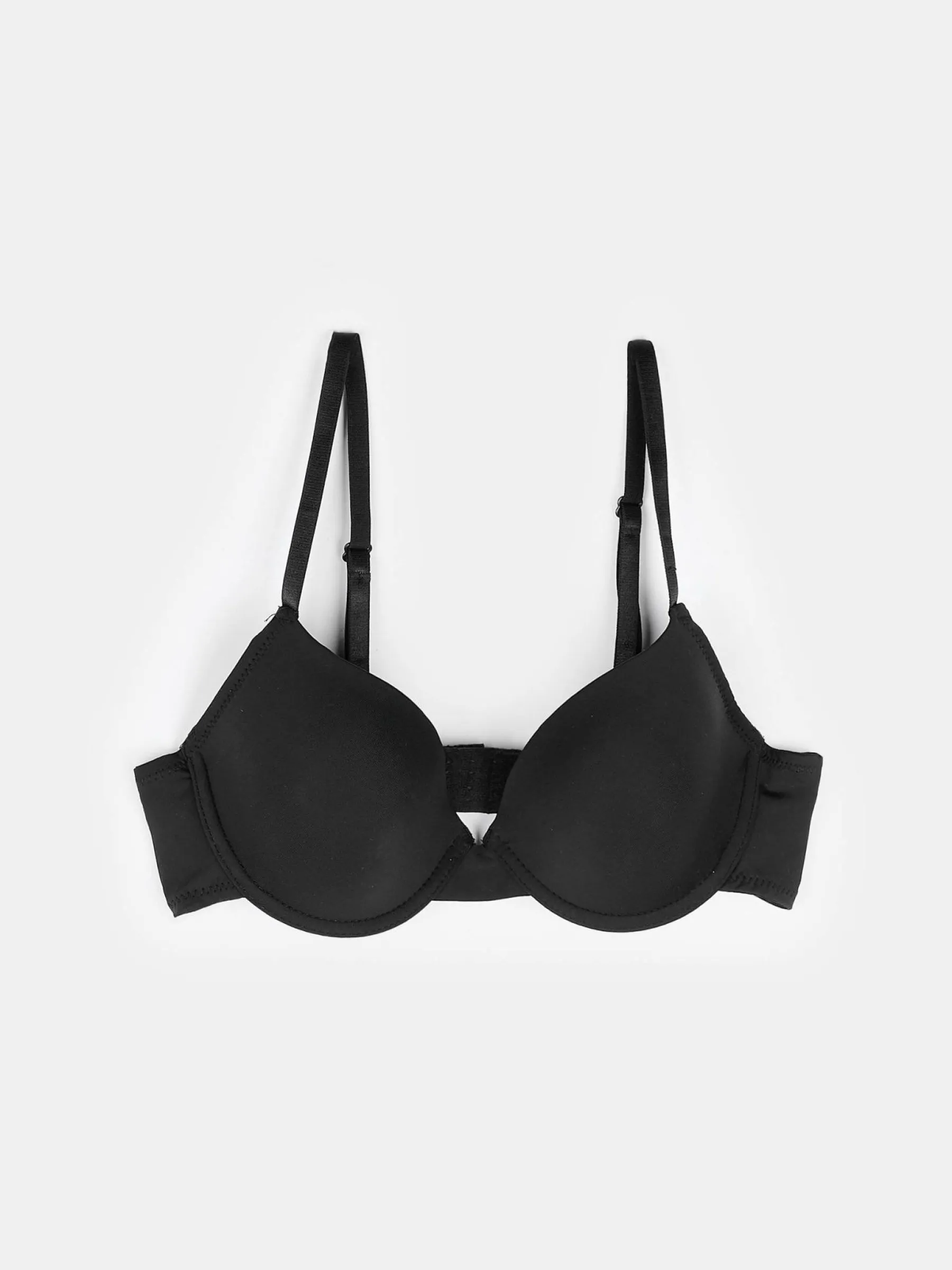 Kolor: czarnyKrój: plungeTyp: biustonoszPattern style: pojedynczy kolorDetal: wzmocnionyMateriał: syntetycznePłeć: k…