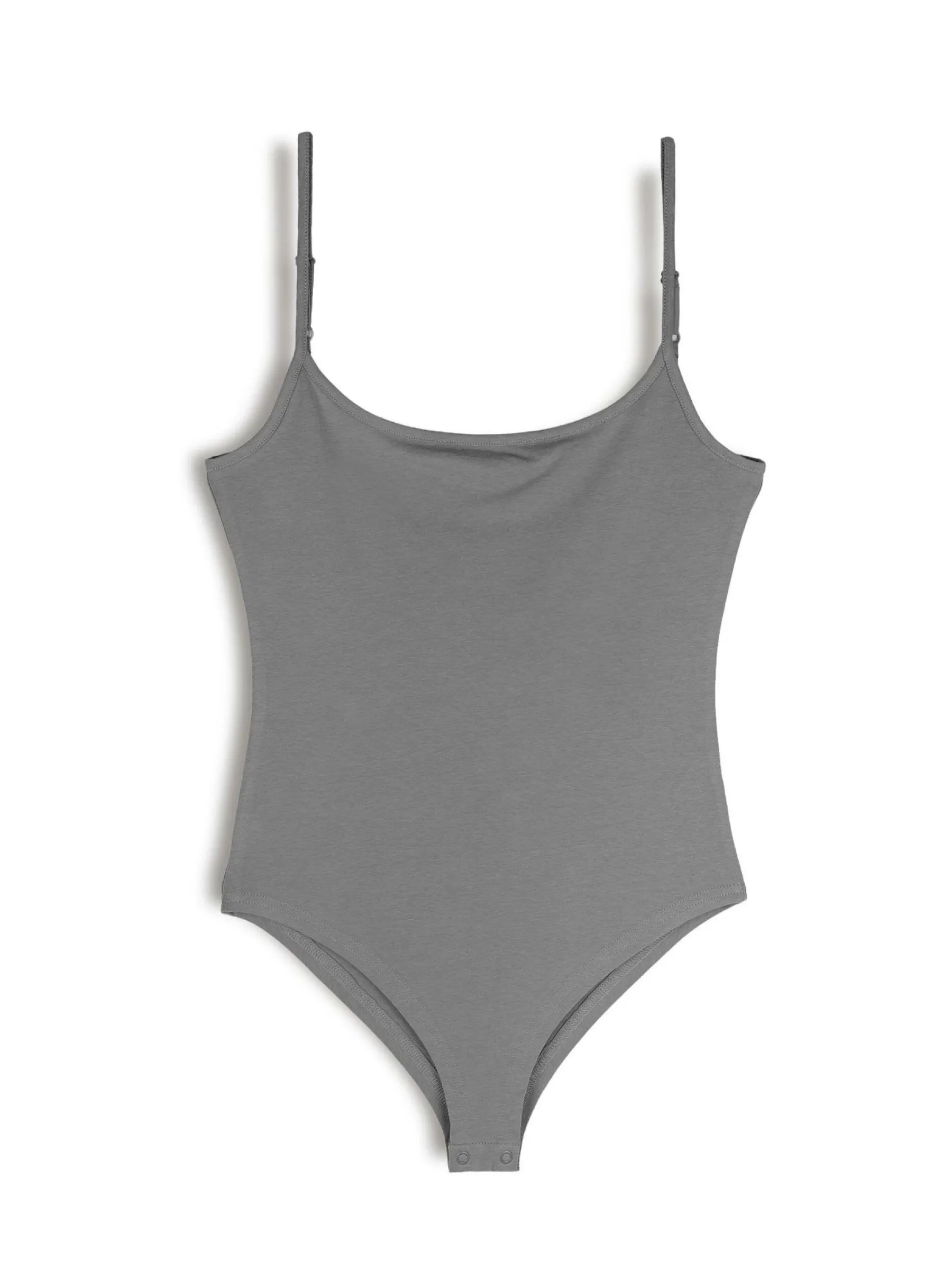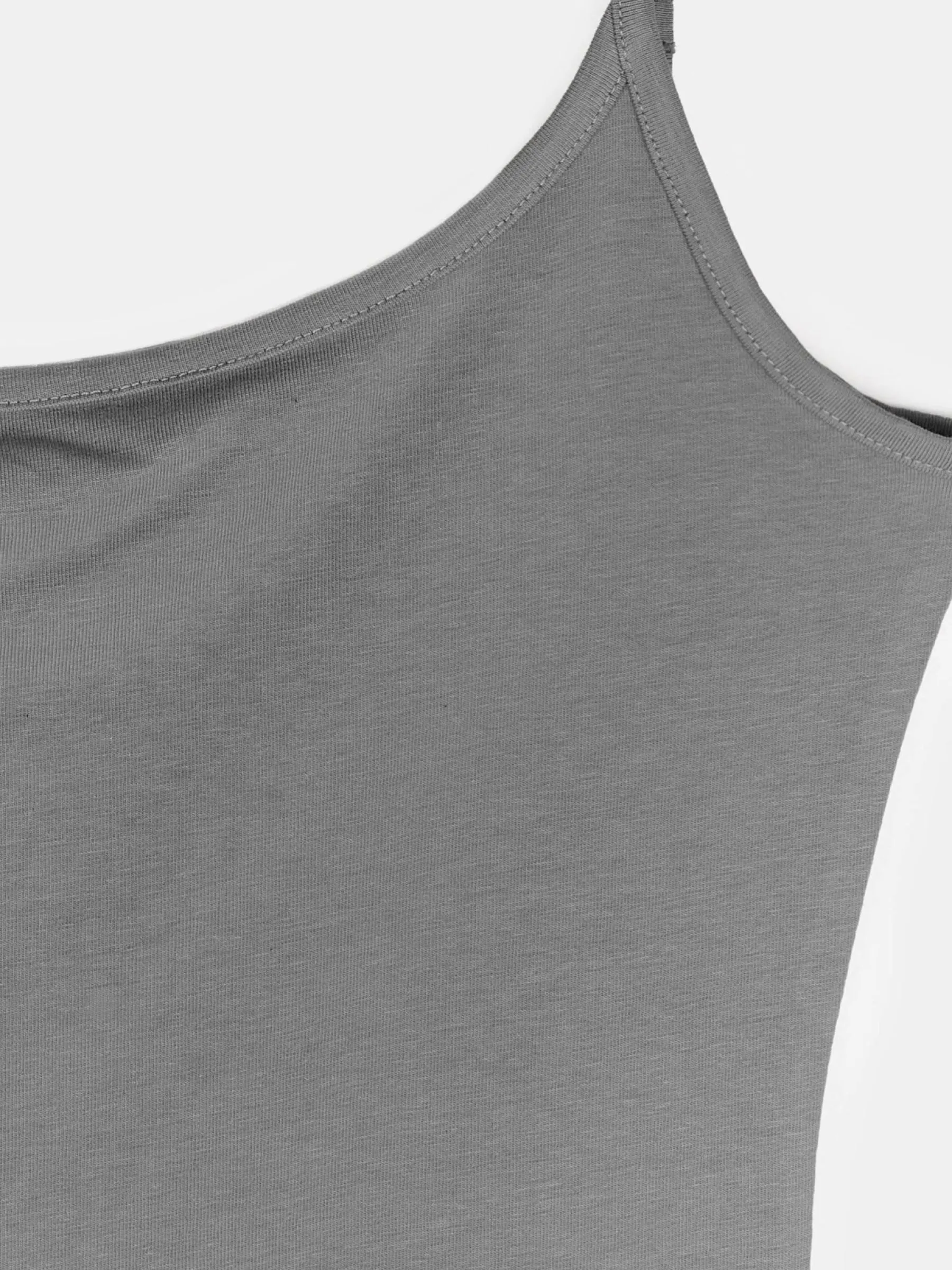 Kolor: szaryKrój: slimTyp: bodyRekaw: bez rękawówDługość: krótkiPattern style: pojedynczy kolorDetal: na snapy, n…