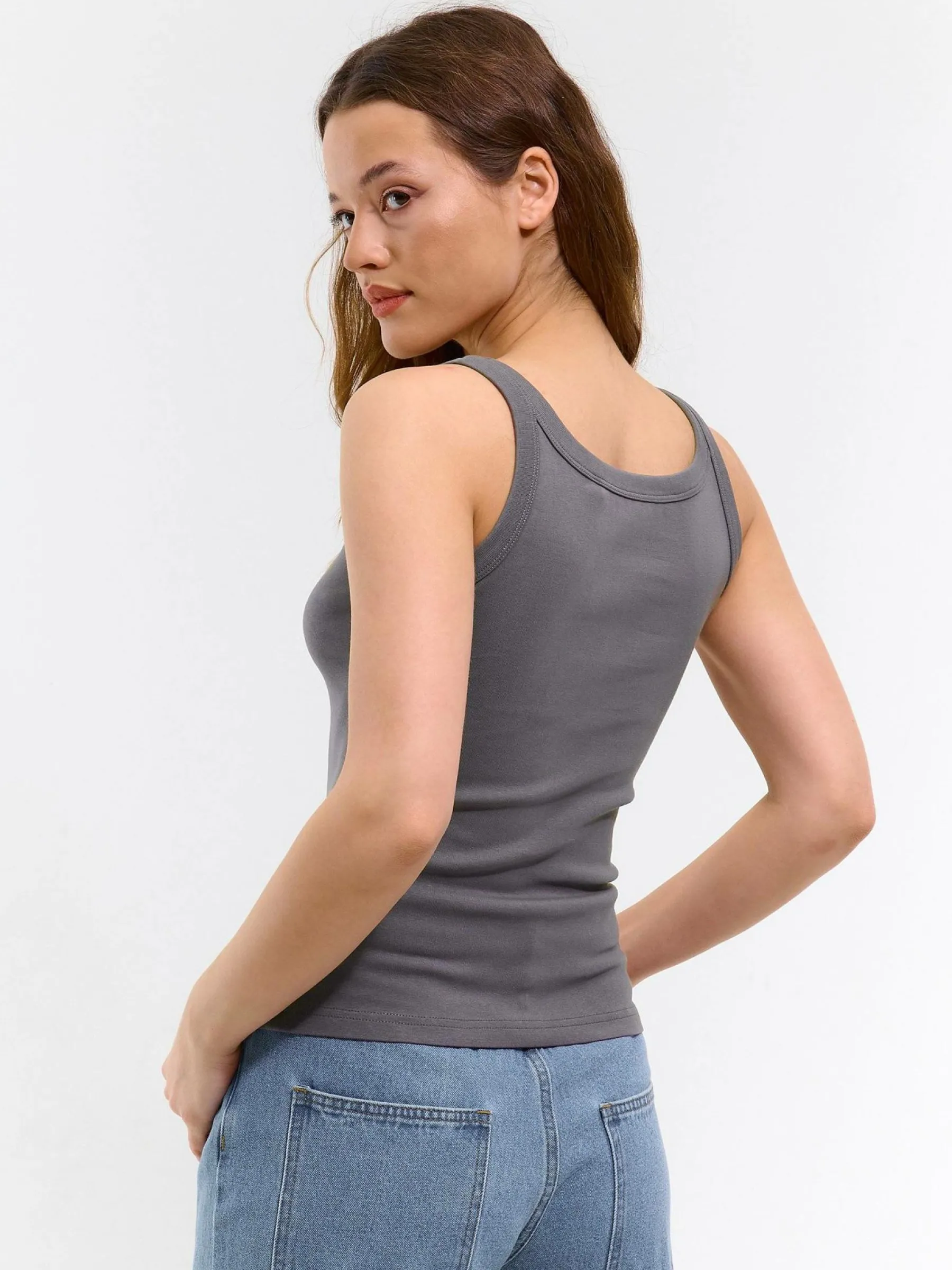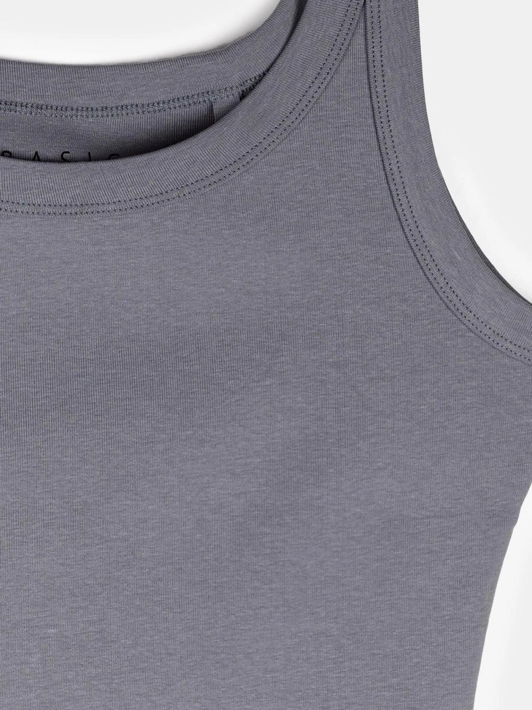 Kolor: szaryKrój: regularTyp: podkoszulekRekaw: bez rękawówDługość: krótkiPattern style: pojedynczy kolorDetal: n…