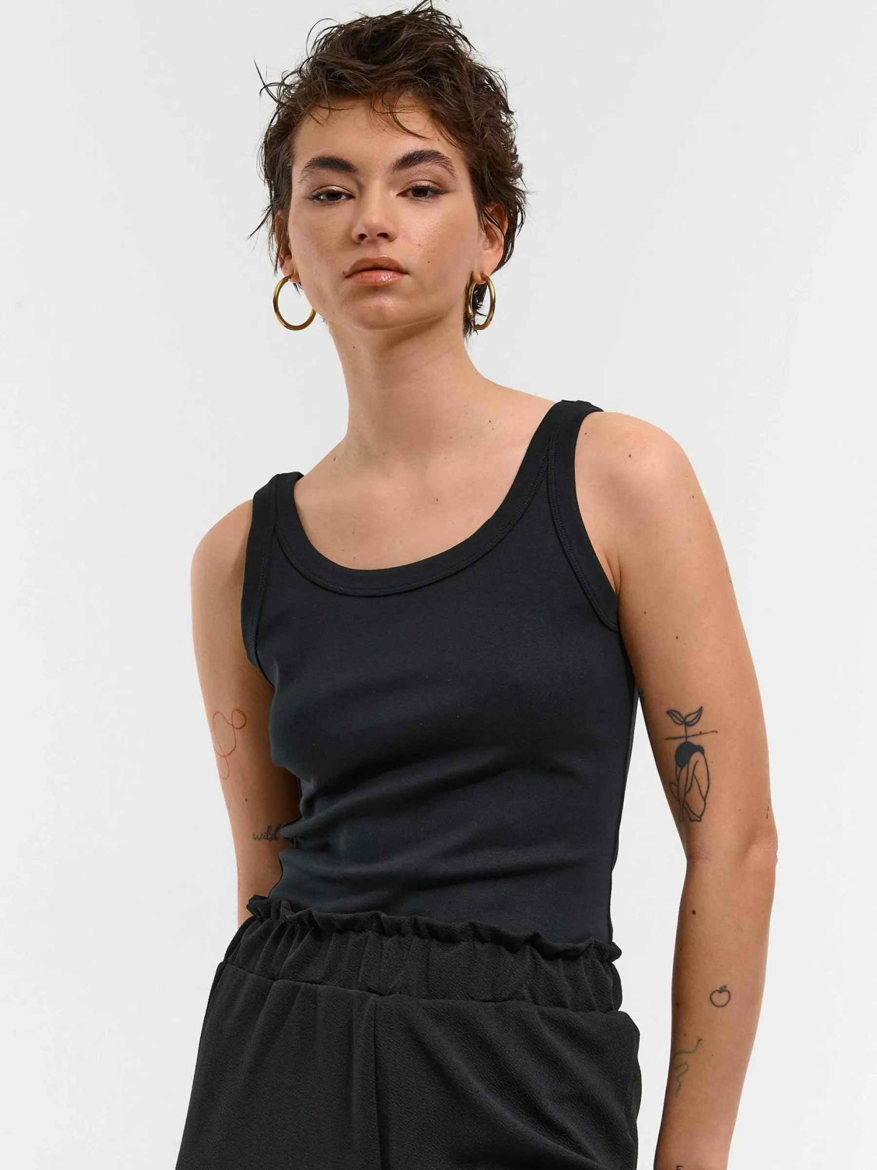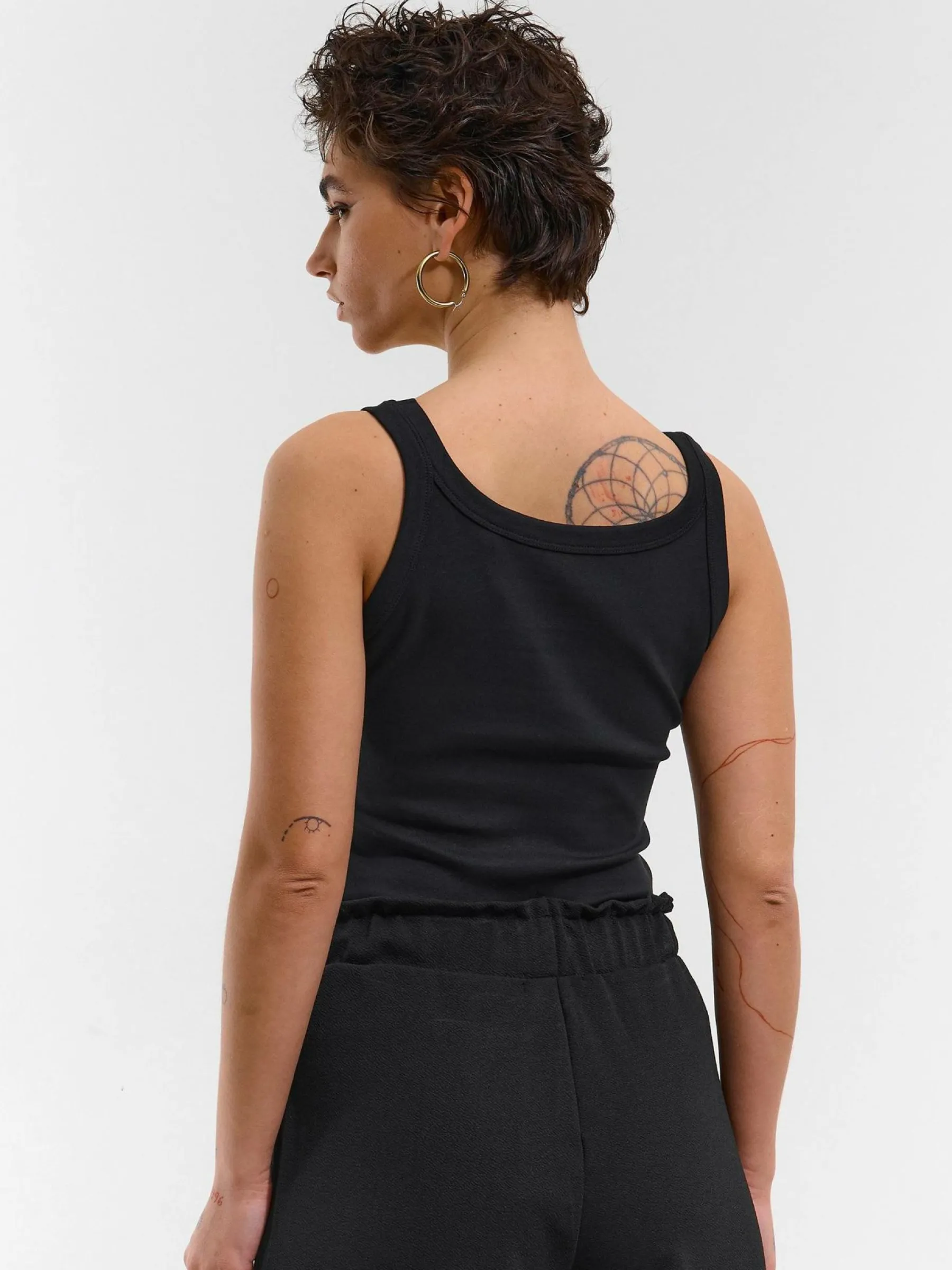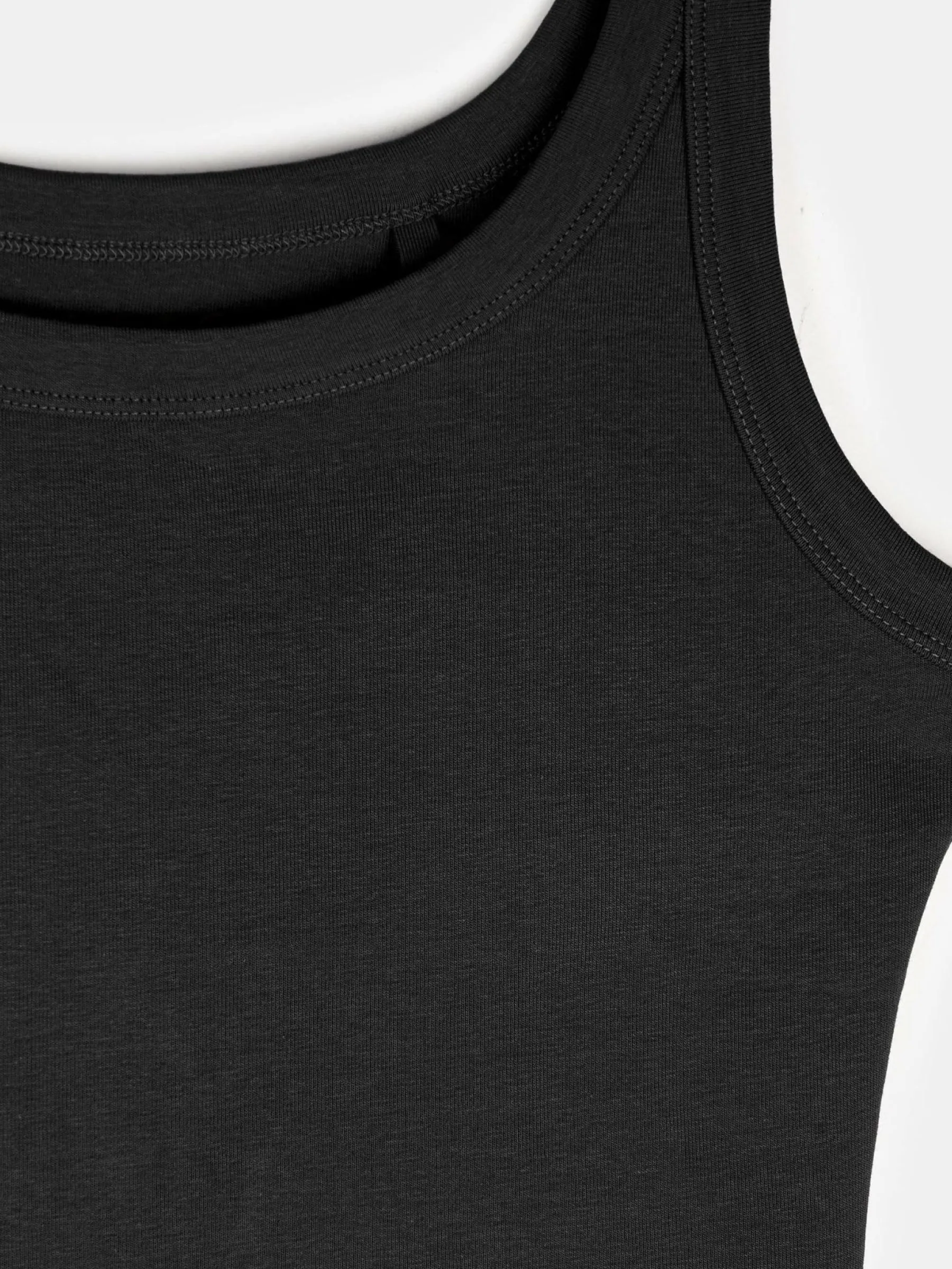 Kolor: czarnyKrój: regularTyp: podkoszulekRekaw: bez rękawówDługość: krótkiPattern style: pojedynczy kolorDetal: …