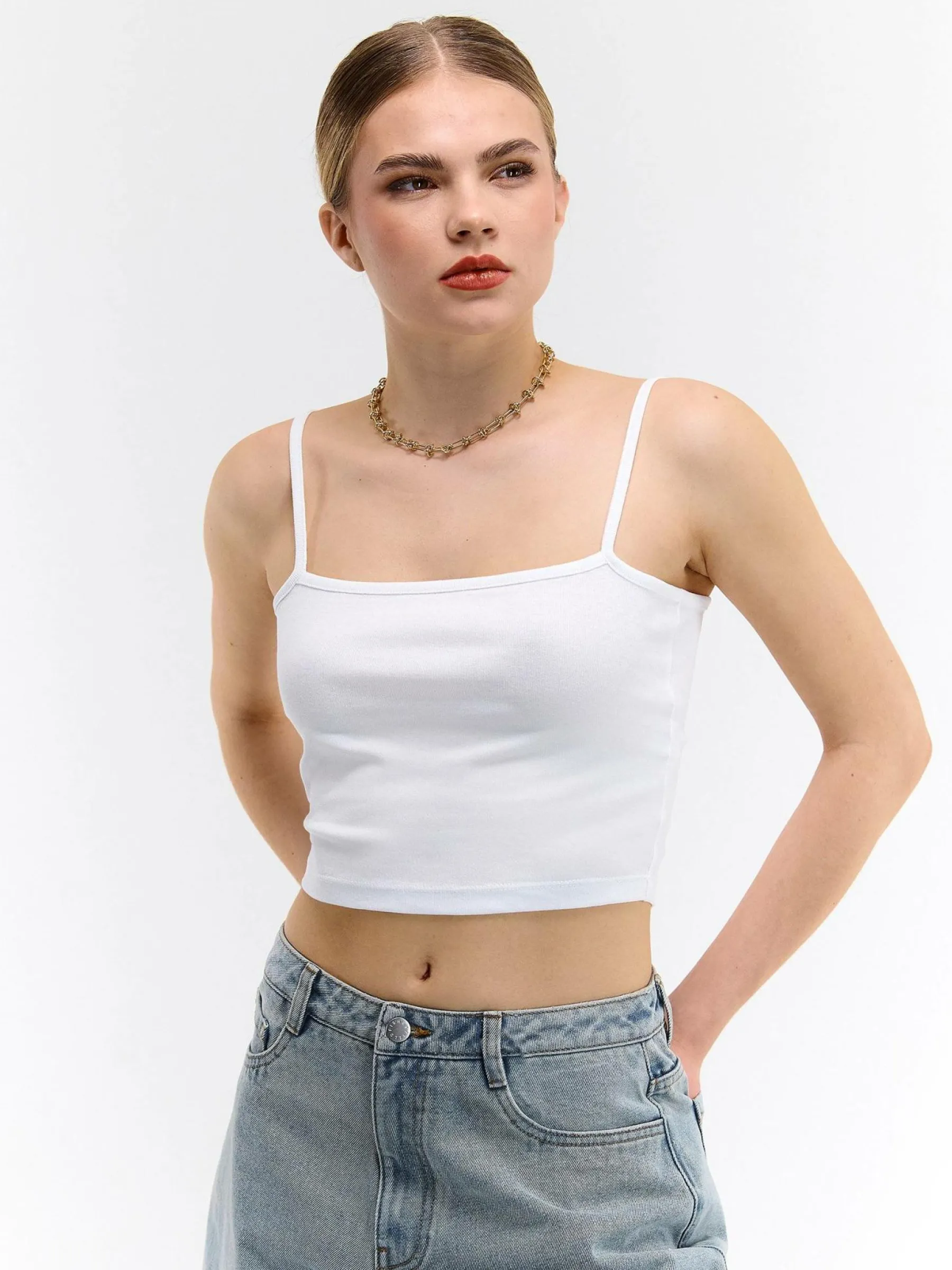 Kolor: białyKrój: regularTyp: podkoszulekRekaw: bez rękawówDługość: krótki topPattern style: pojedynczy kolorDet…