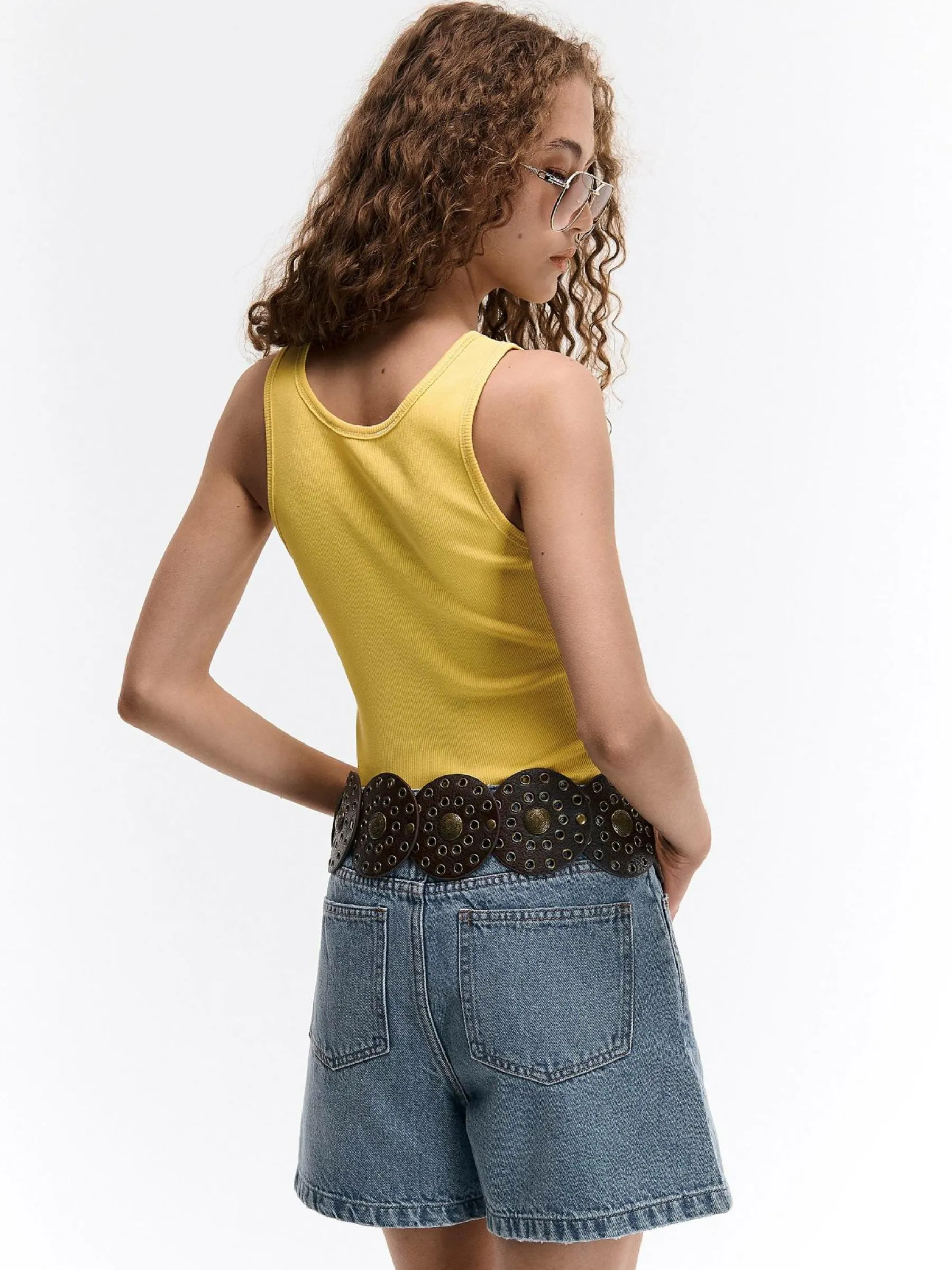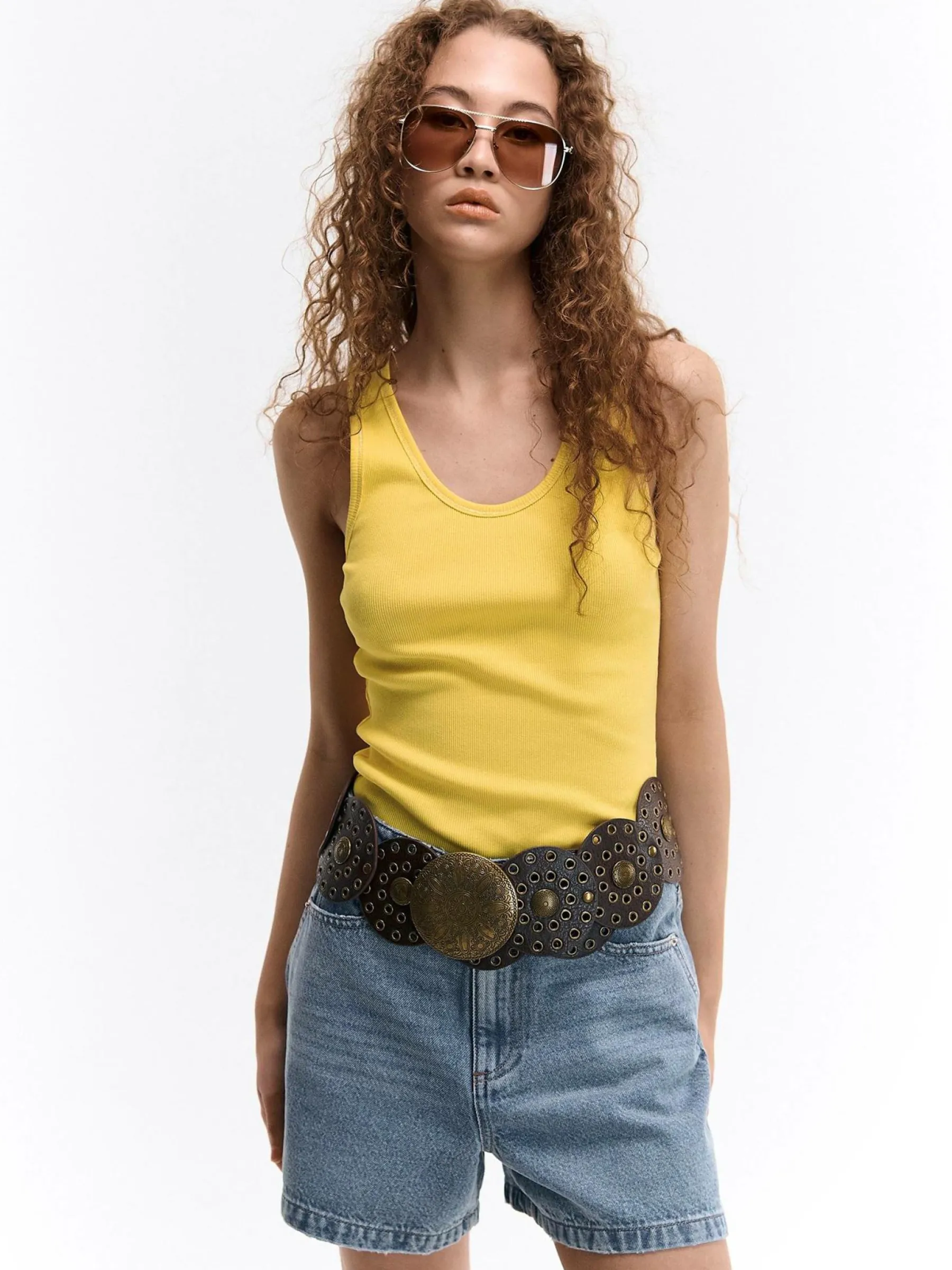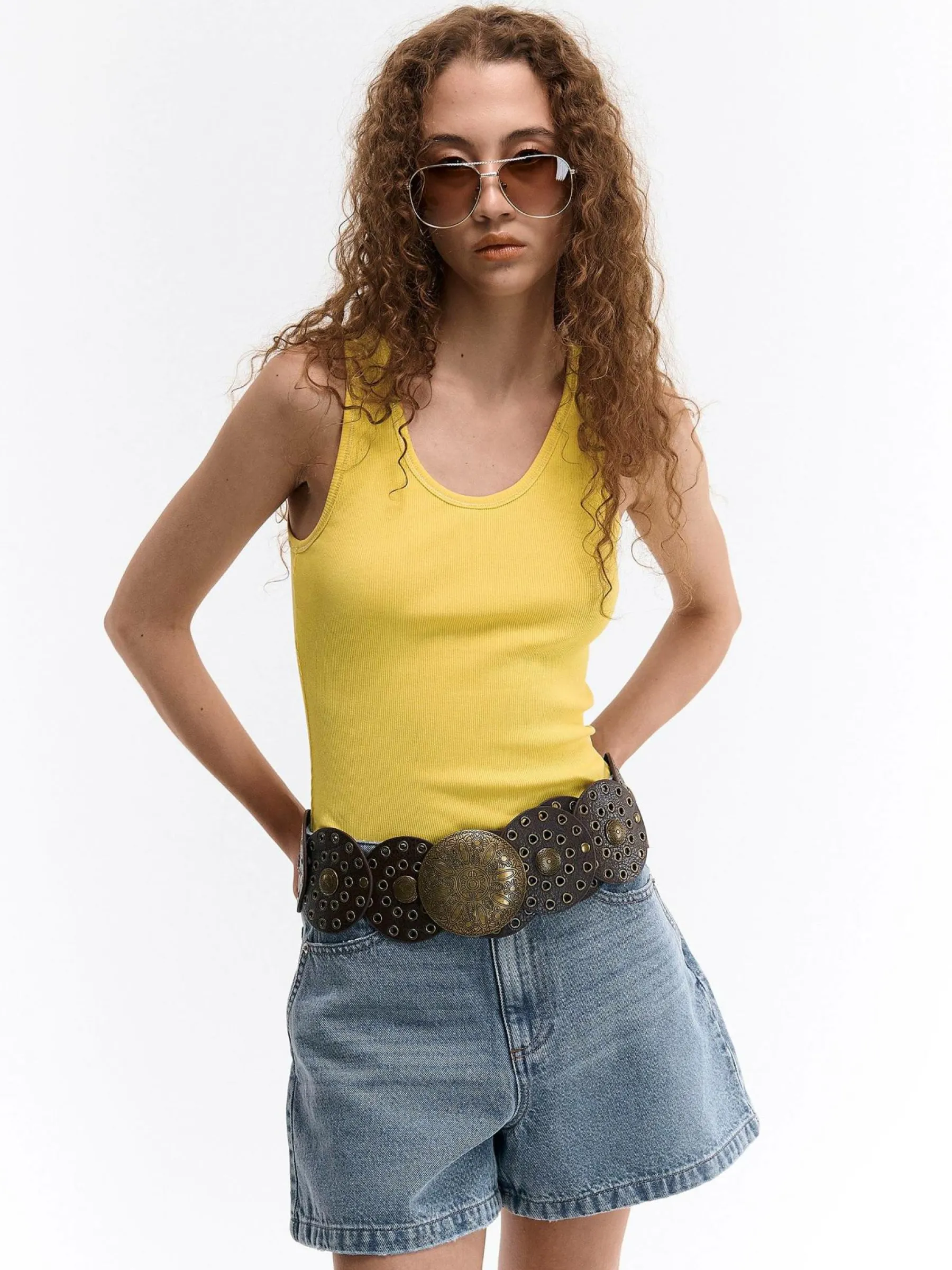 Kolor: żółtyKrój: podstawowyTyp: podkoszulekRekaw: bez rękawówDługość: krótkiPattern style: pojedynczy kolor, …