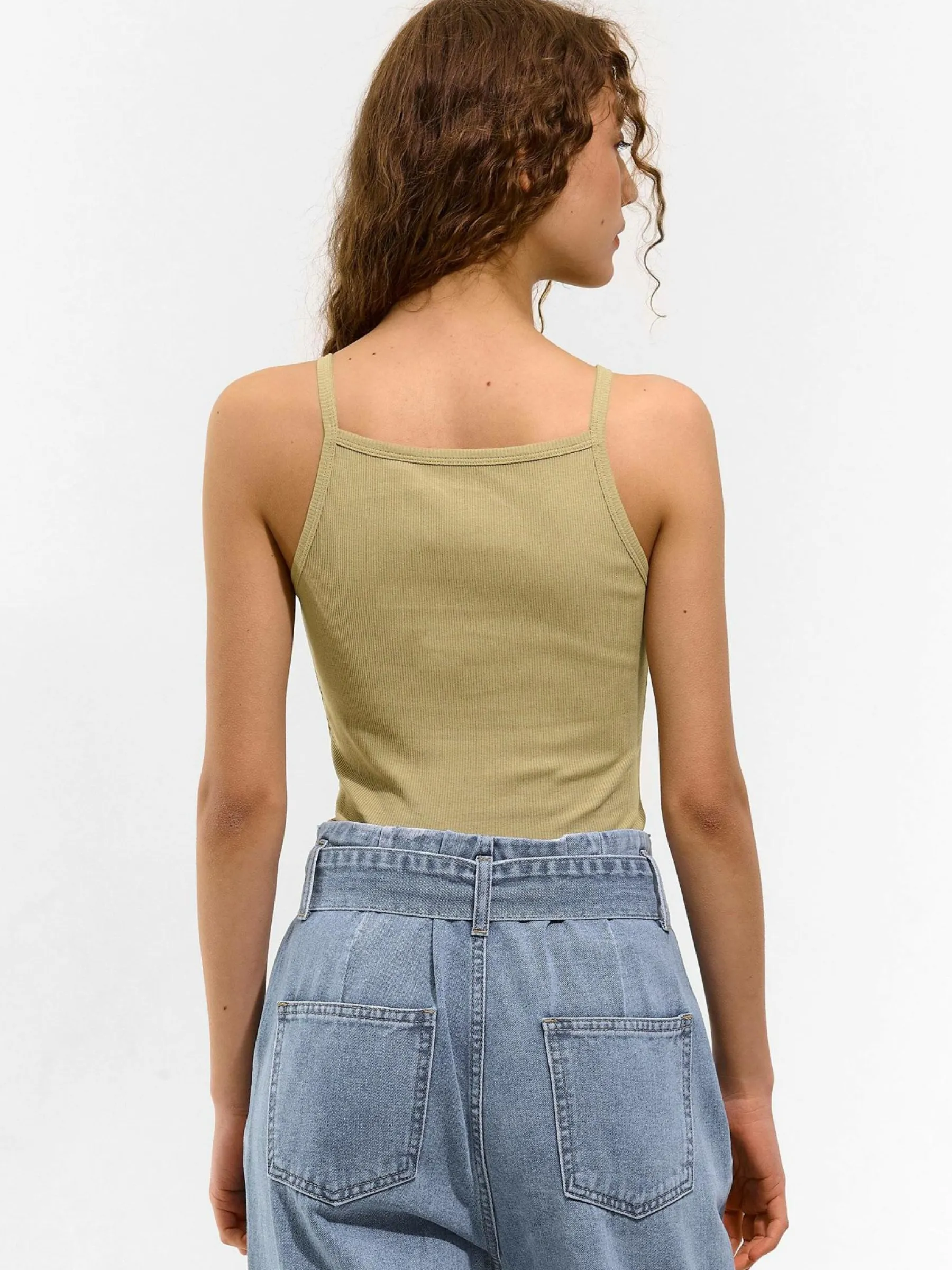 Kolor: beżowy, brązowyKrój: regularTyp: podkoszulekRekaw: bez rękawówDługość: krótkiPattern style: pojedynczy k…