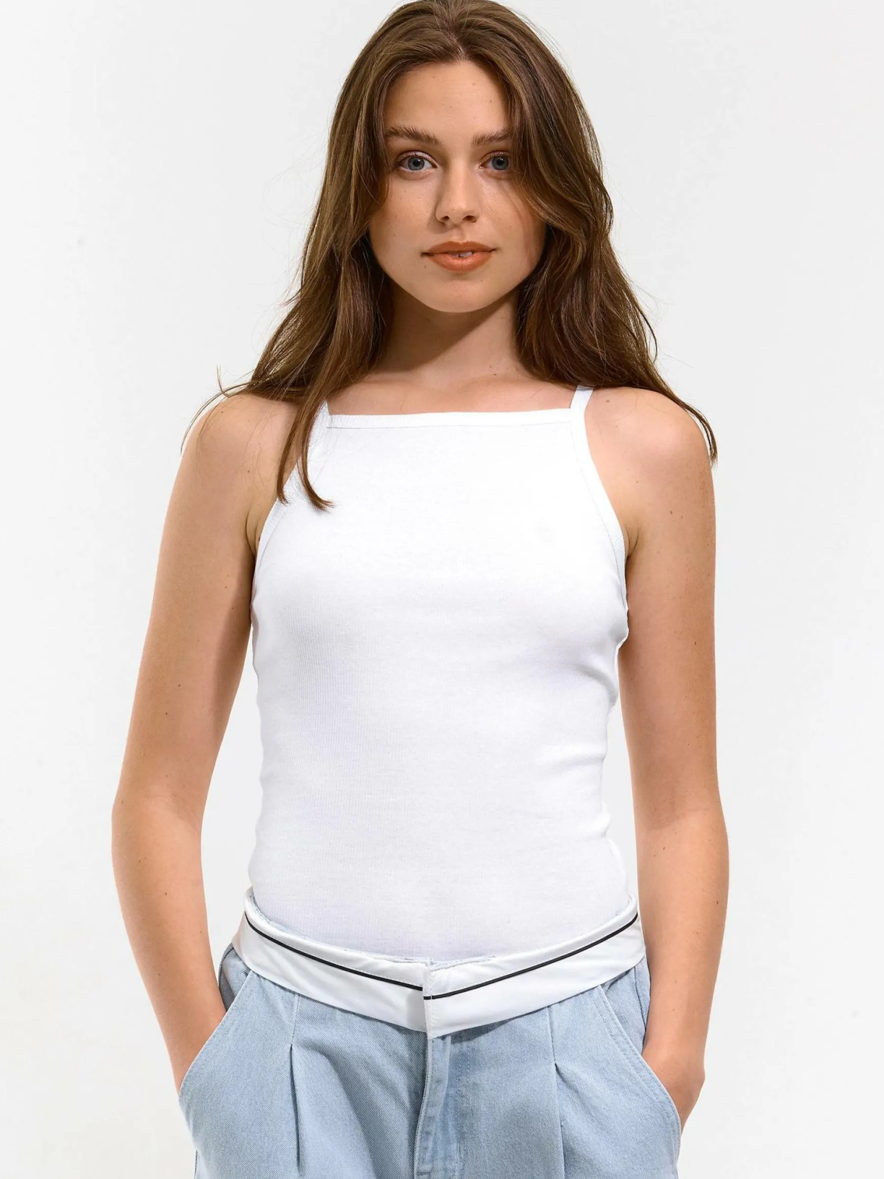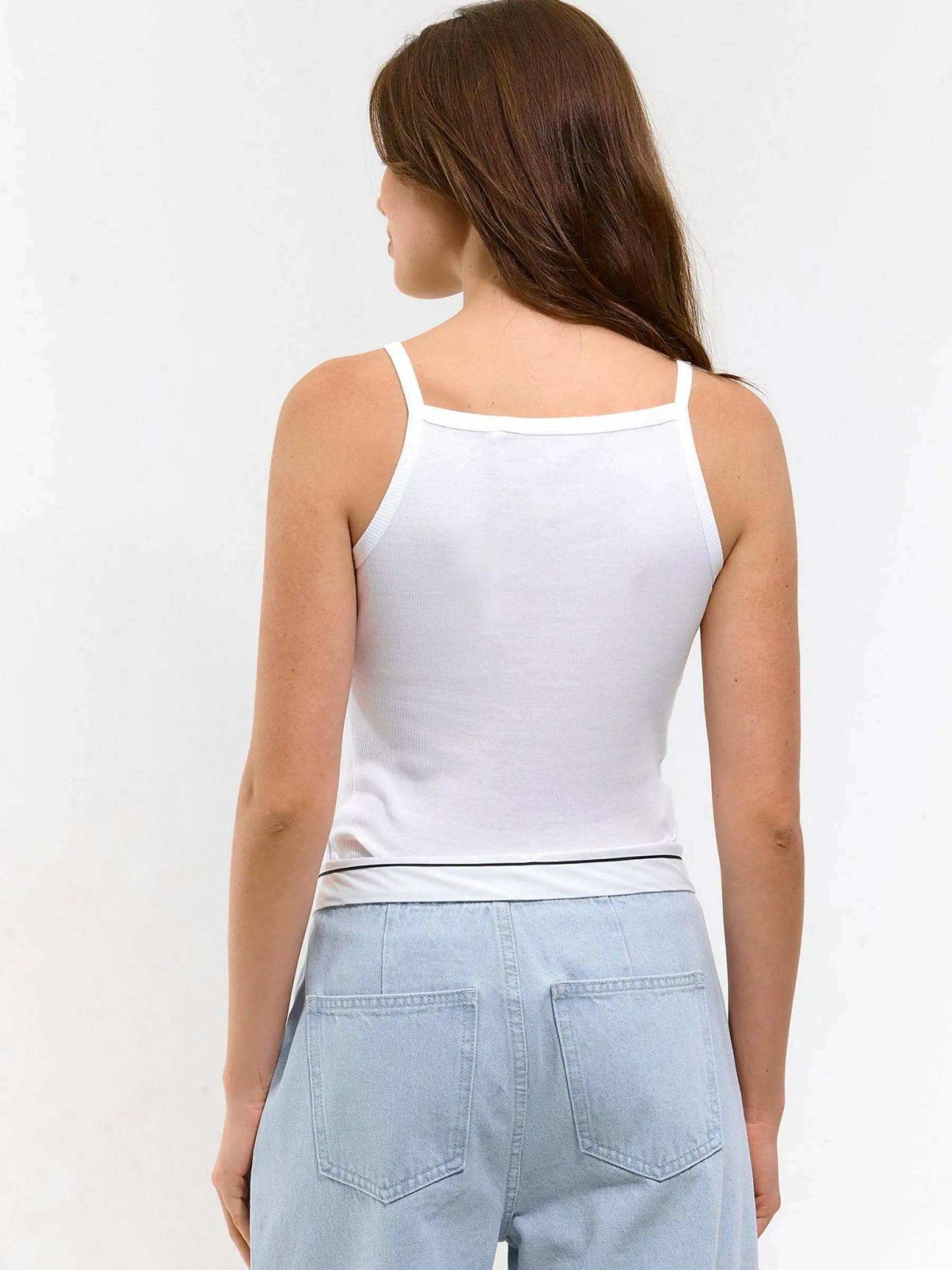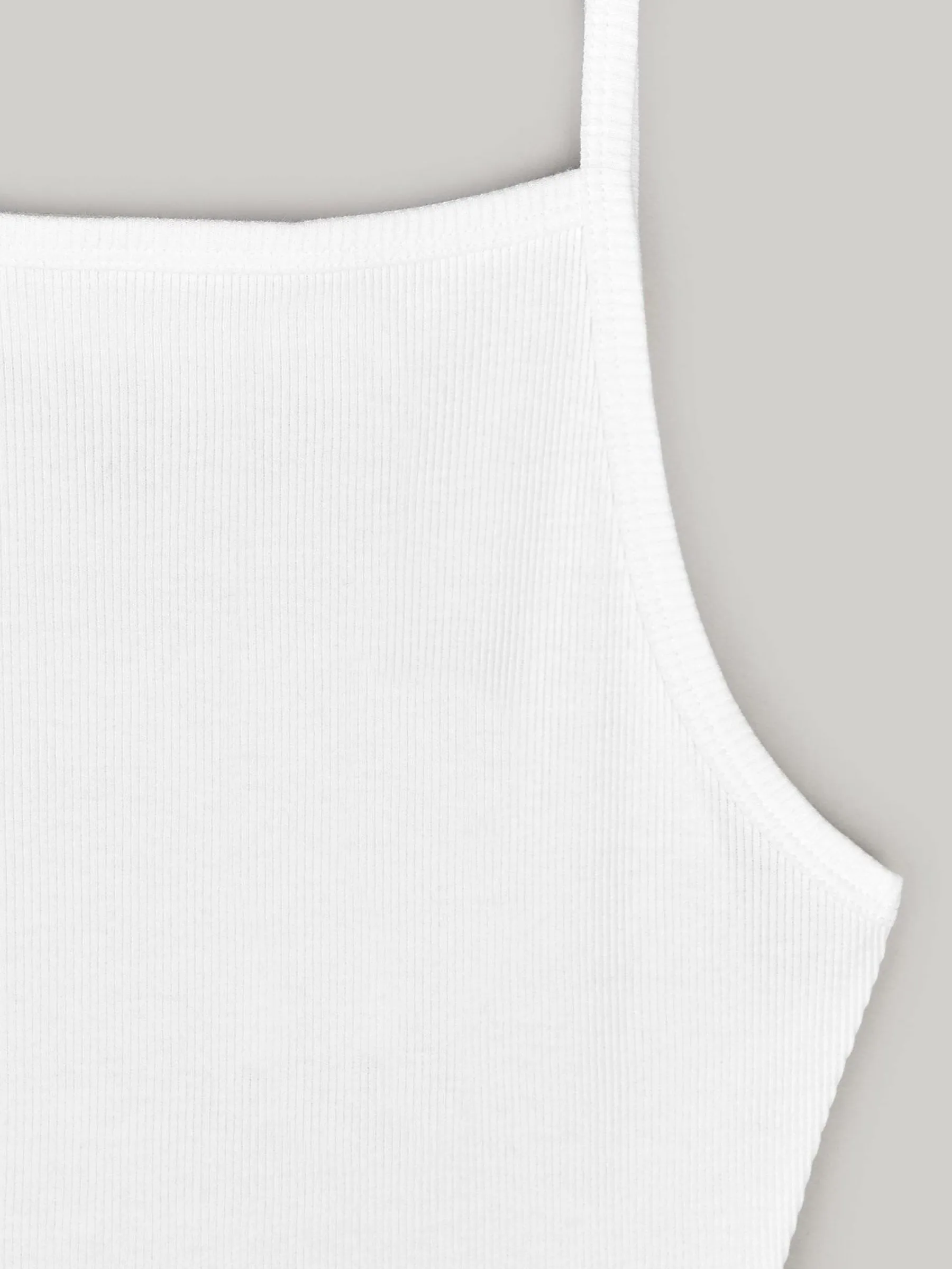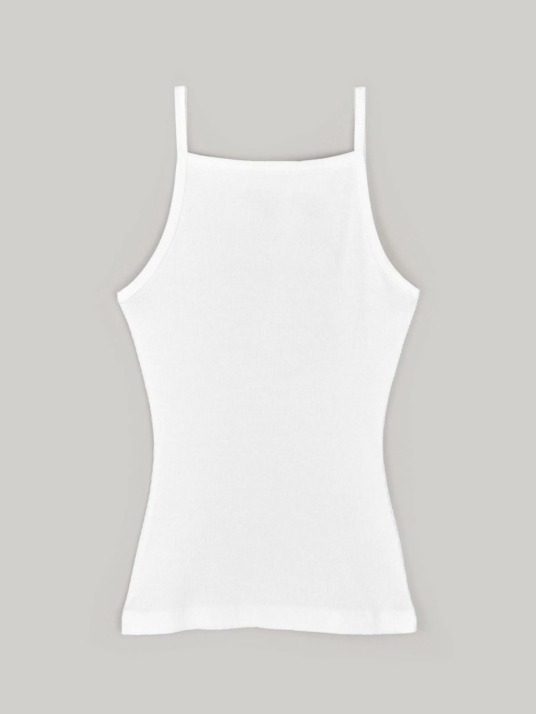Kolor: białyKrój: regularTyp: podkoszulekRekaw: bez rękawówDługość: krótkiPattern style: pojedynczy kolor, żebr…