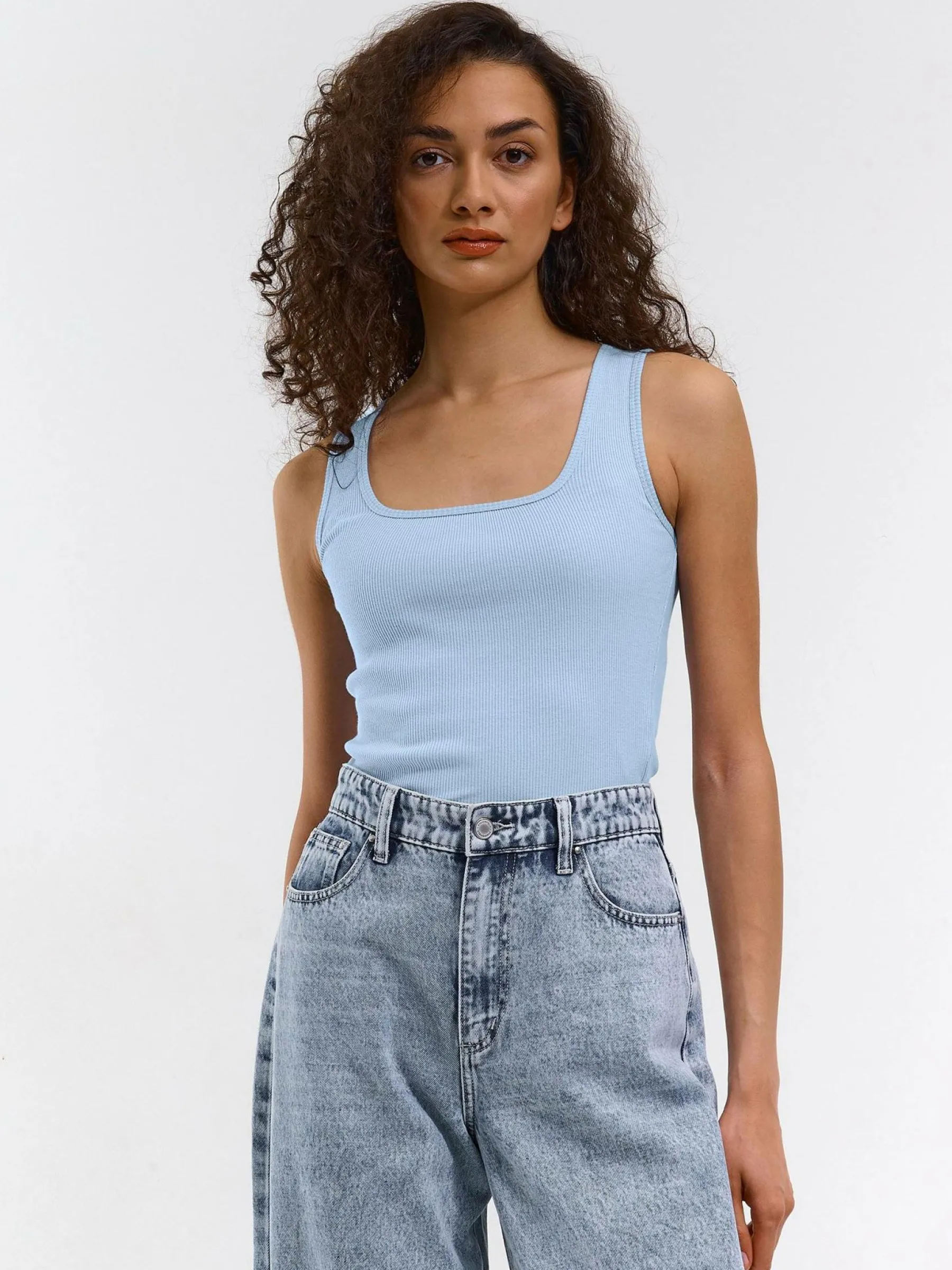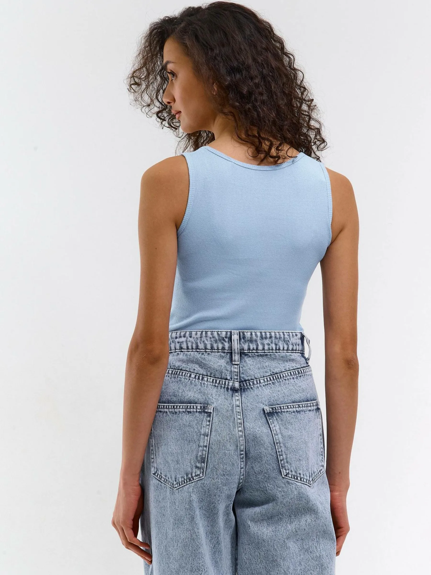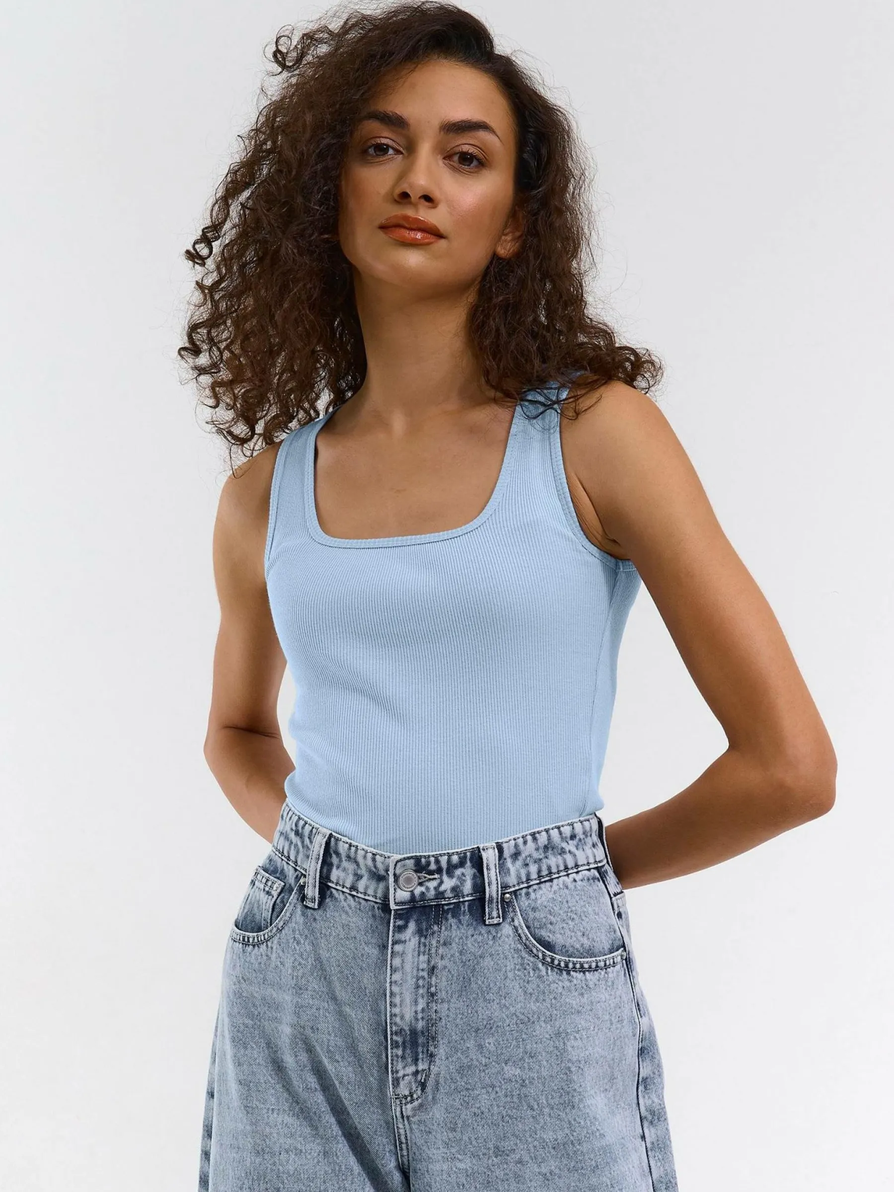 Kolor: niebieskiKrój: regularTyp: podkoszulekRekaw: bez rękawówDługość: krótkiPattern style: pojedynczy kolor, ż…
