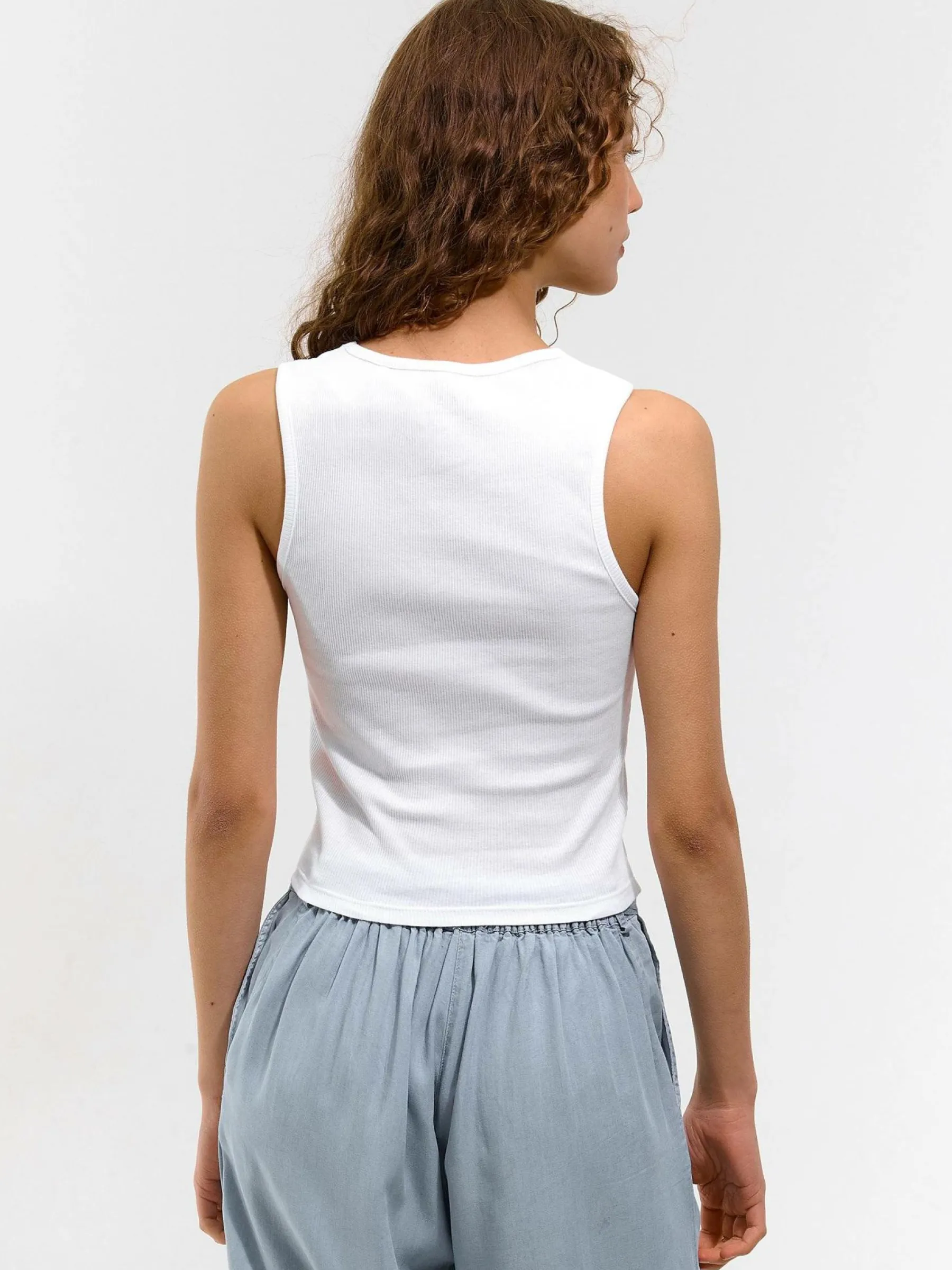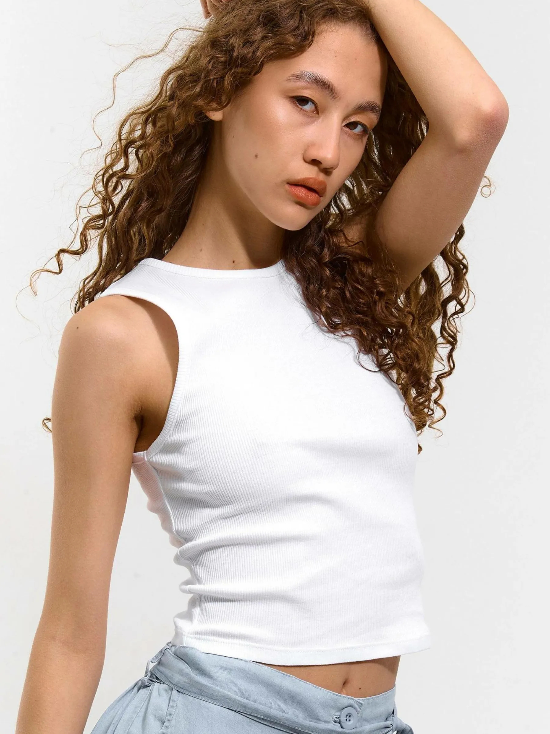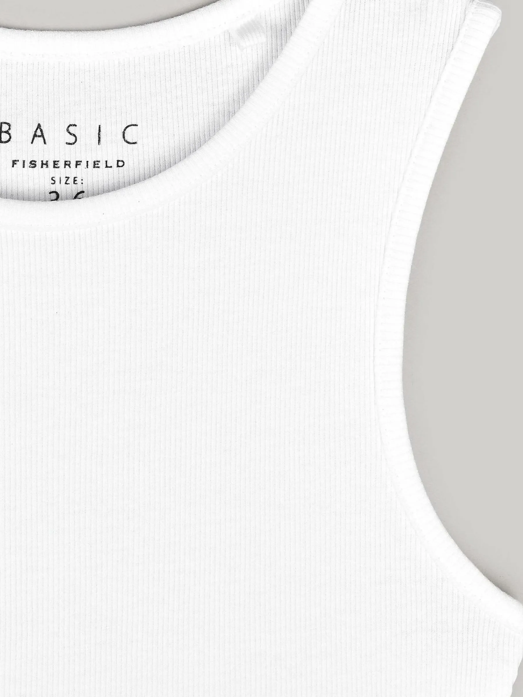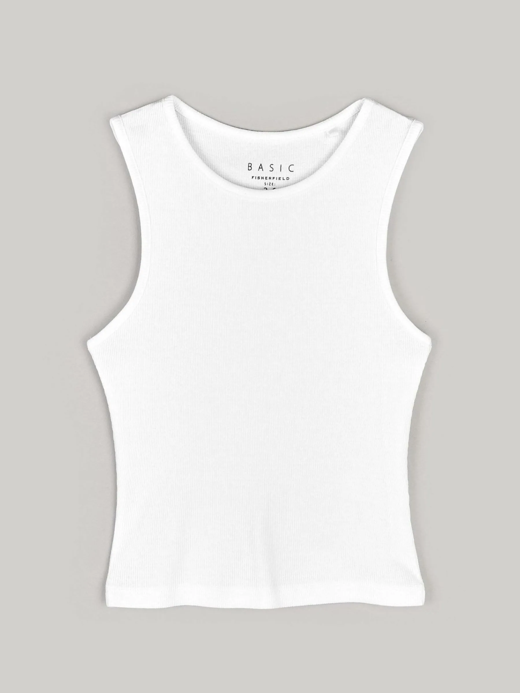 Kolor: białyKrój: regularTyp: podkoszulekRekaw: bez rękawówDługość: krótkiPattern style: pojedynczy kolor, żebr…