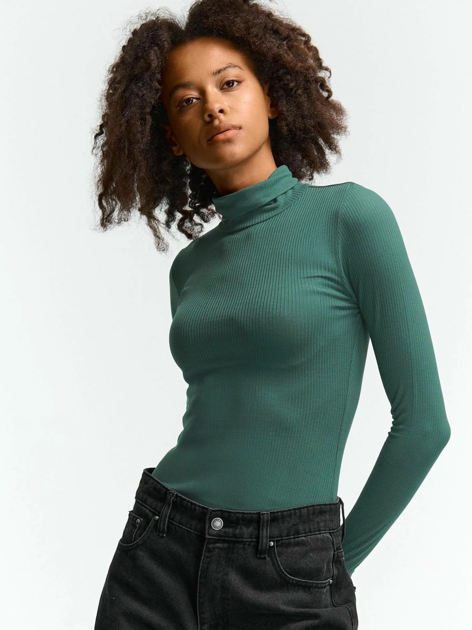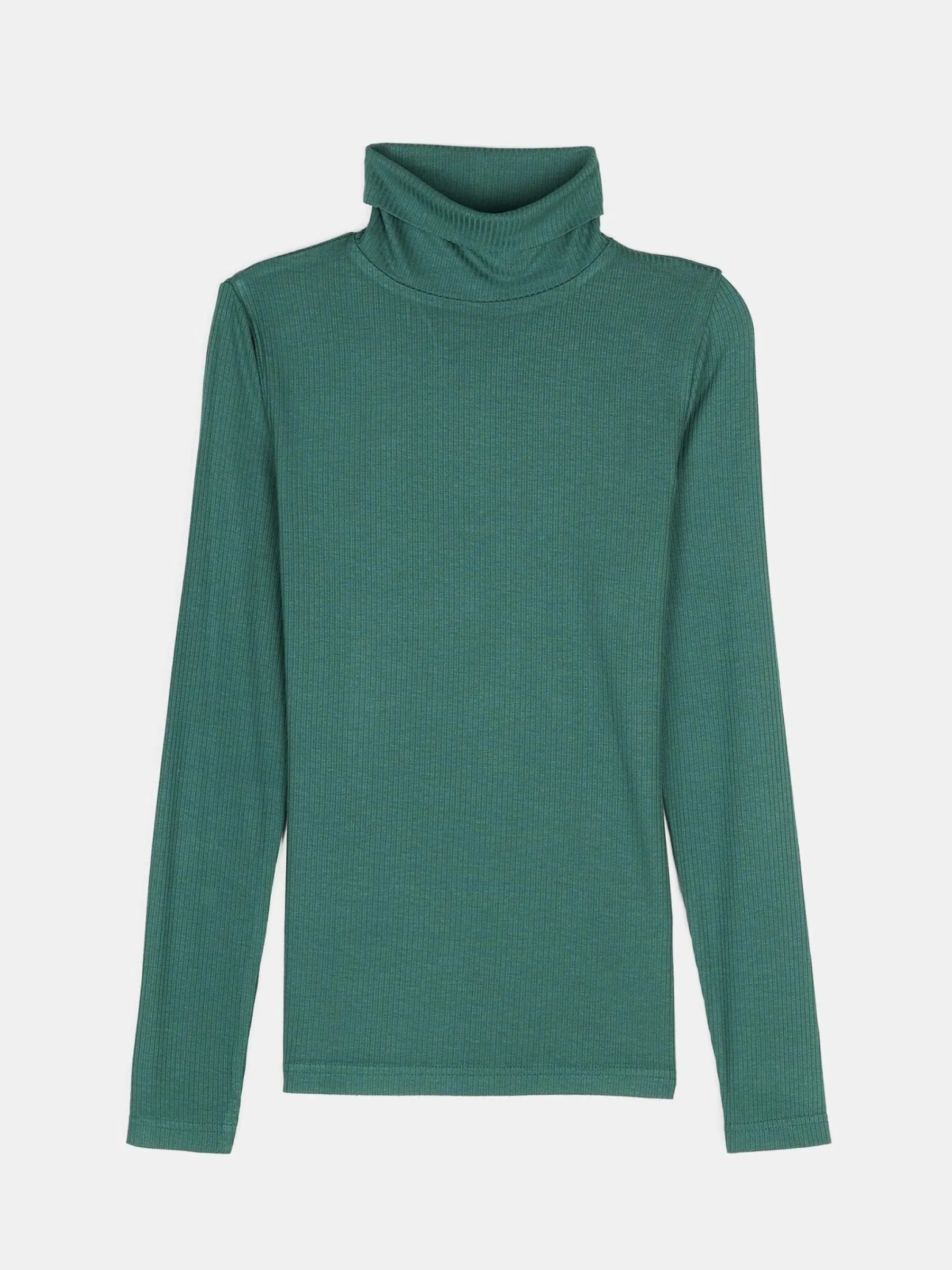Kolor: zielonyKrój: regularTyp: golfRekaw: długi rękawDługość: krótkiPattern style: pojedynczy kolor, żebrowanyD…