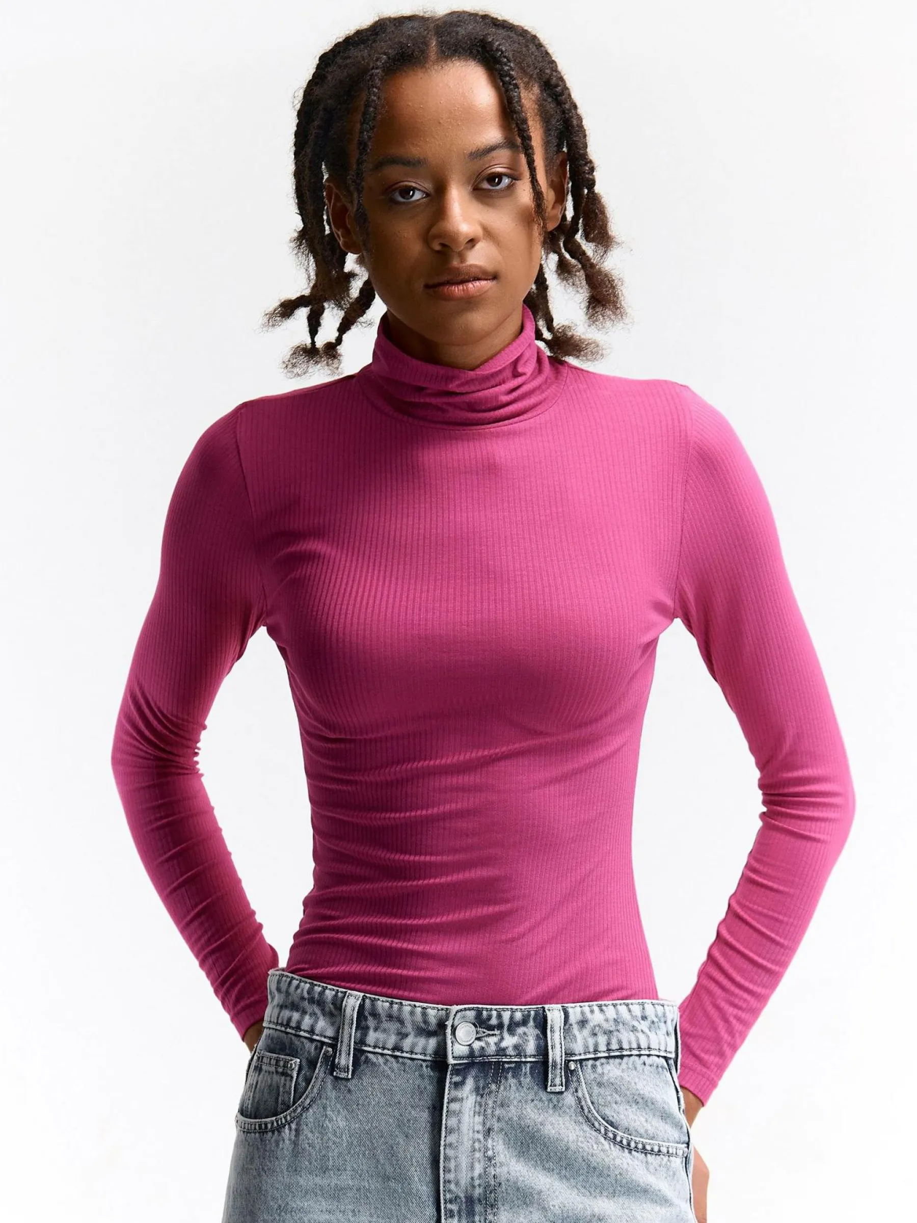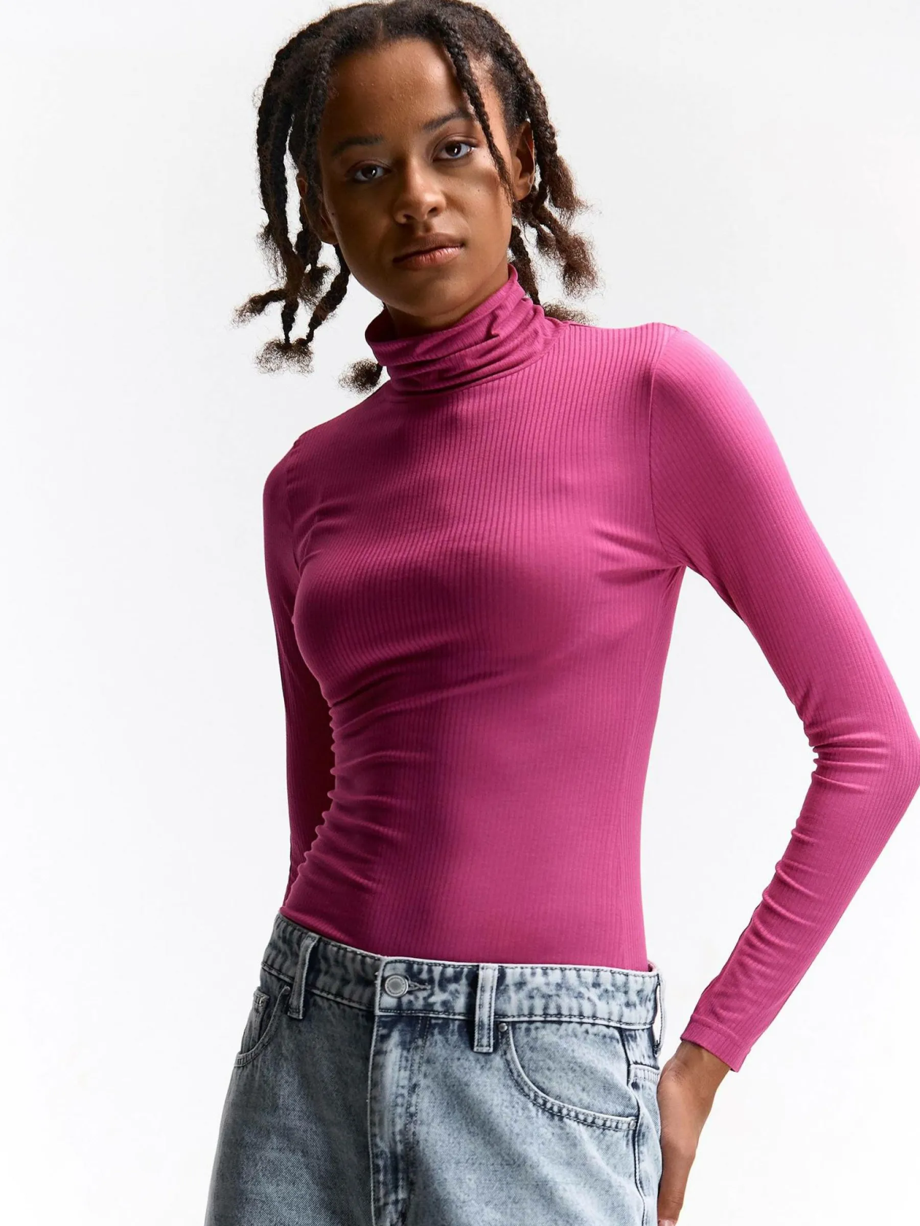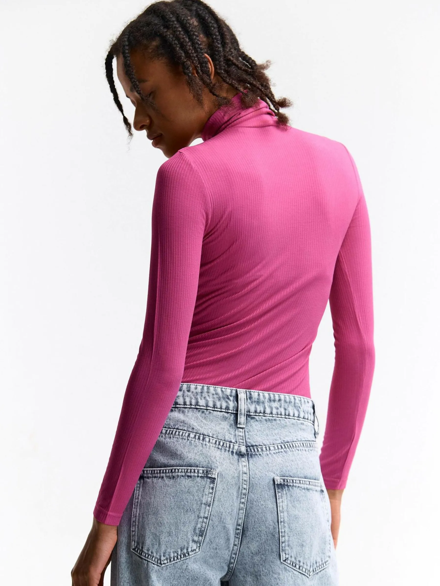 Kolor: różowyKrój: regularTyp: golfRekaw: długi rękawDługość: krótkiPattern style: pojedynczy kolor, żebrowany…