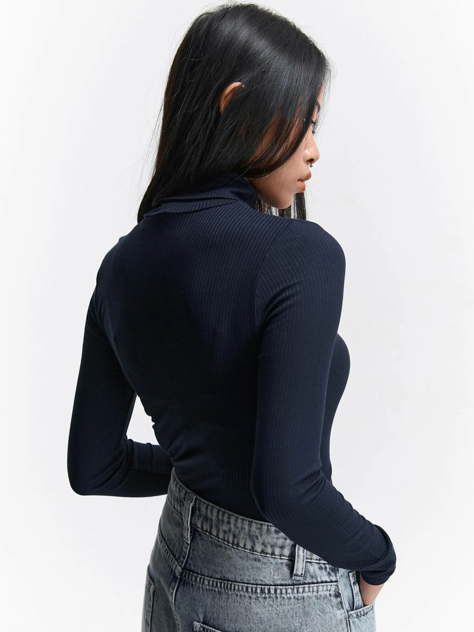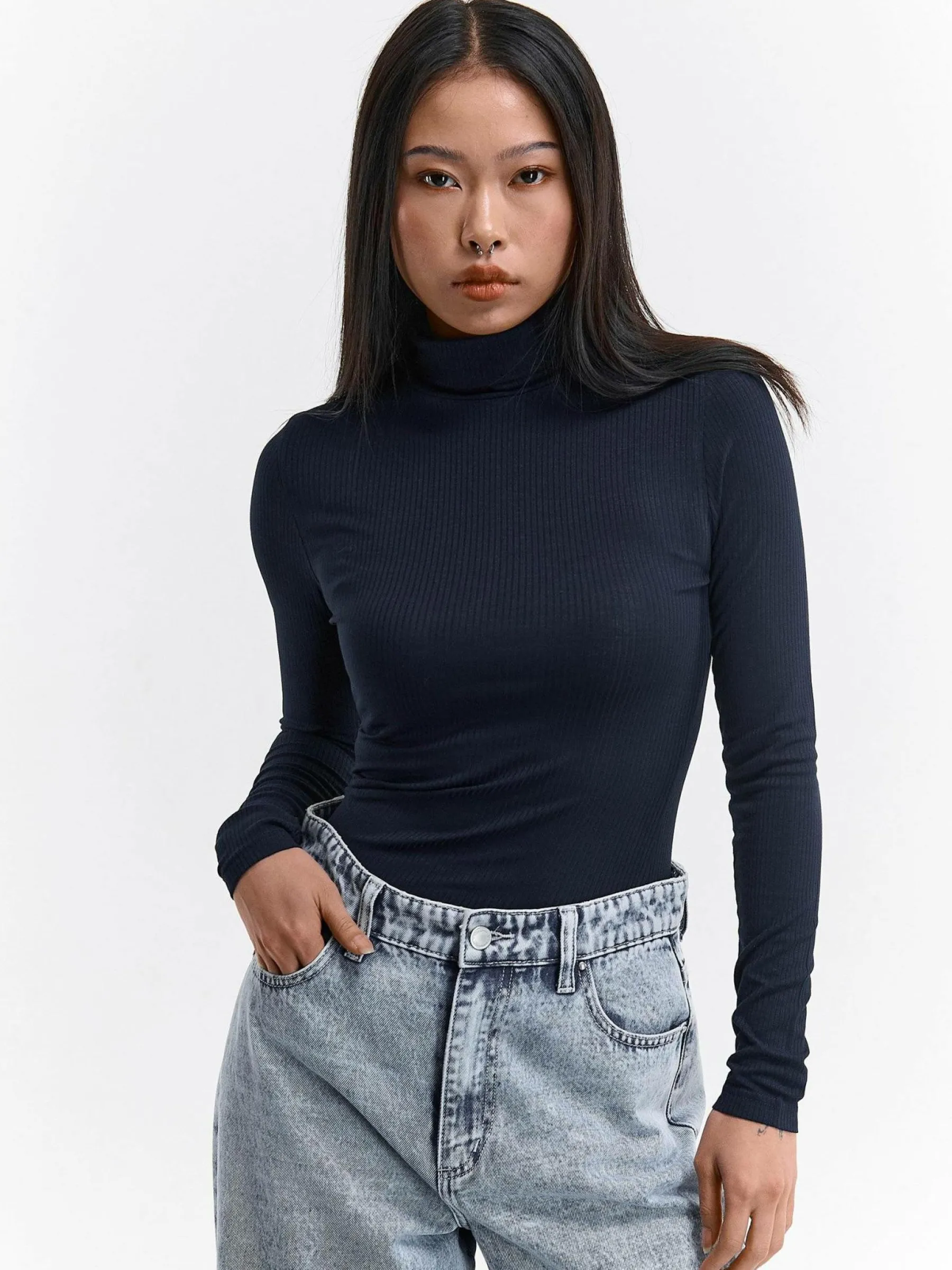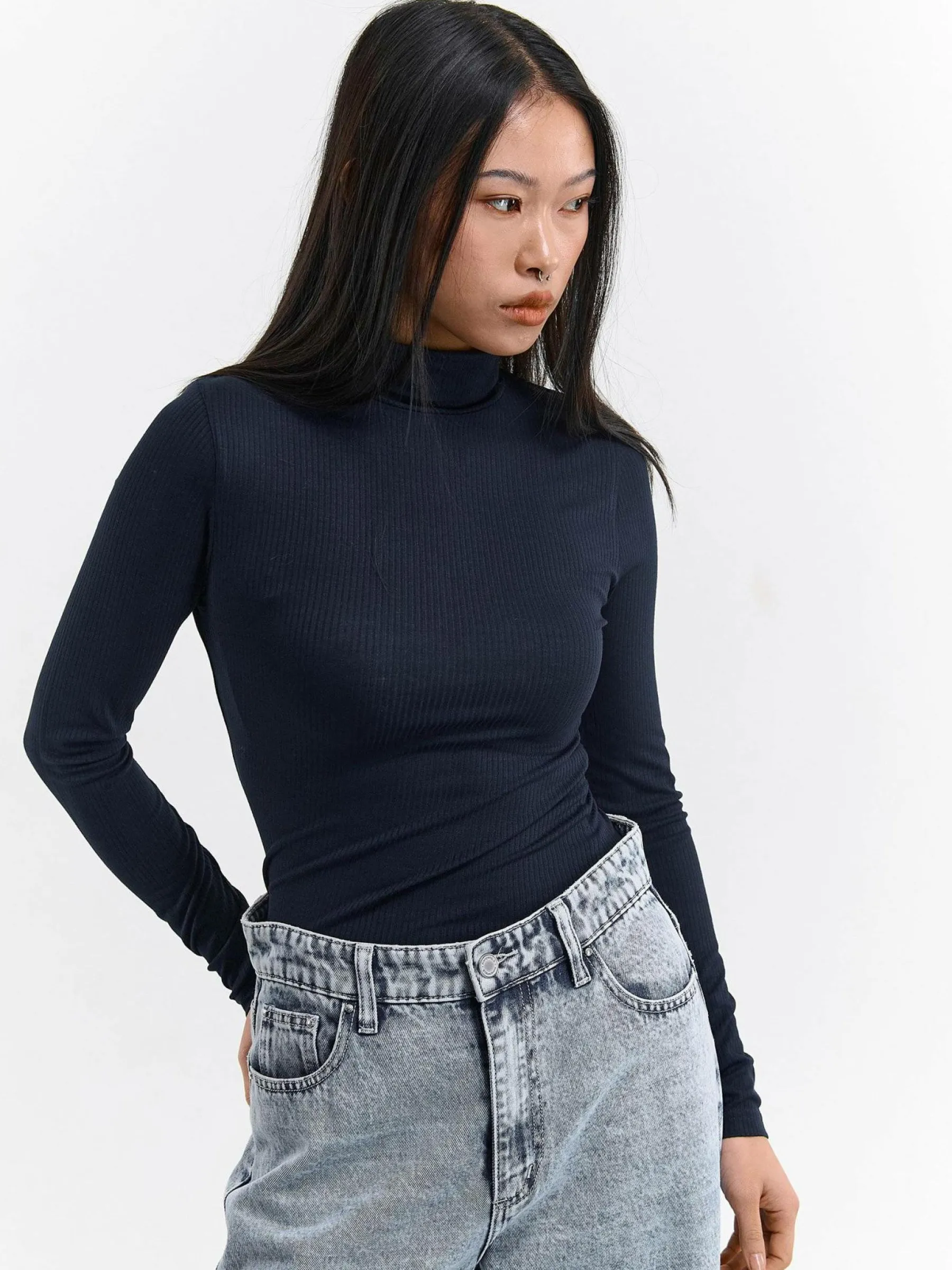 Kolor: granatowyKrój: regularTyp: golfRekaw: długi rękawDługość: krótkiPattern style: pojedynczy kolorDetal: nad …