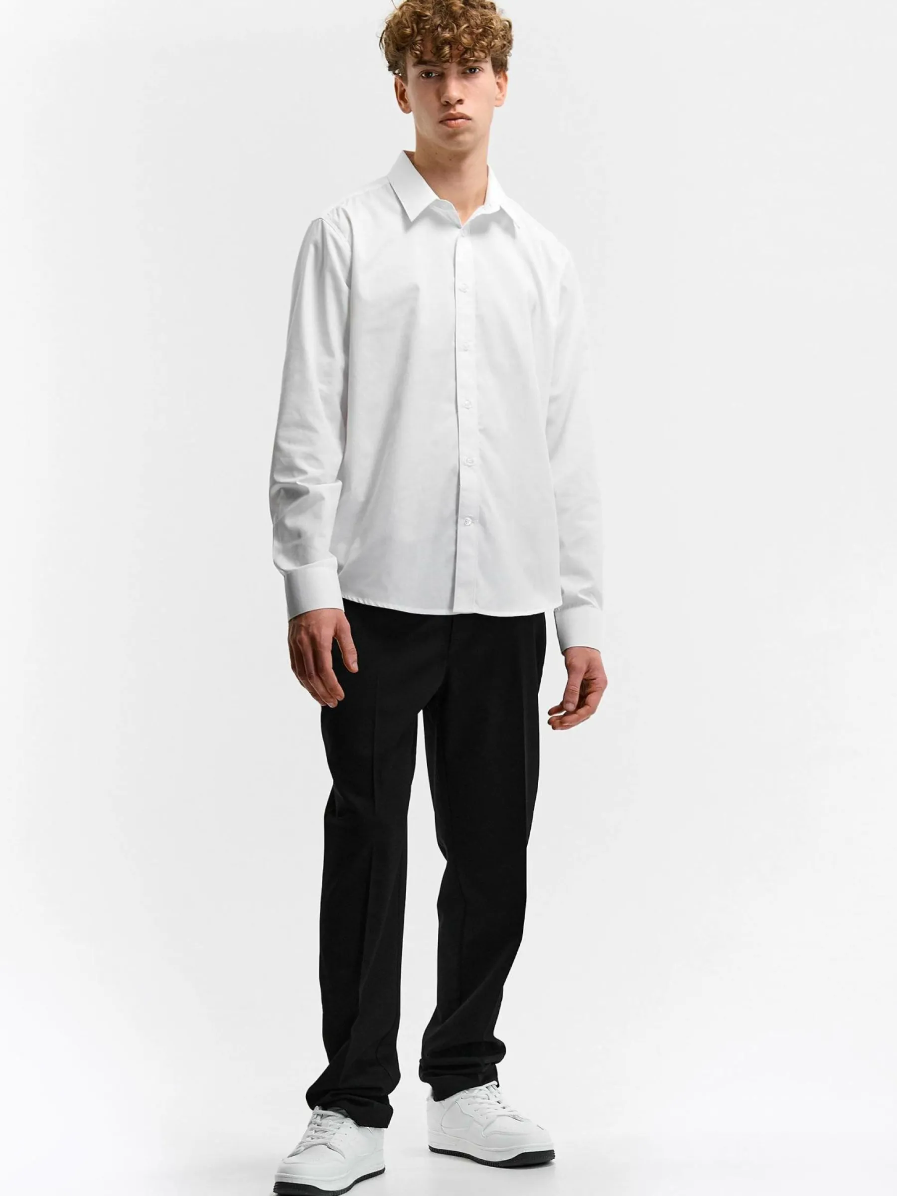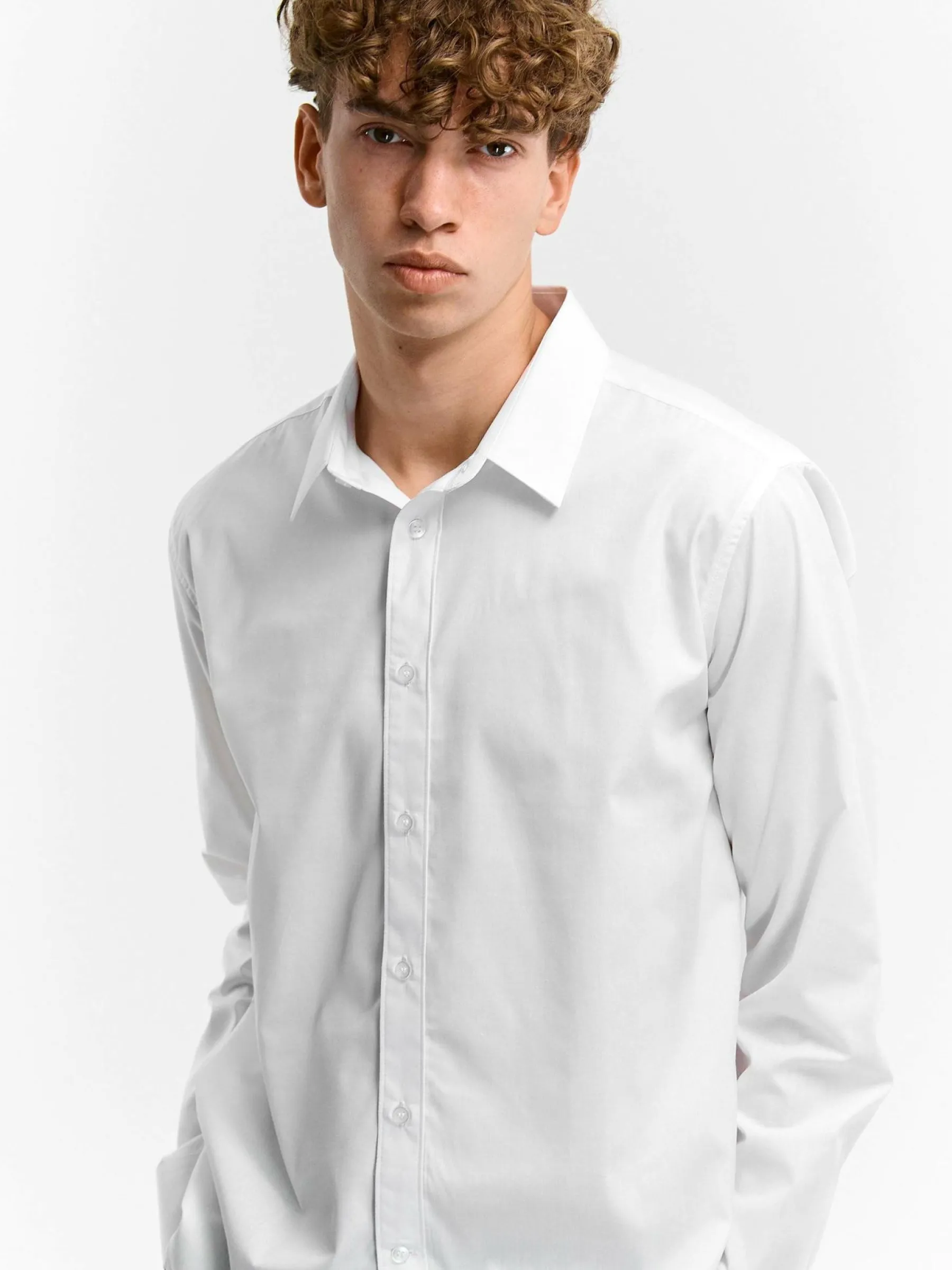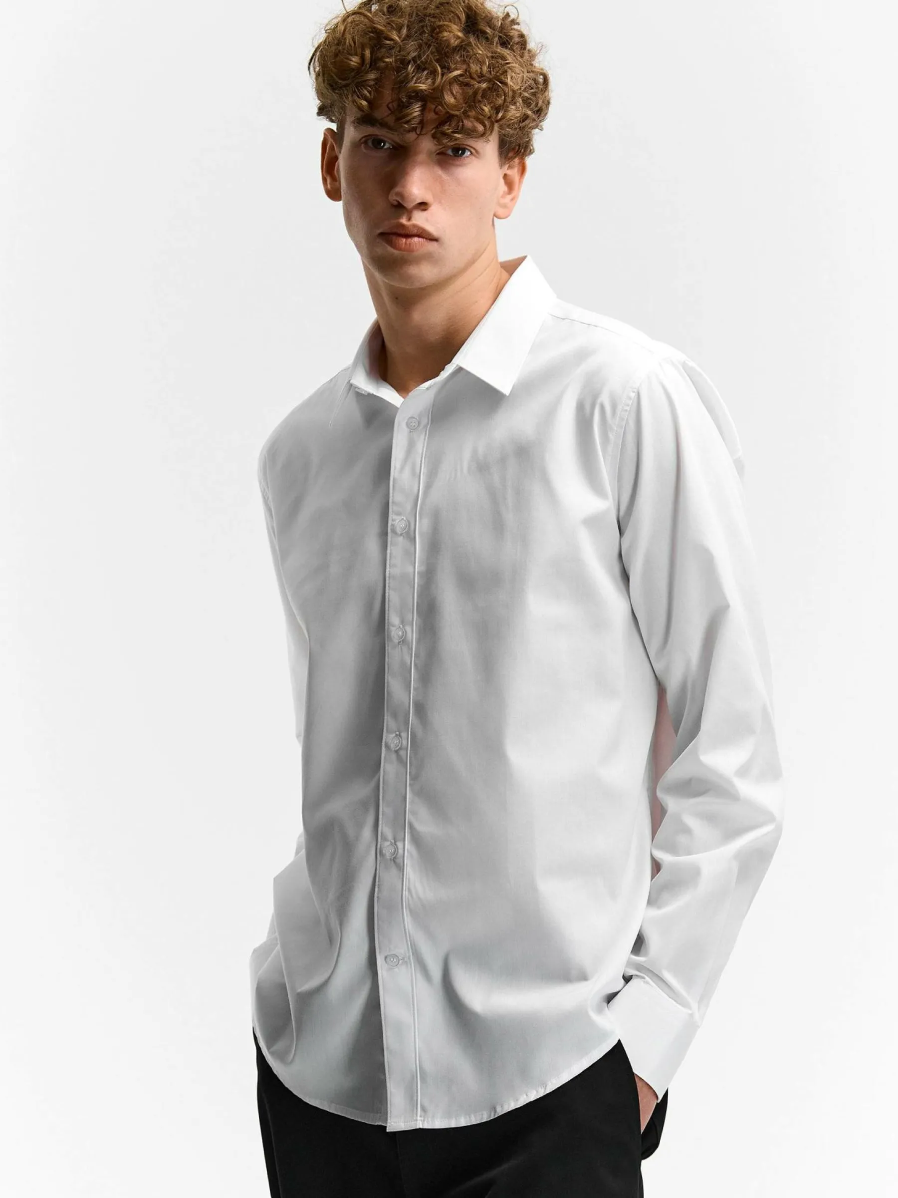 Kolor: białyKrój: podstawowyTyp: koszulaRekaw: długi rękawPattern style: pojedynczy kolorDetal: na guzikiMateriał: …