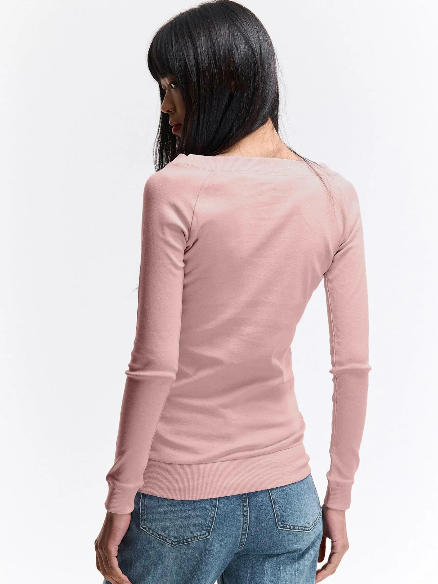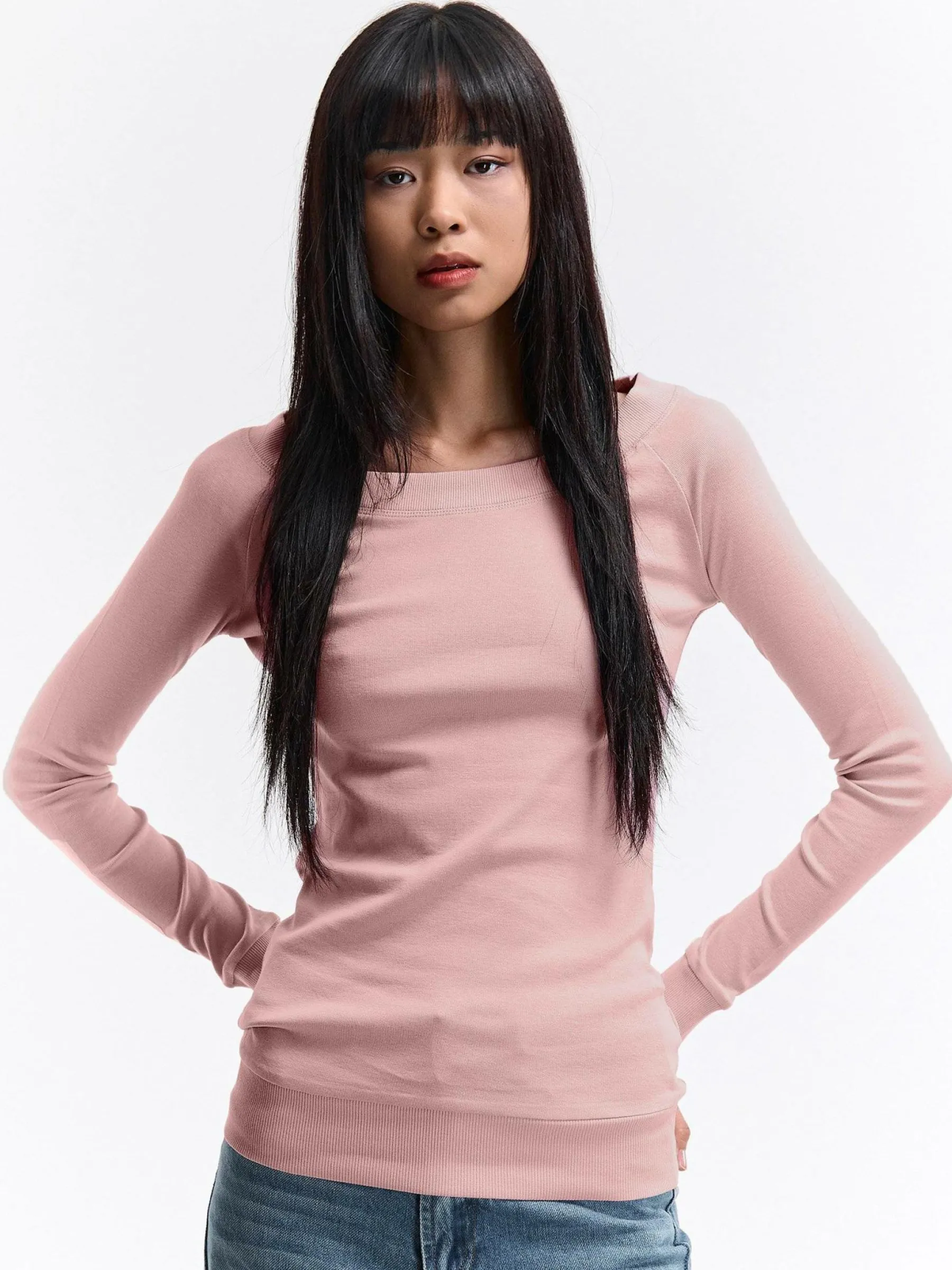 Kolor: różowyKrój: regularTyp: koszulkaRekaw: długi rękawDługość: krótkiPattern style: pojedynczy kolorDetal: n…