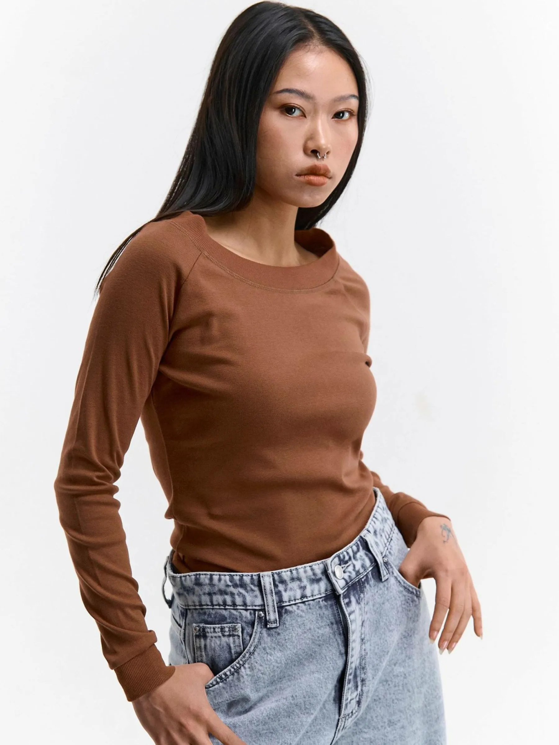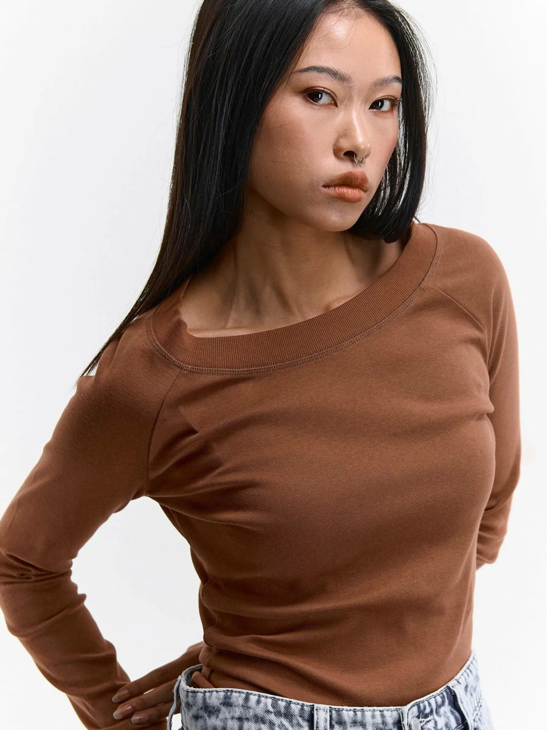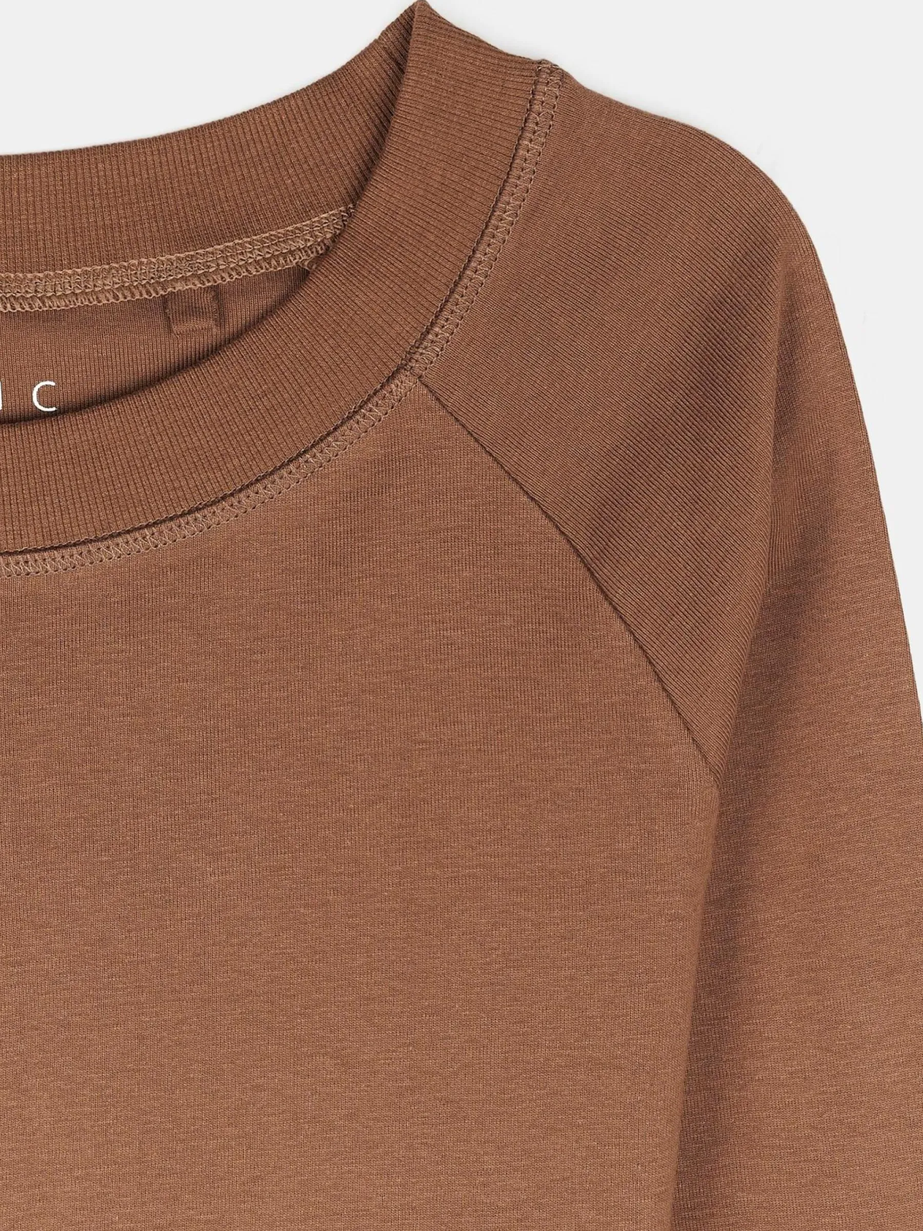 Kolor: brązowyKrój: regularTyp: koszulkaRekaw: długi rękawDługość: krótkiPattern style: pojedynczy kolorDetal: n…