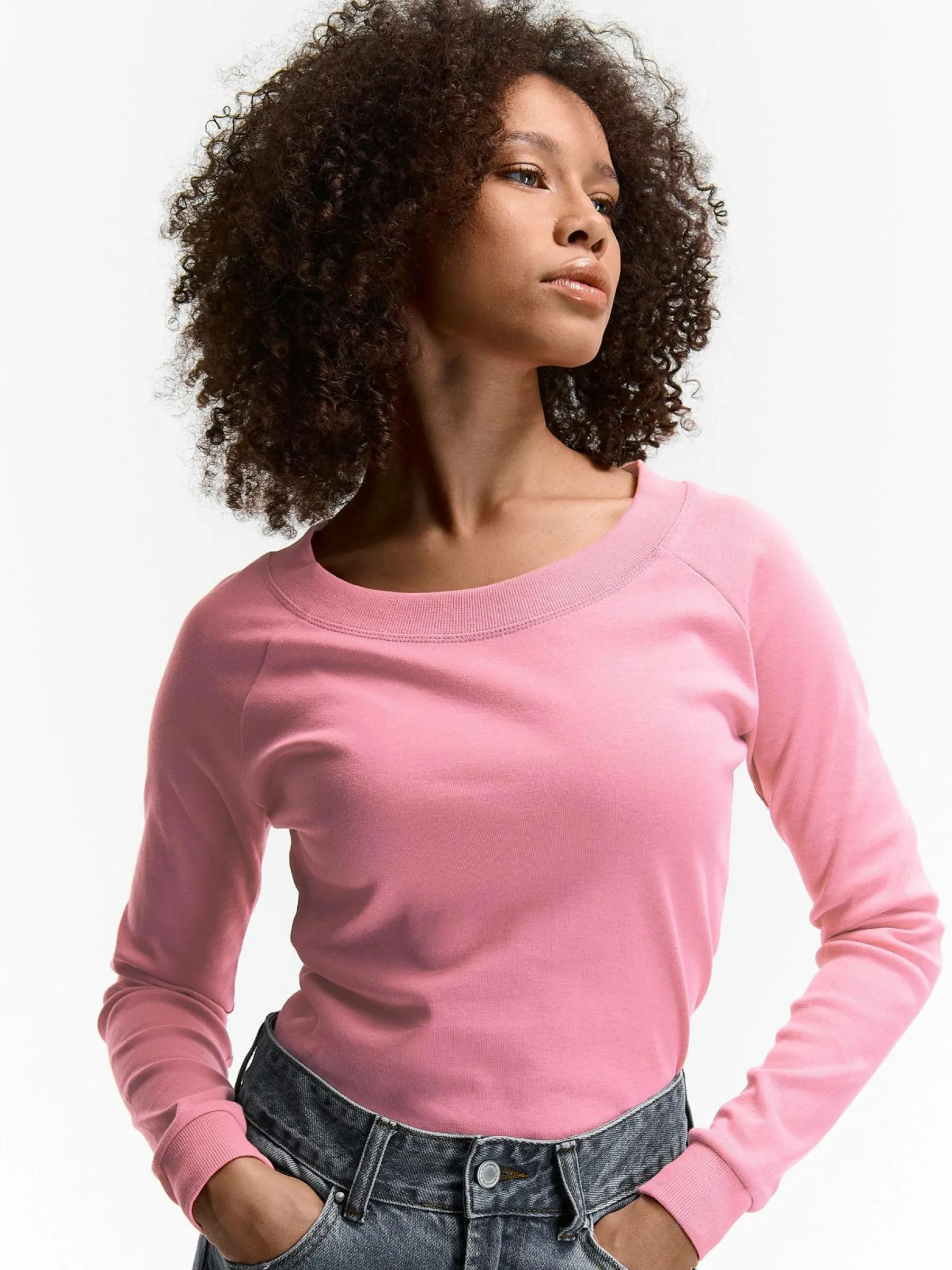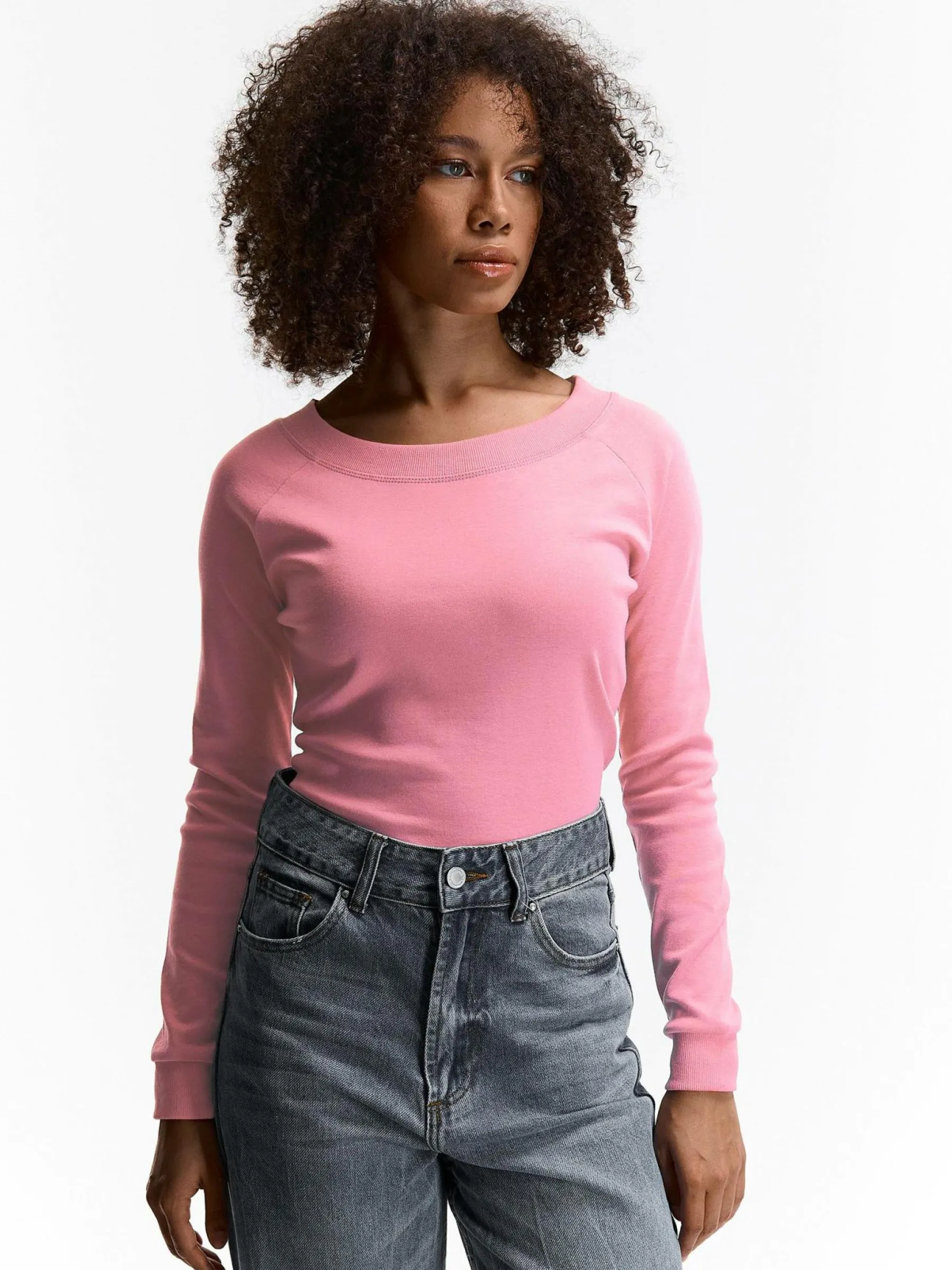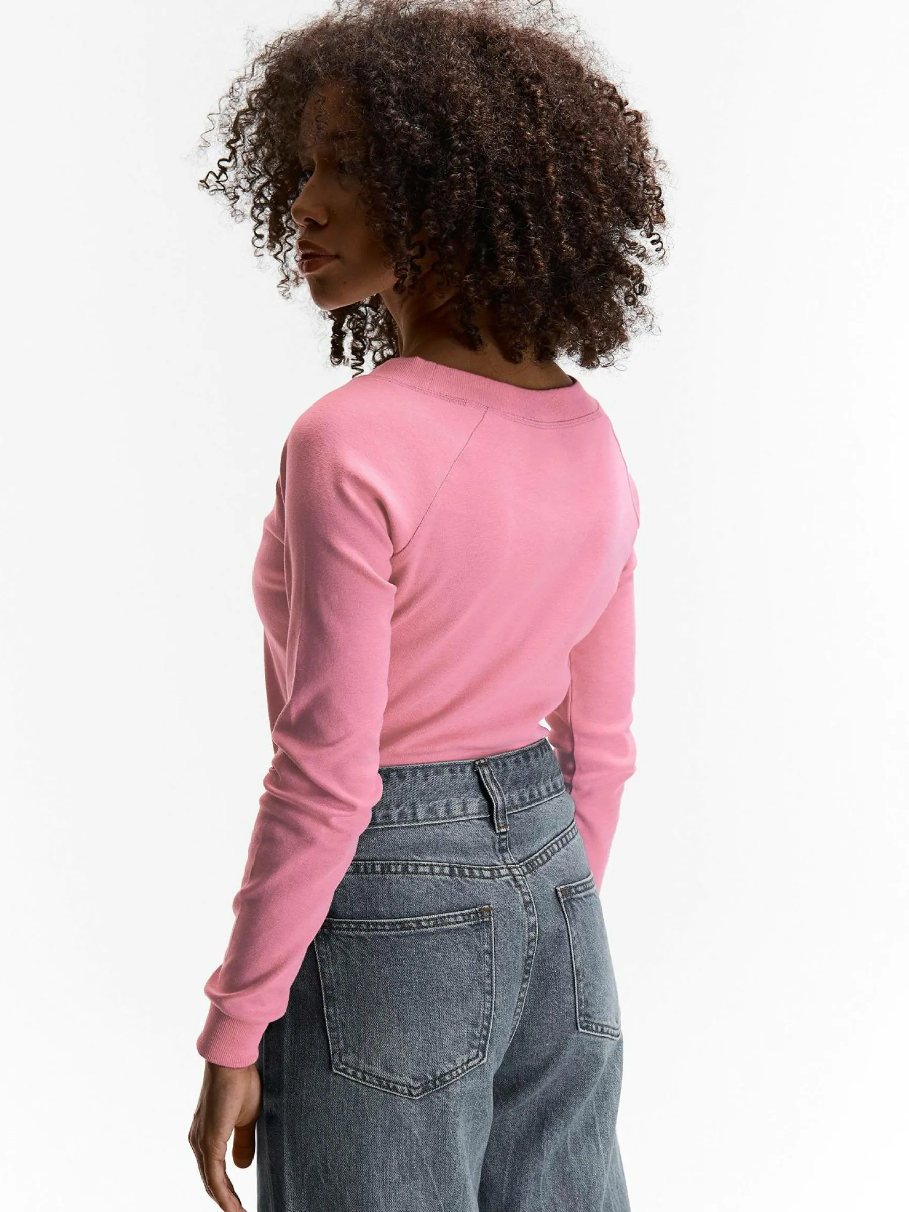 Kolor: różowyKrój: regularTyp: koszulkaRekaw: długi rękawDługość: krótkiPattern style: pojedynczy kolorDetal: n…