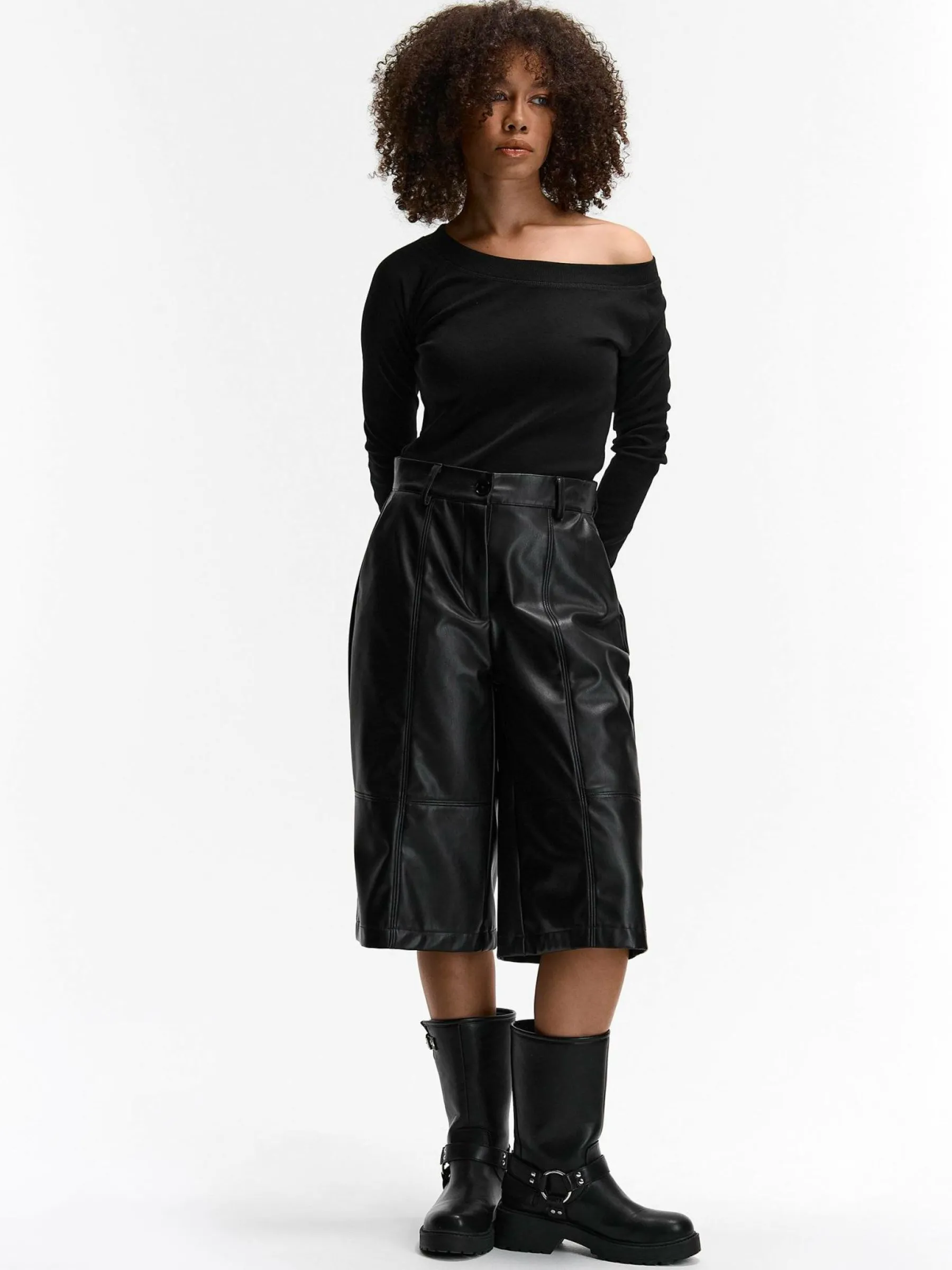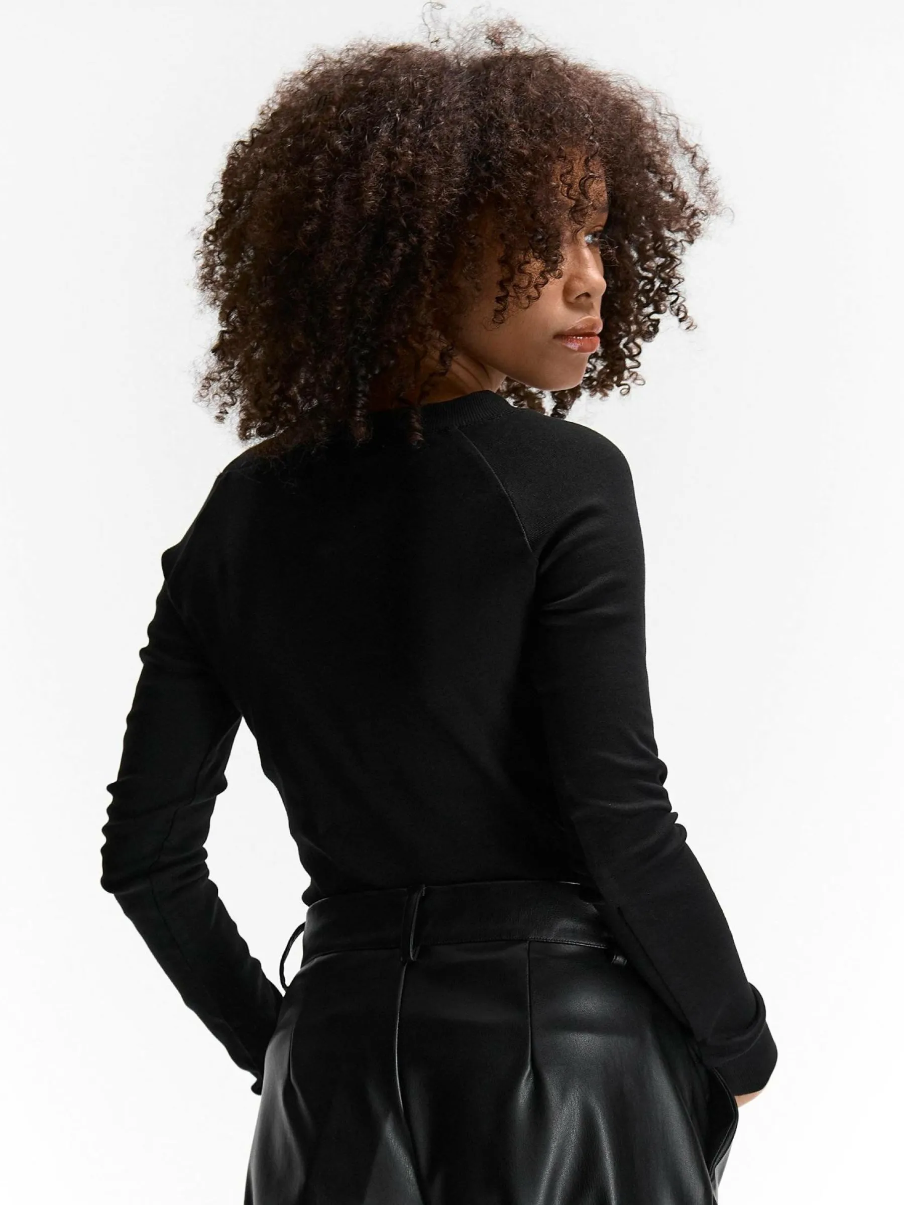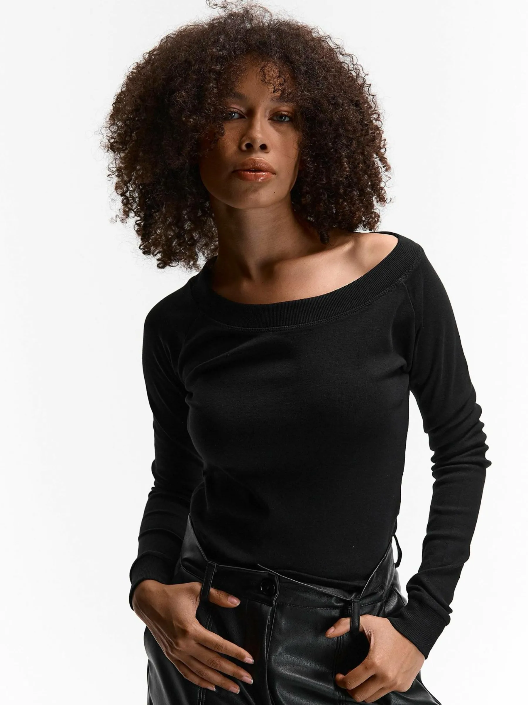 Kolor: czarnyKrój: regularTyp: koszulkaRekaw: długi rękawDługość: krótkiPattern style: pojedynczy kolorDetal: nad…