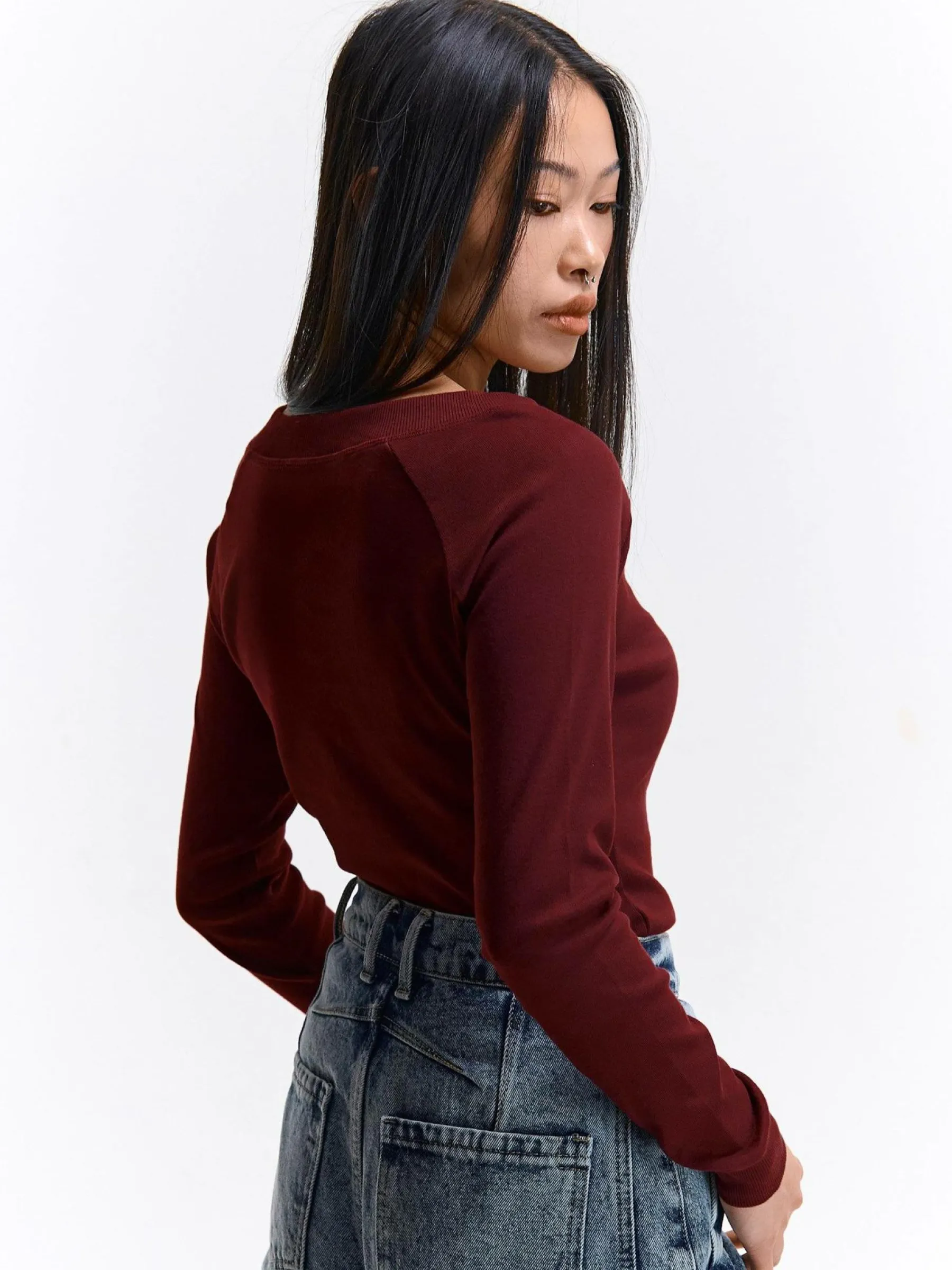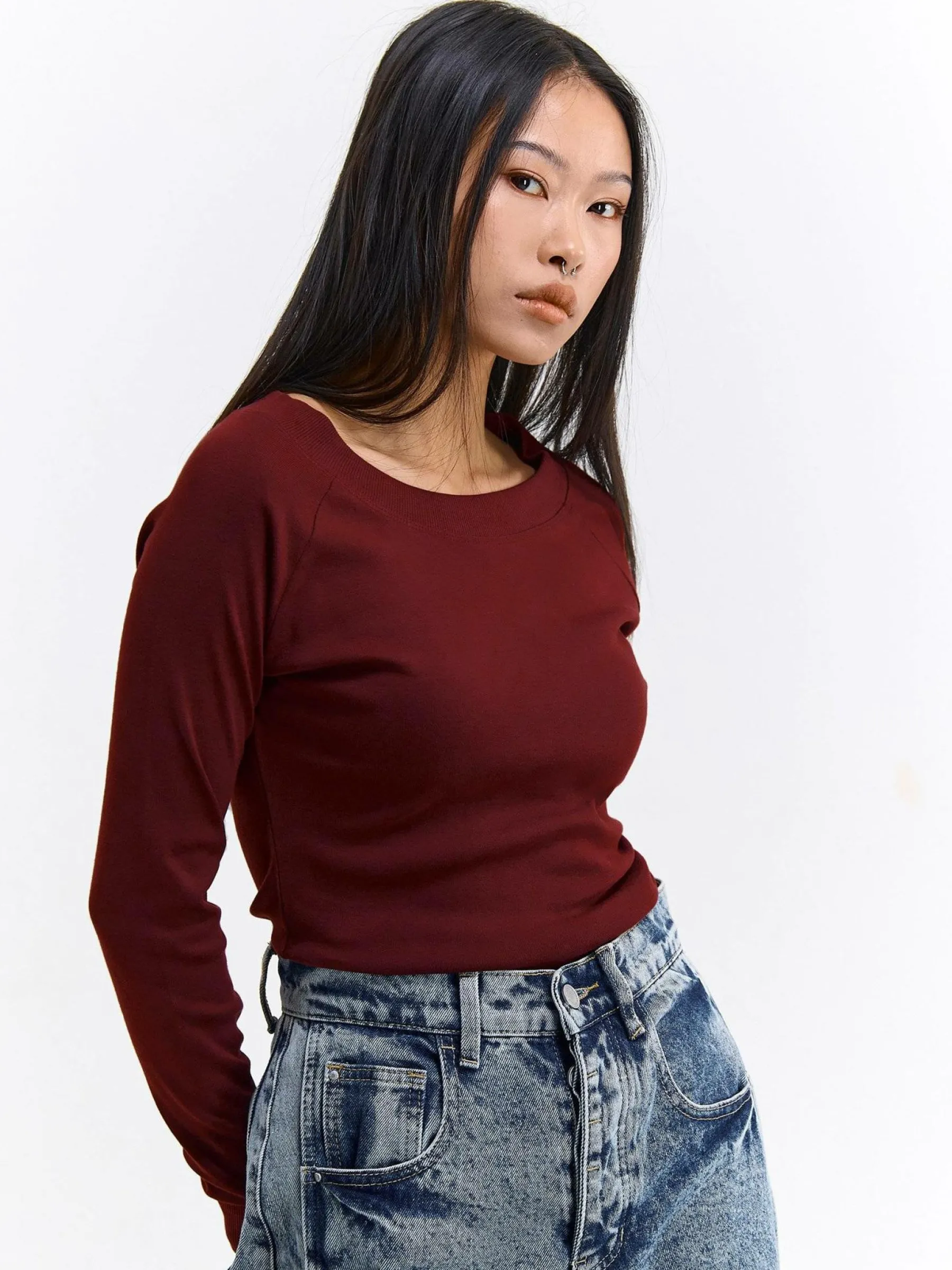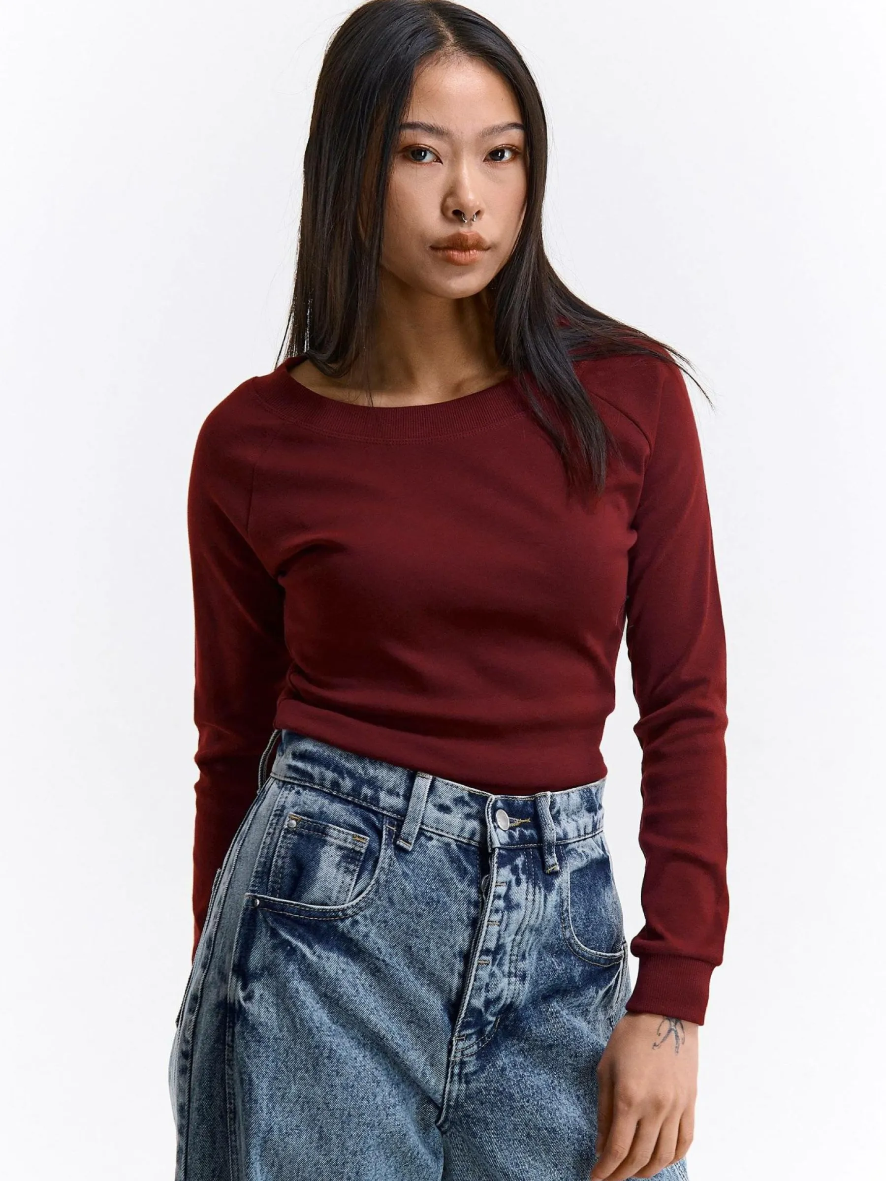Kolor: czerwonyKrój: regularTyp: koszulkaRekaw: długi rękawDługość: krótkiPattern style: pojedynczy kolorDetal: n…
