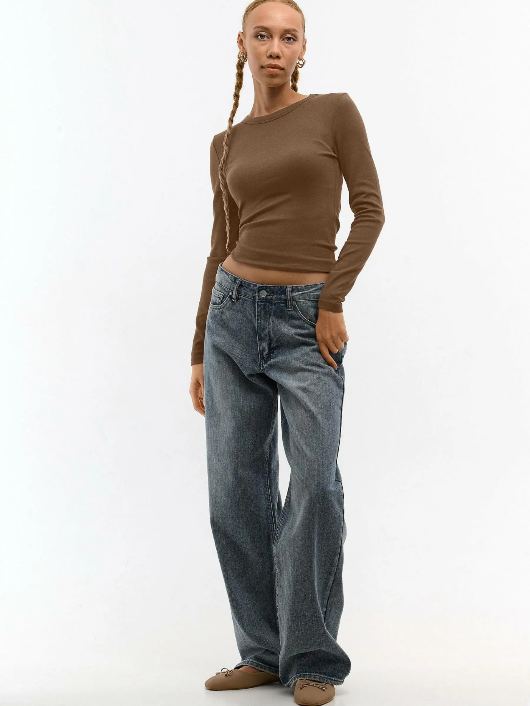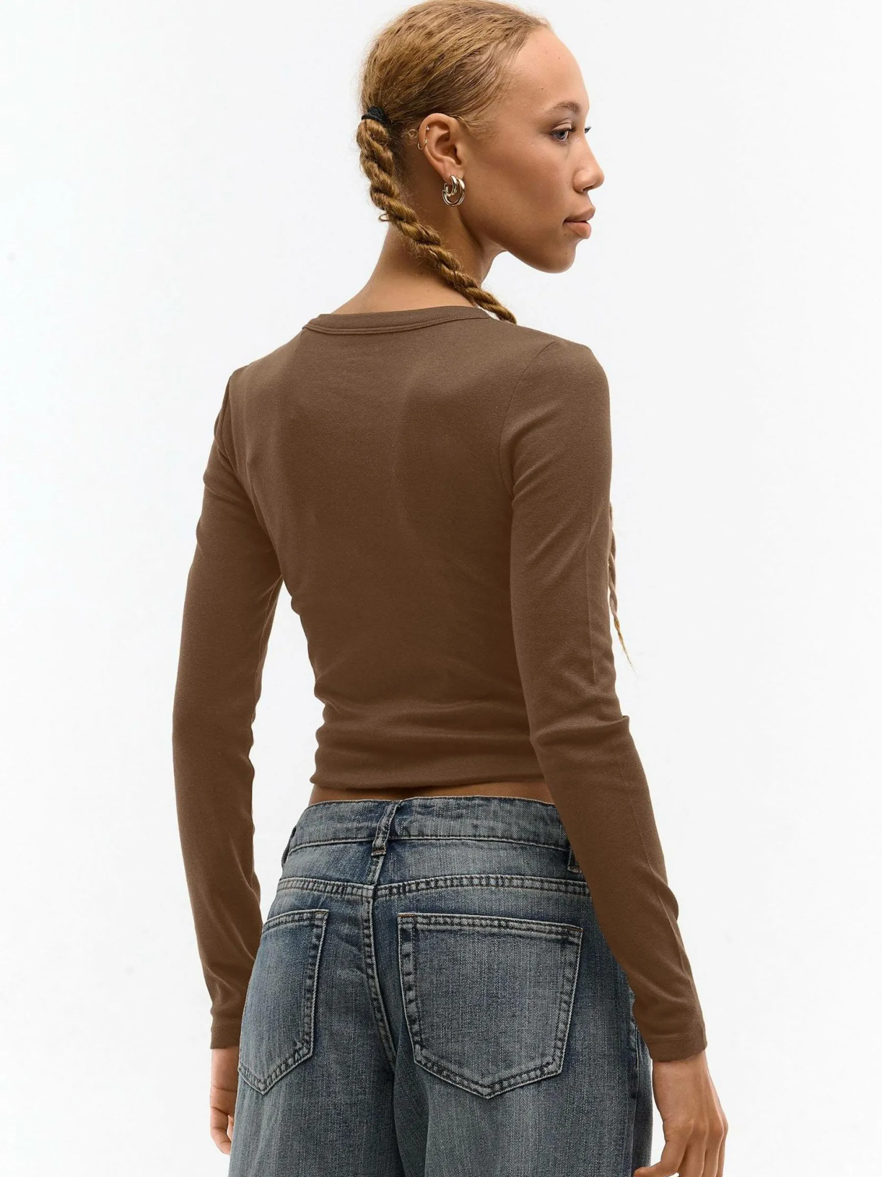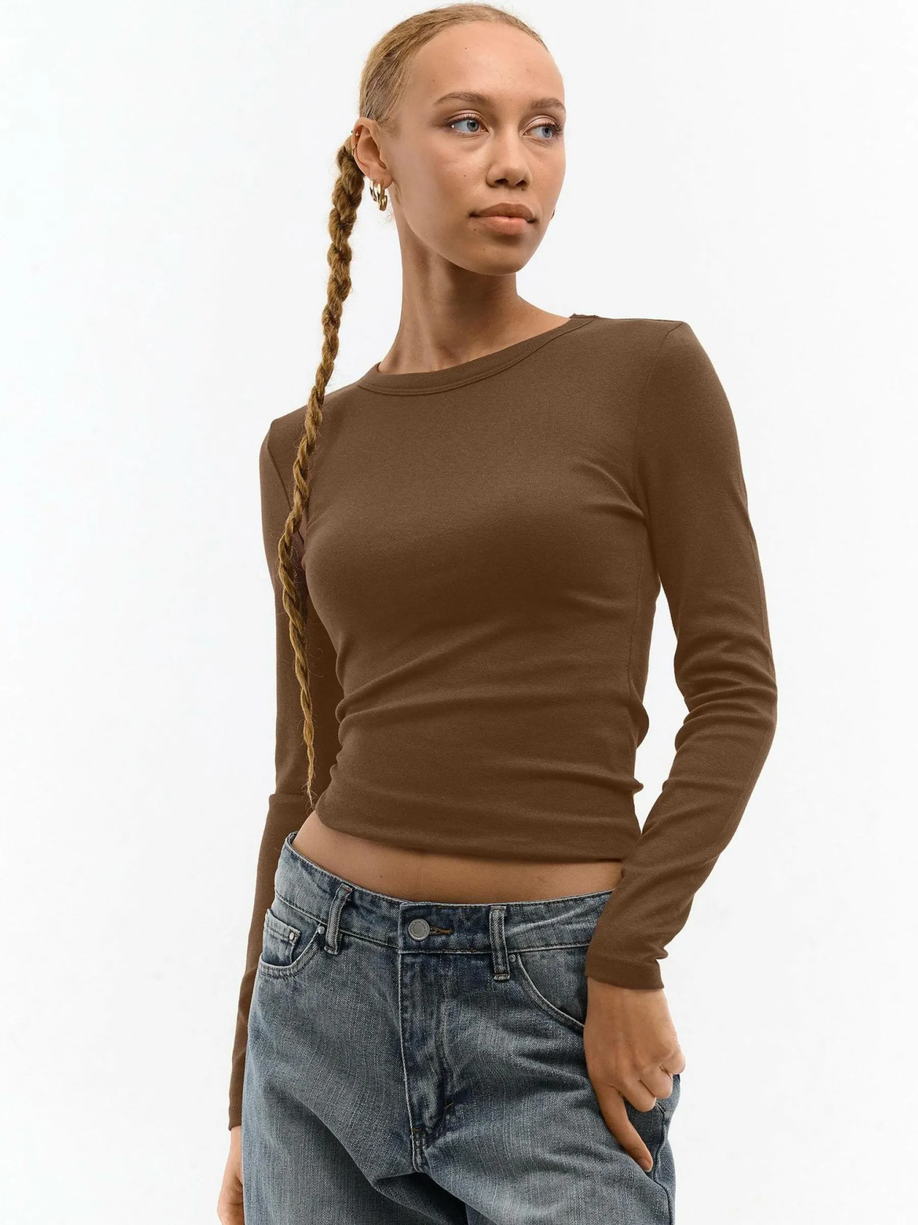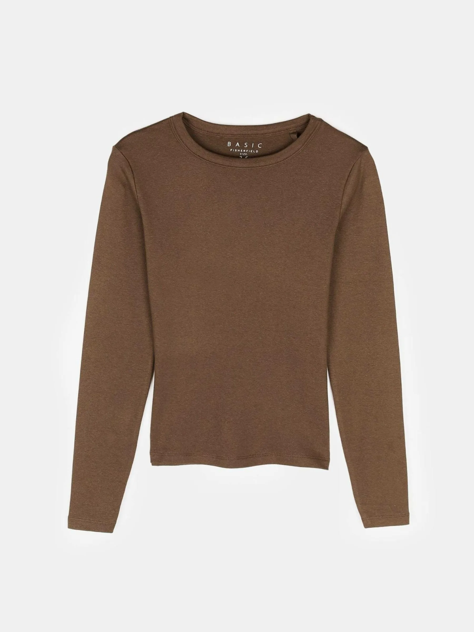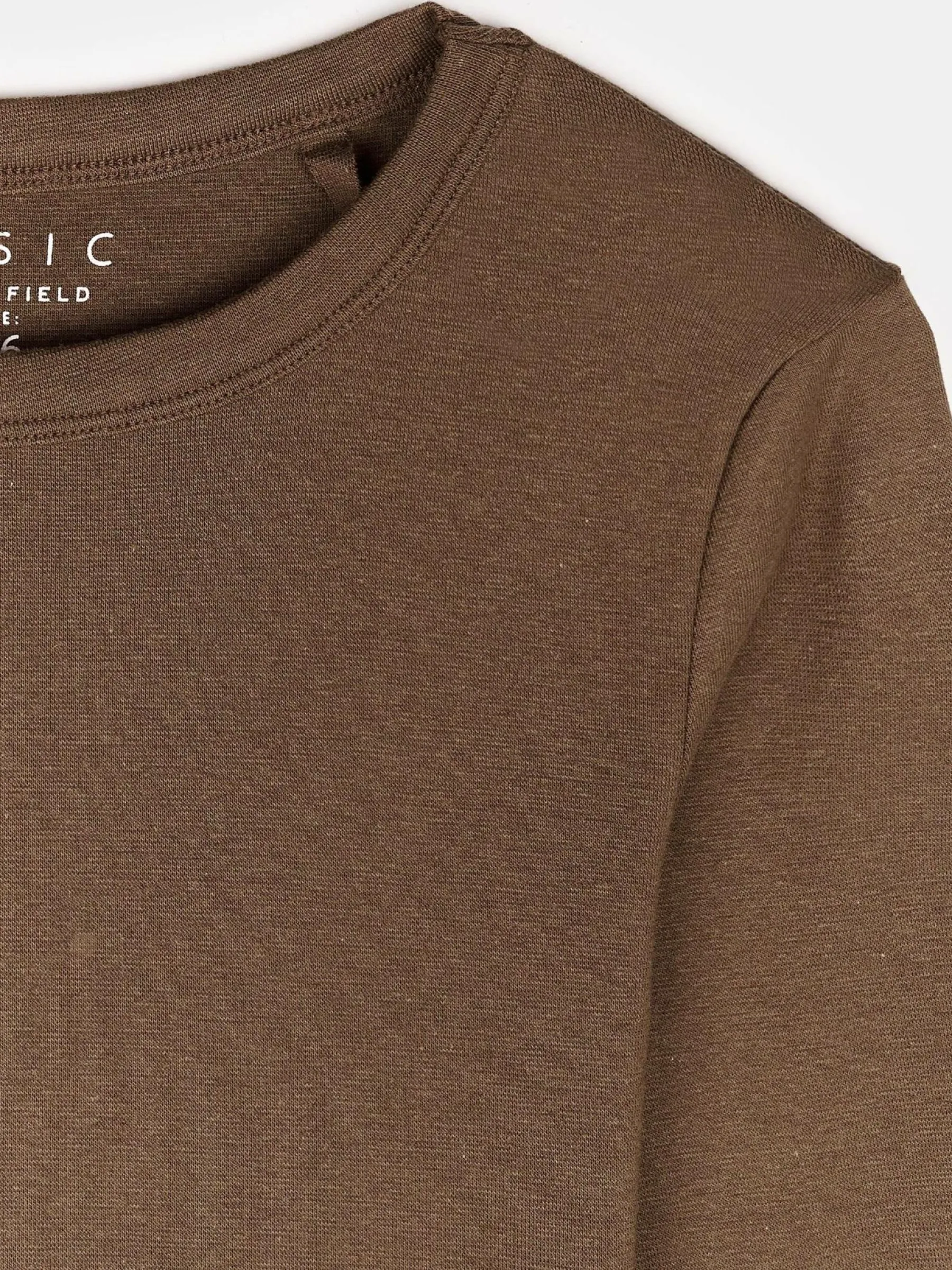Kolor: brązowyKrój: podstawowyTyp: koszulkaRekaw: długi rękawDługość: krótkiPattern style: pojedynczy kolorDetal…