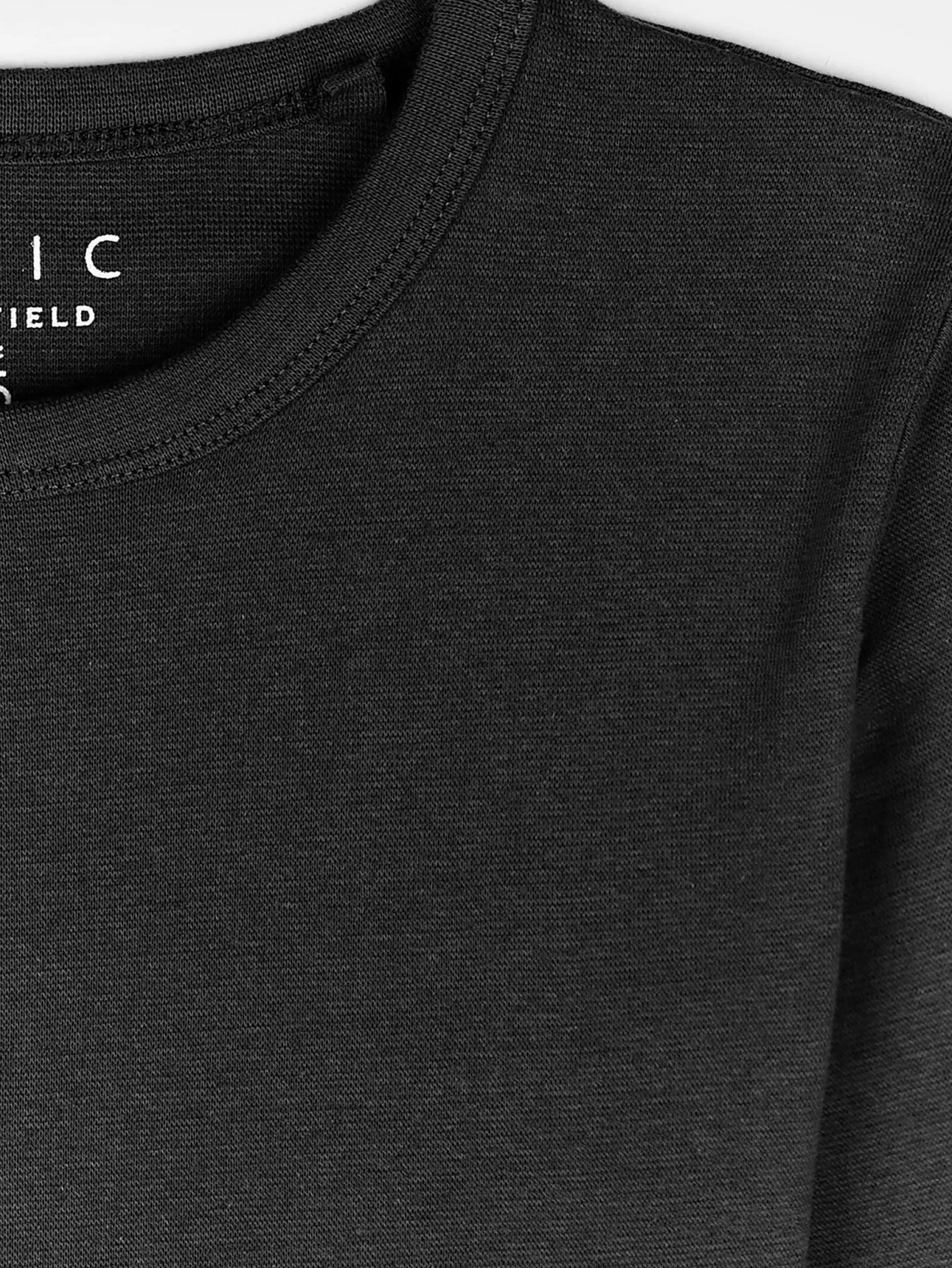 Kolor: czarnyKrój: podstawowyTyp: koszulkaRekaw: długi rękawDługość: krótki topPattern style: pojedynczy kolorDet…