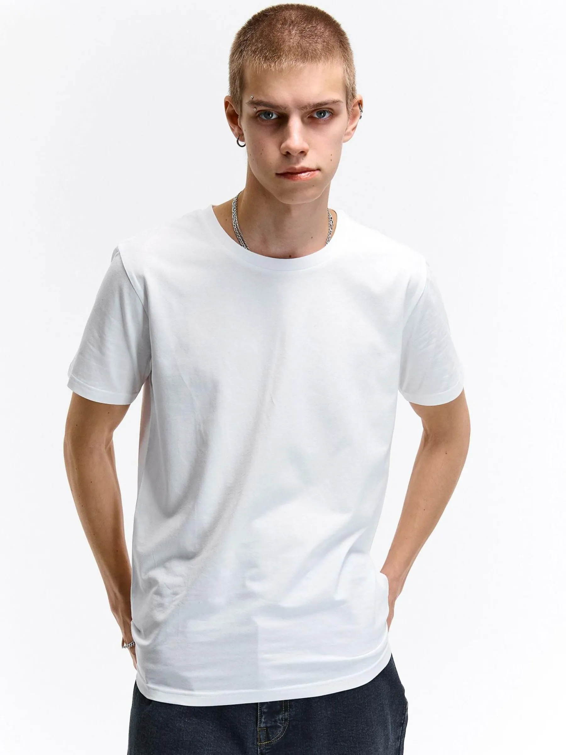 Kolor: białyKrój: regularTyp: koszulkaRekaw: krótki rękawPattern style: pojedynczy kolorDetal: nad głowąMateriał:…
