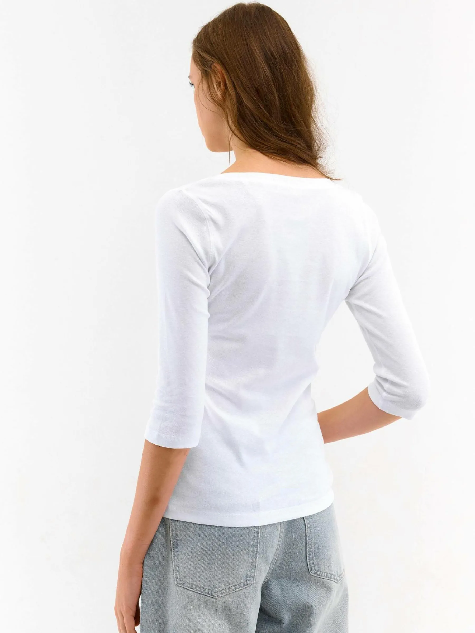 Kolor: białyKrój: podstawowyTyp: koszulkaRekaw: rękaw 3/4Długość: krótkiPattern style: pojedynczy kolorDetal: nad…