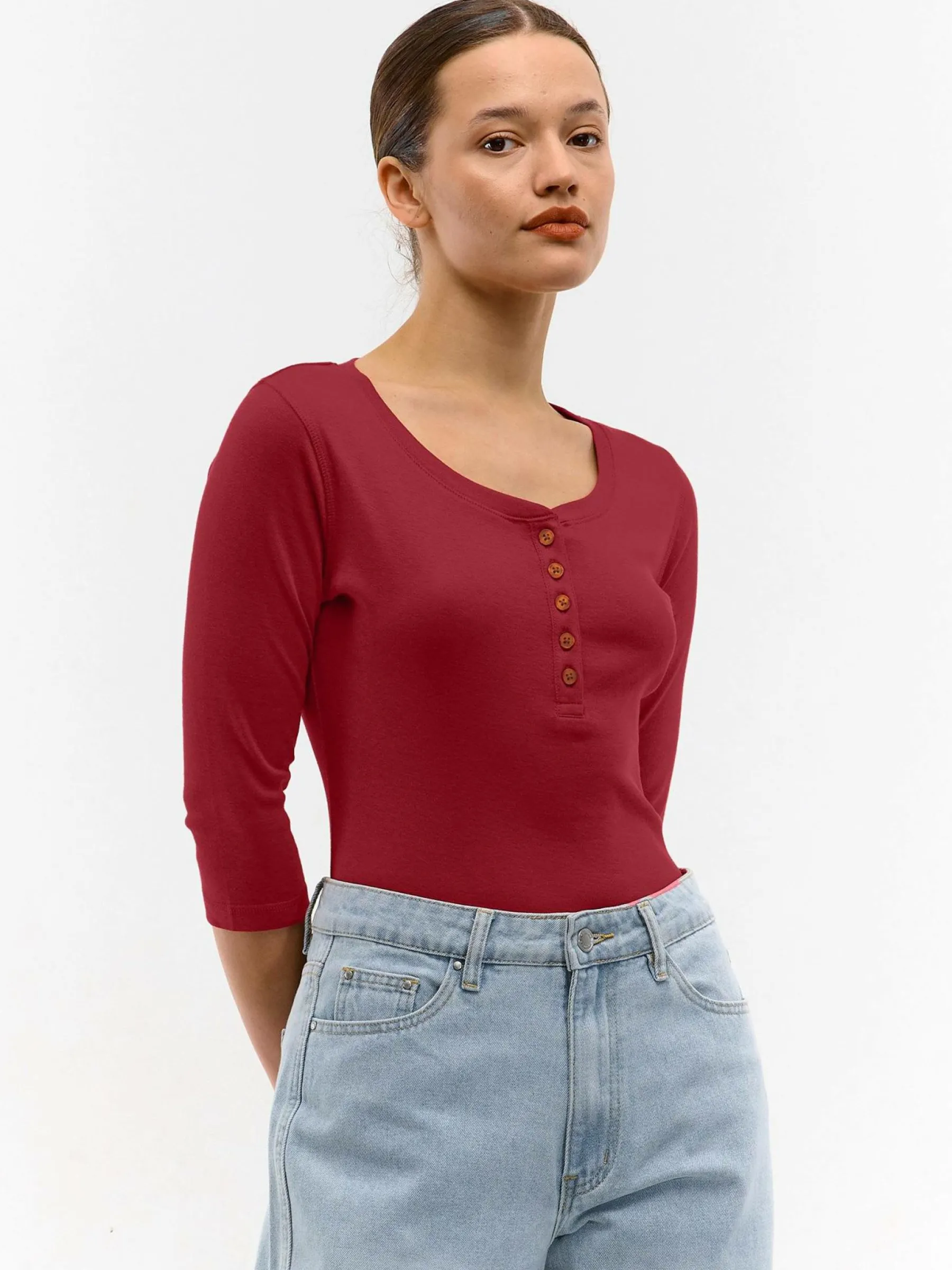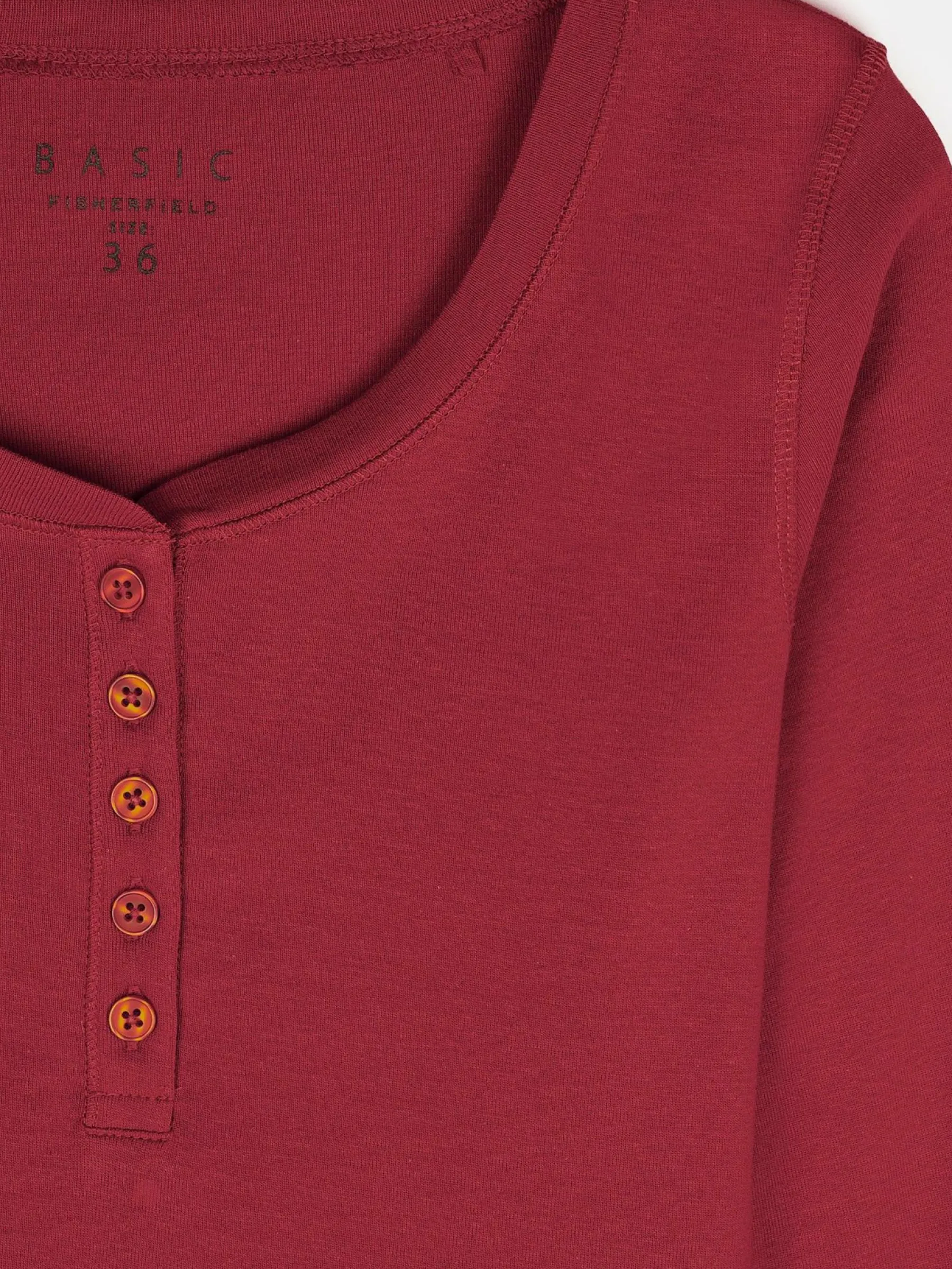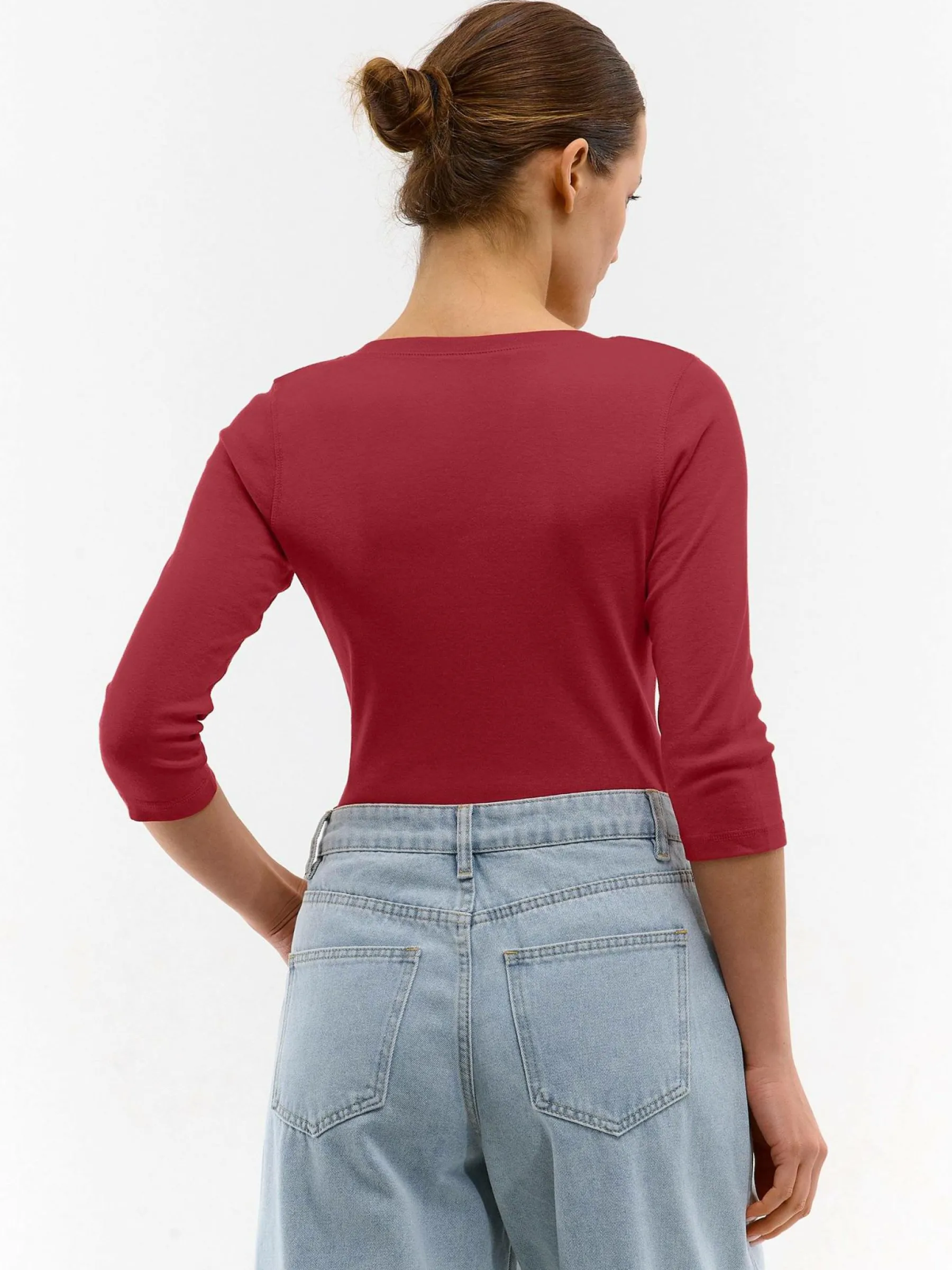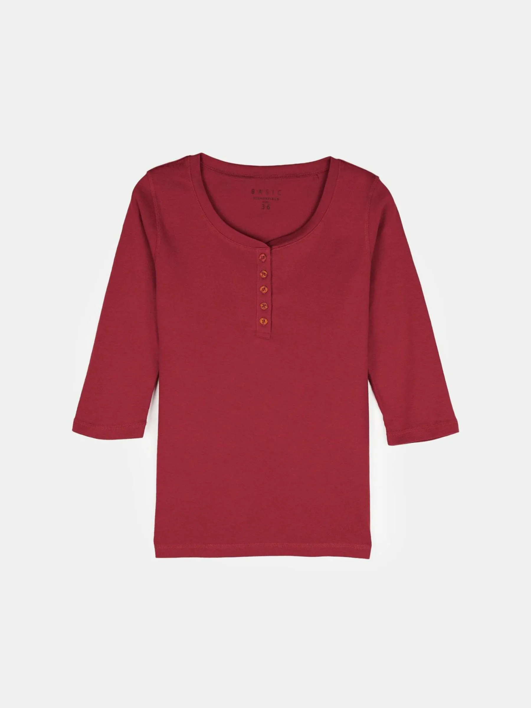 Kolor: burgundyKrój: regularTyp: koszulkaRekaw: rękaw 3/4Długość: krótkiPattern style: pojedynczy kolorDetal: nad …