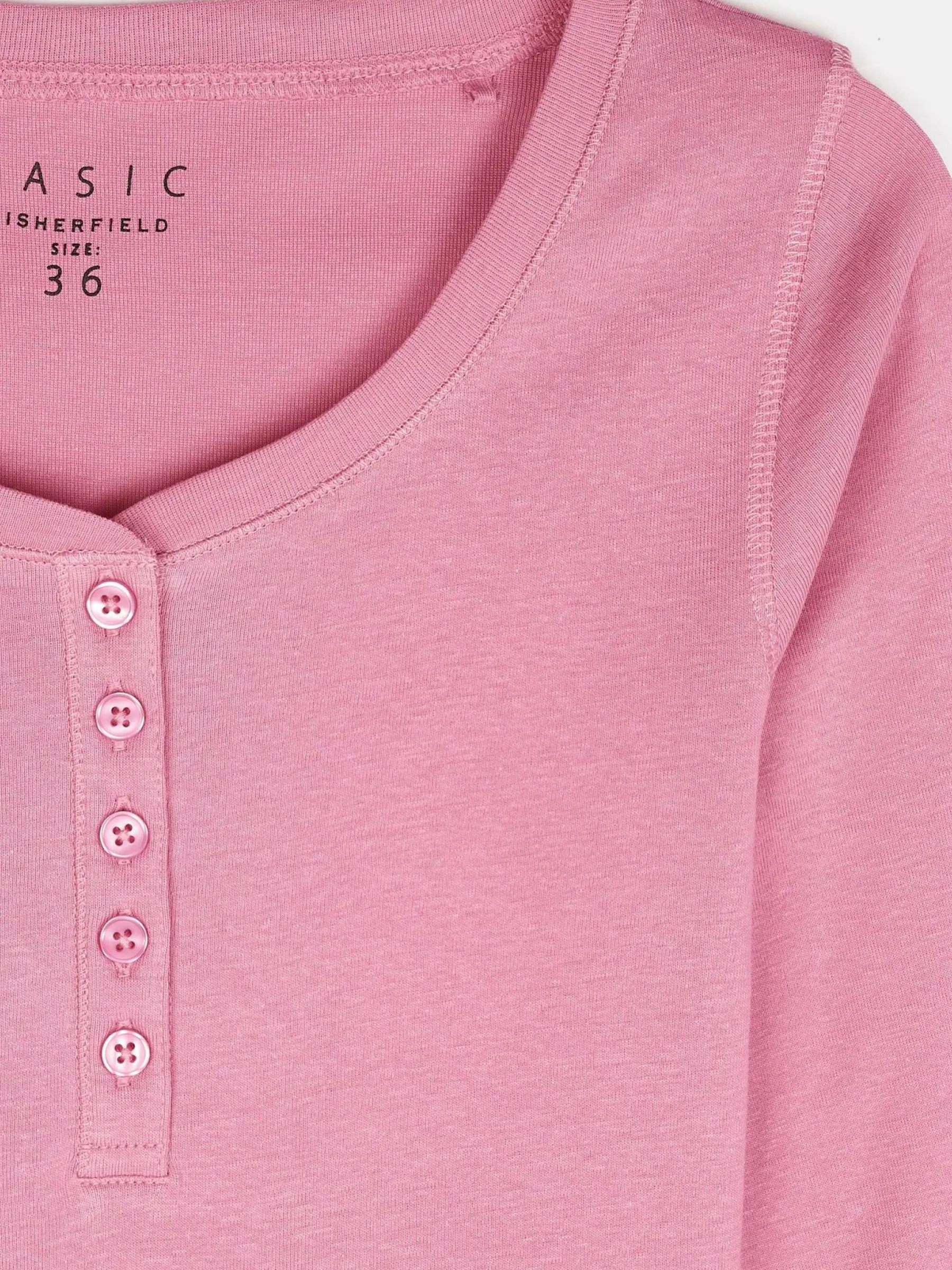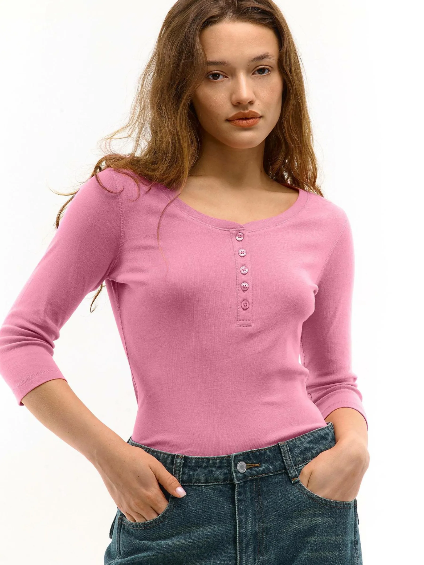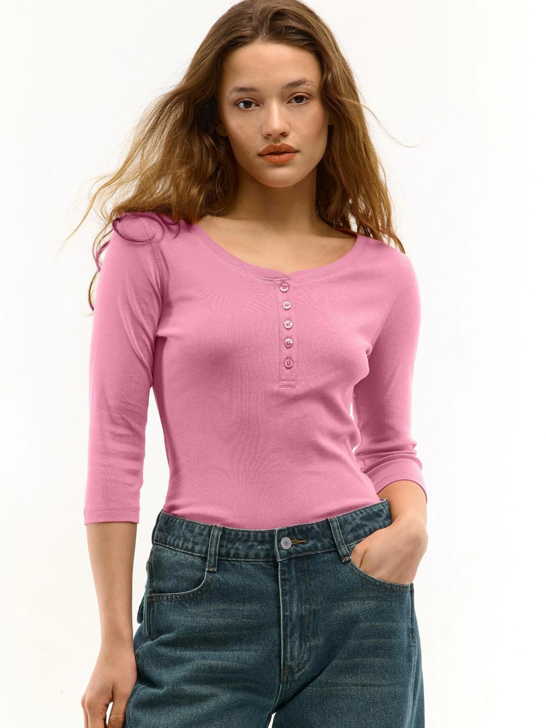 Kolor: różowyKrój: podstawowy, regularTyp: koszulkaRekaw: rękaw 3/4Długość: midiPattern style: pojedynczy kolorDe…