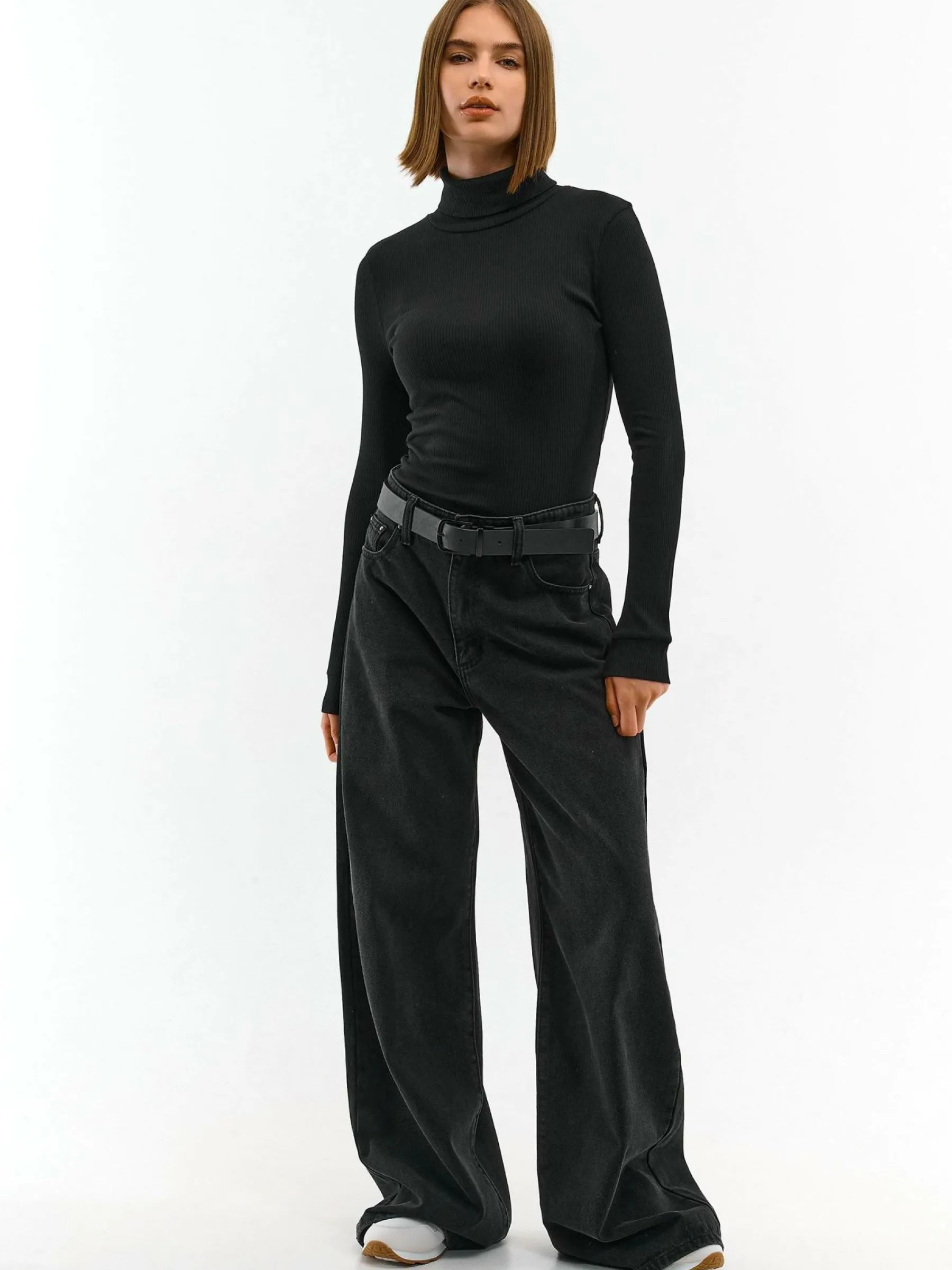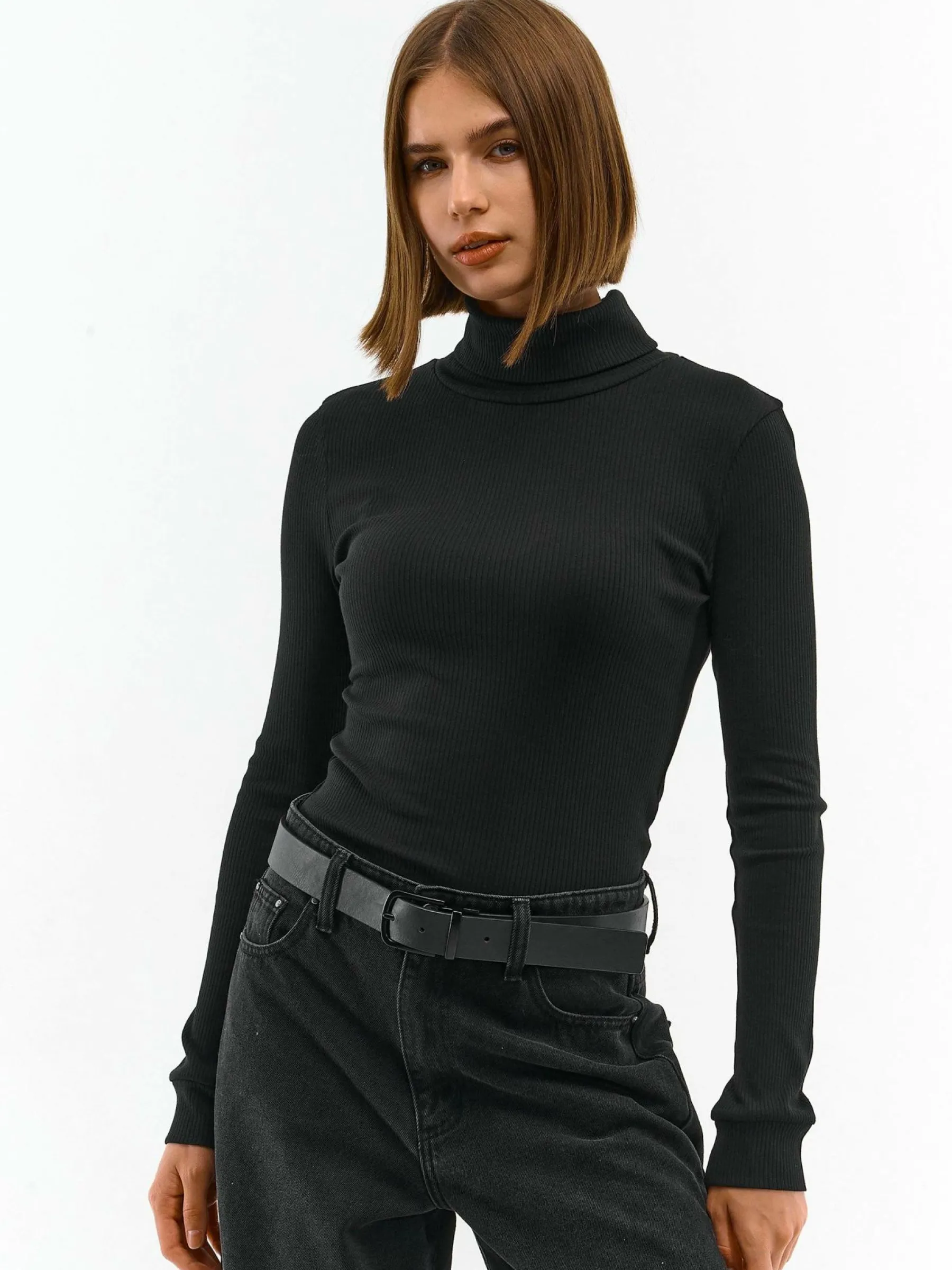 Kolor: czarnyKrój: regularTyp: golfRekaw: długi rękawDługość: krótkiPattern style: pojedynczy kolor, żebrowanyDe…