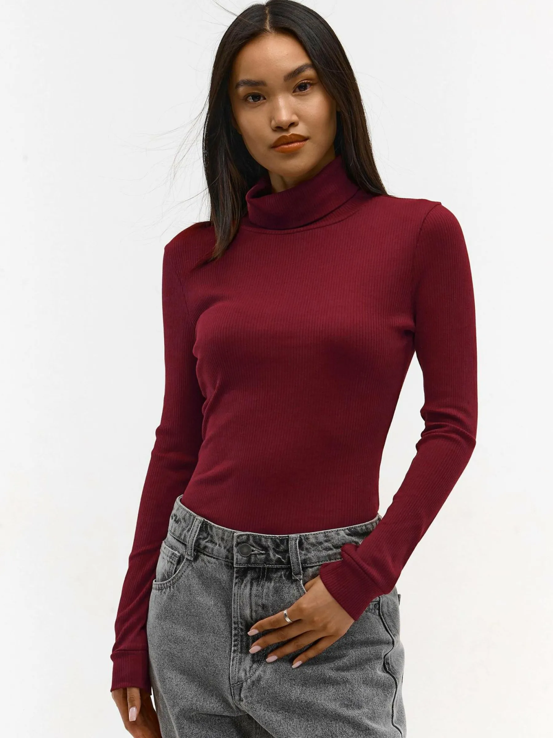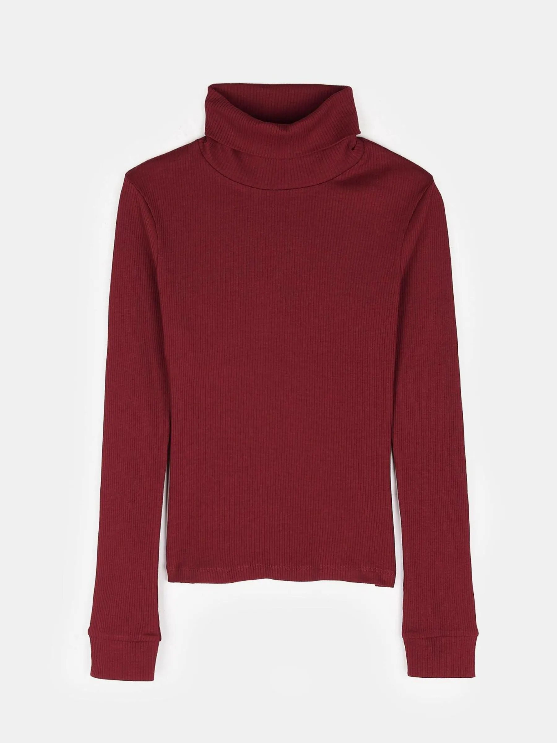 Kolor: burgundyKrój: regularTyp: golfRekaw: długi rękawDługość: krótkiPattern style: pojedynczy kolor, żebrowany…