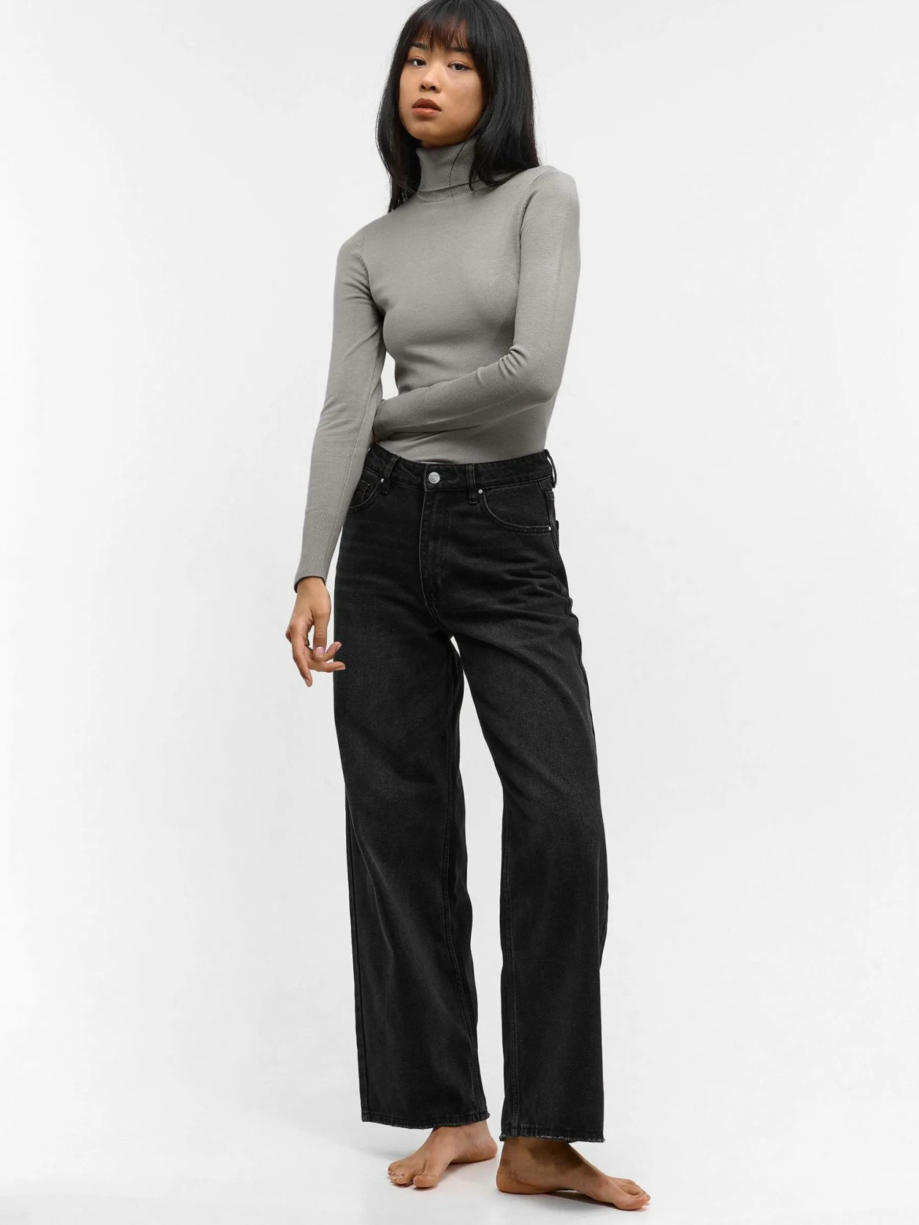 Kolor: szaryKrój: regularTyp: golf, swetryRekaw: długi rękawDługość: krótkiPattern style: pojedynczy kolorDetal: …