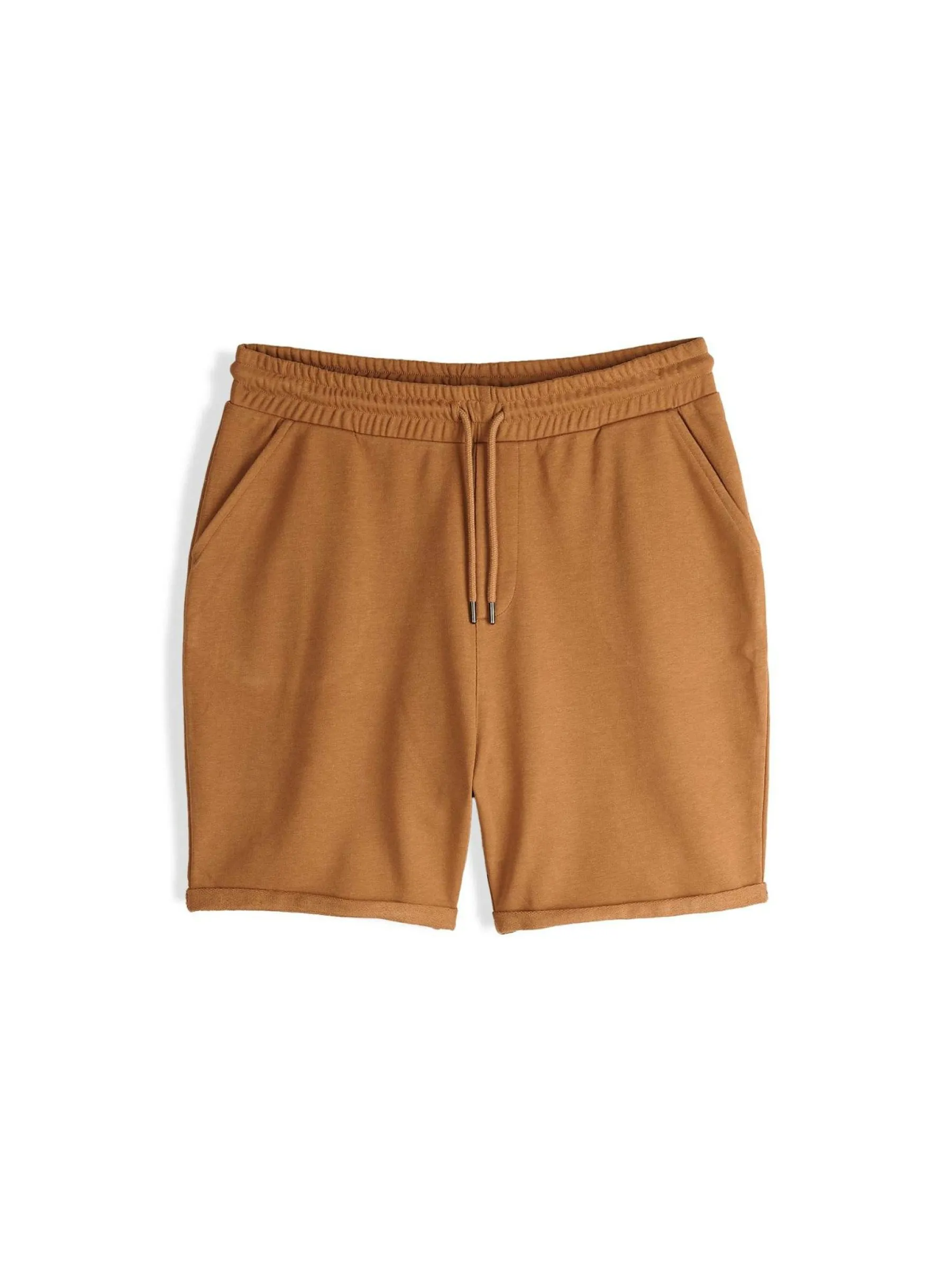 Kolor: brązowyKrój: regularTyp: spodenkiDługość: krótkiPattern style: pojedynczy kolorDetal: ze sznurowaniem, z ki…