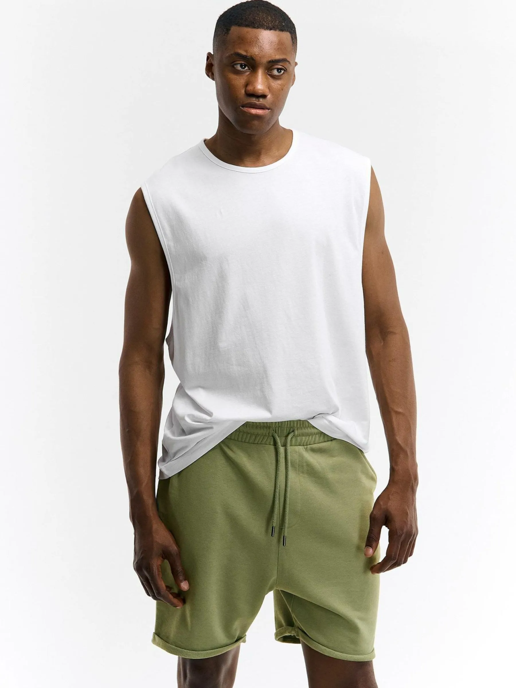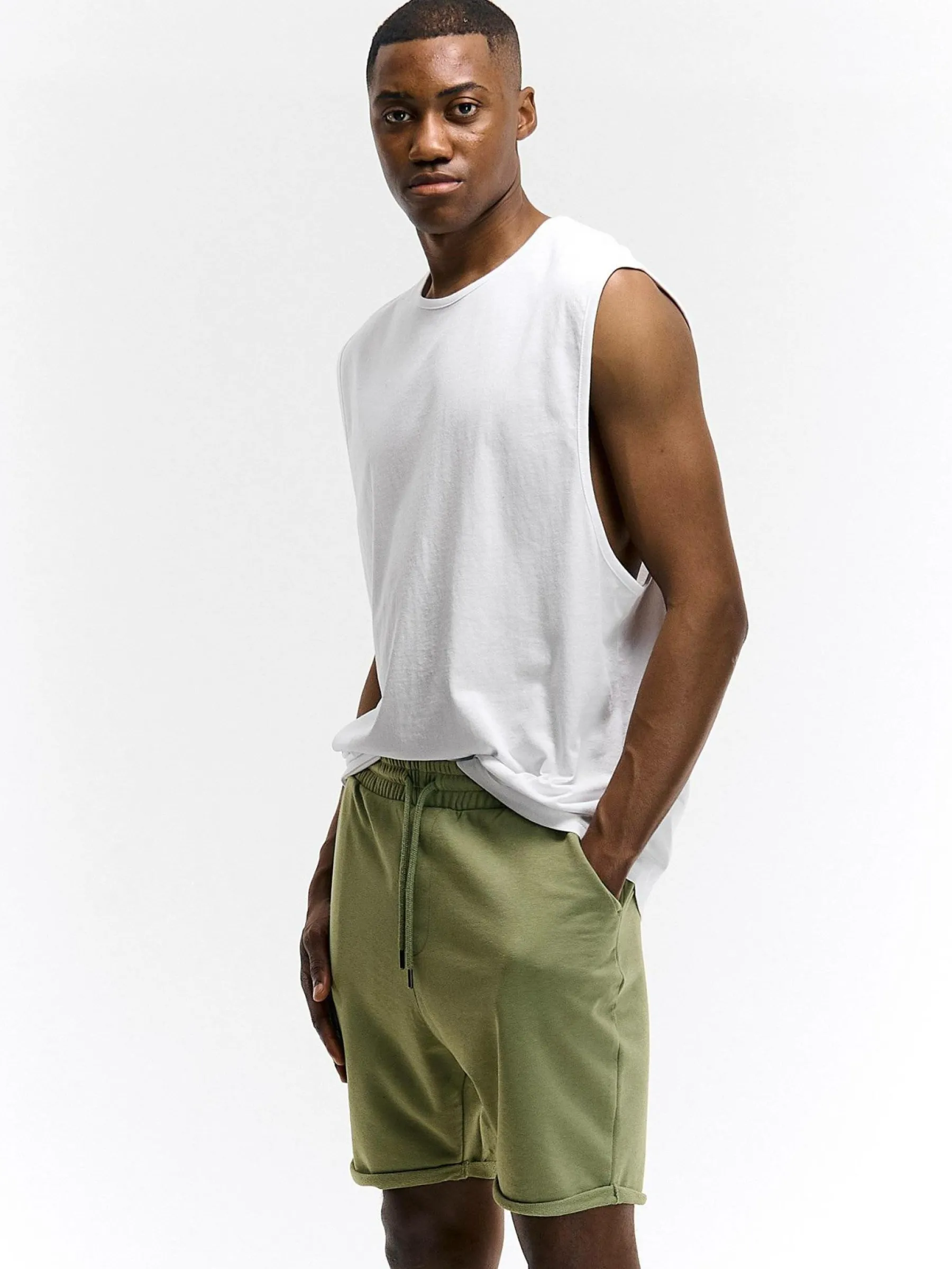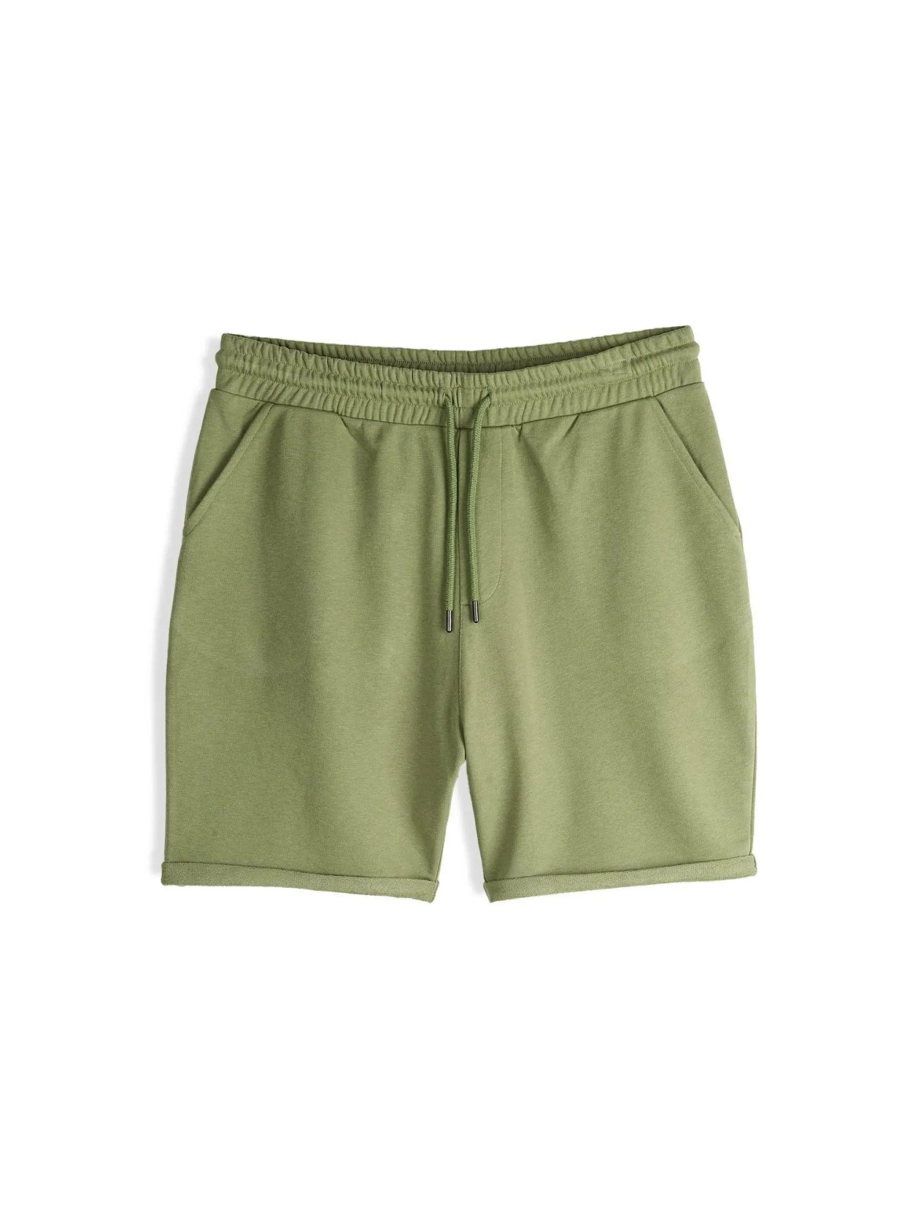 Kolor: zielonyKrój: regularTyp: spodenkiDługość: krótkiPattern style: pojedynczy kolorDetal: ze sznurowaniem, z kie…